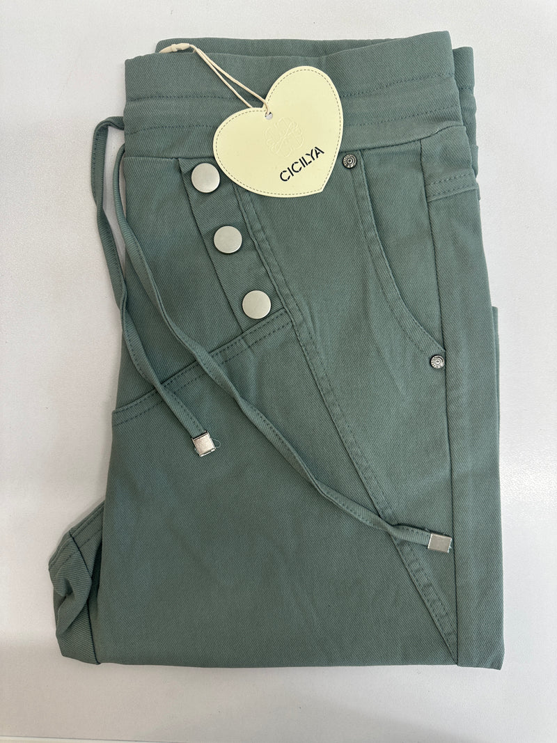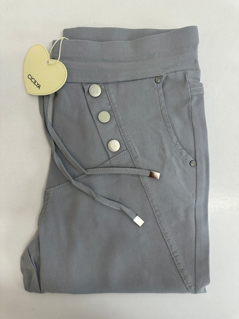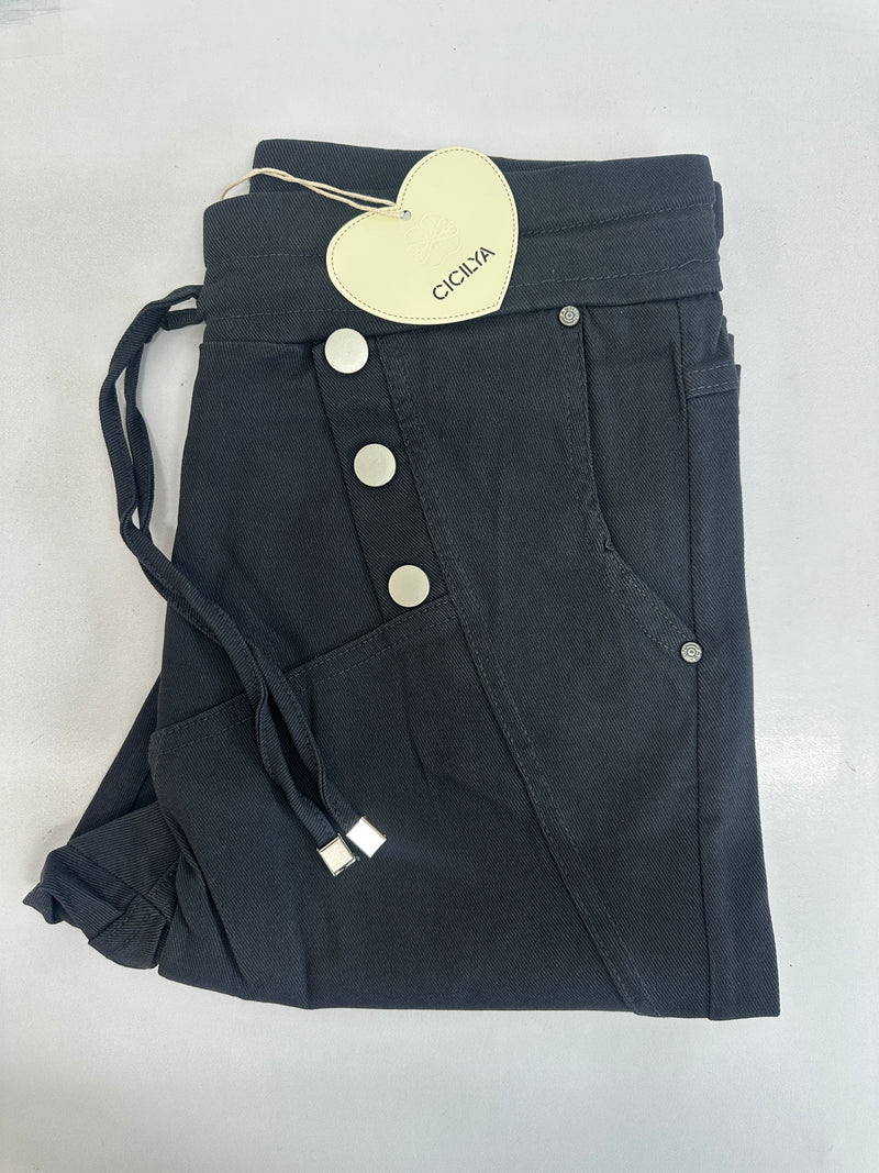 ברמודת דריל עם גומי במותן, כיסים צידיים,שרוך קשירה וכפתורים.