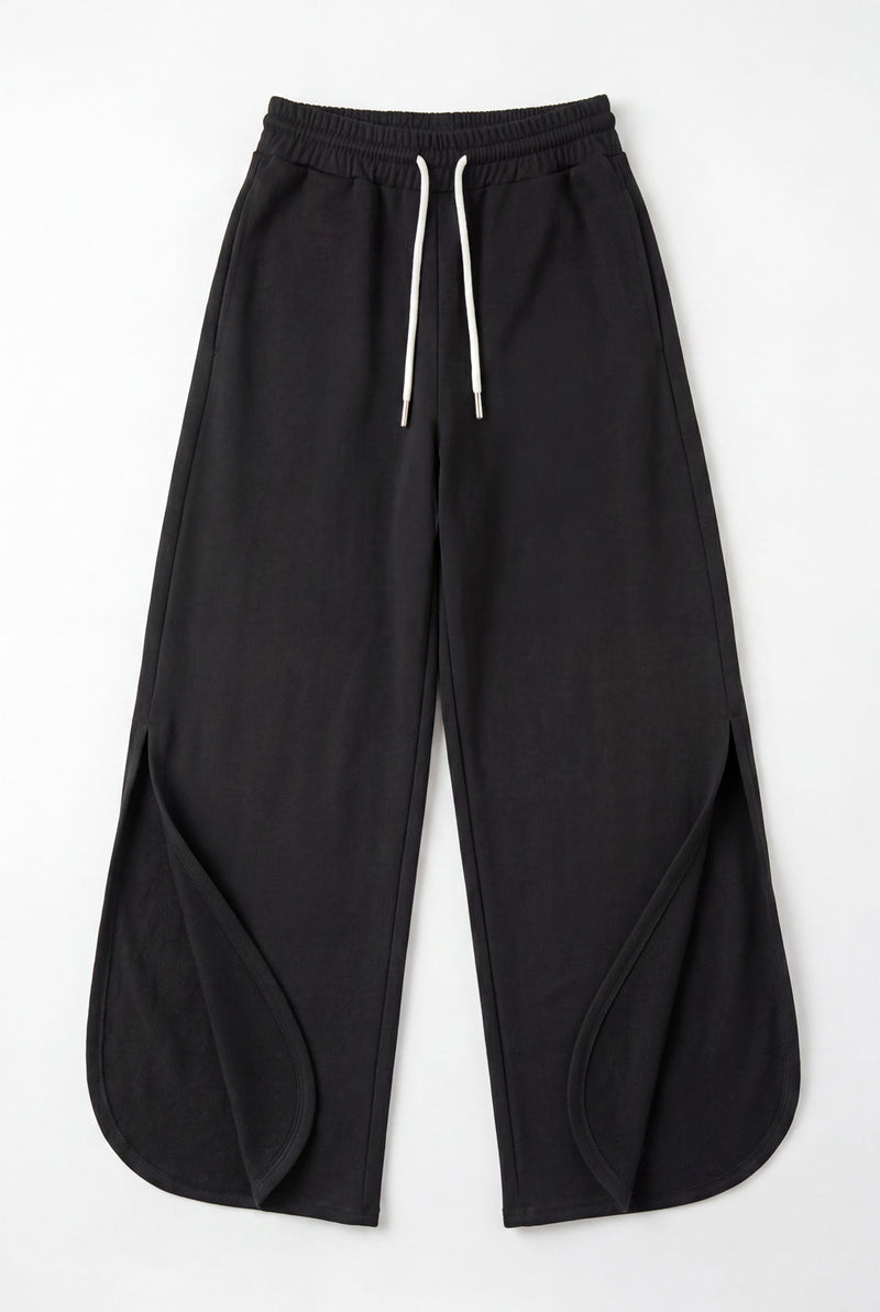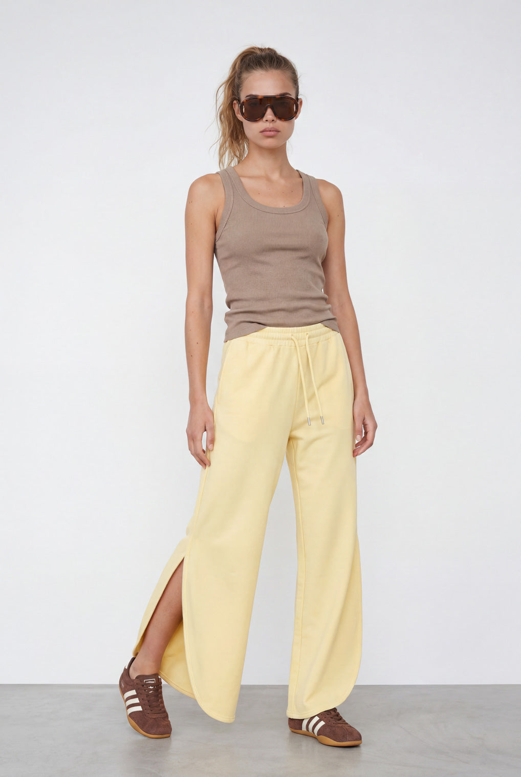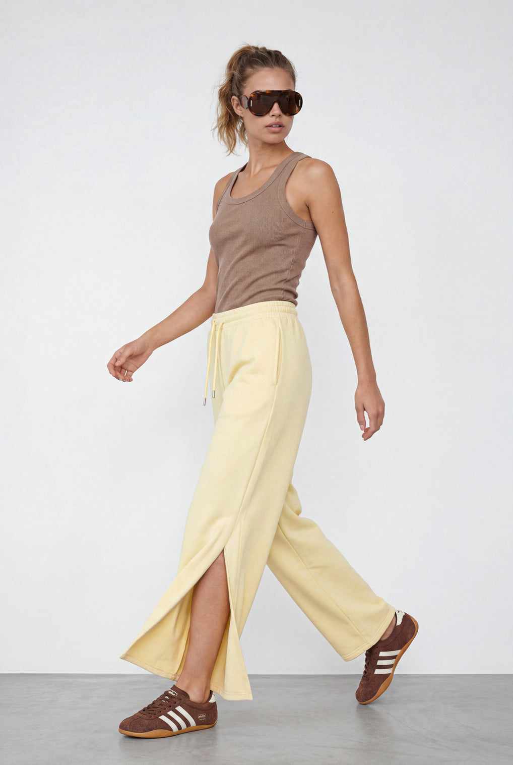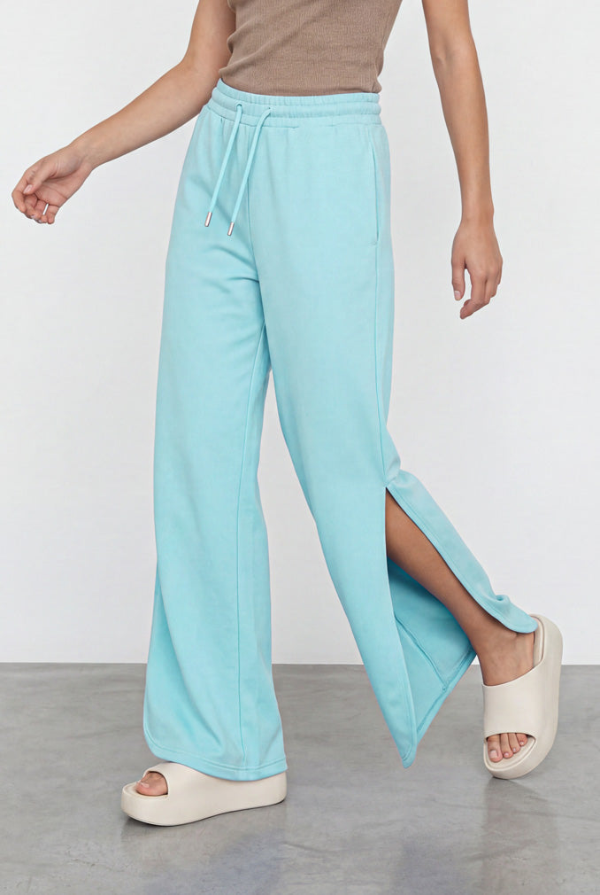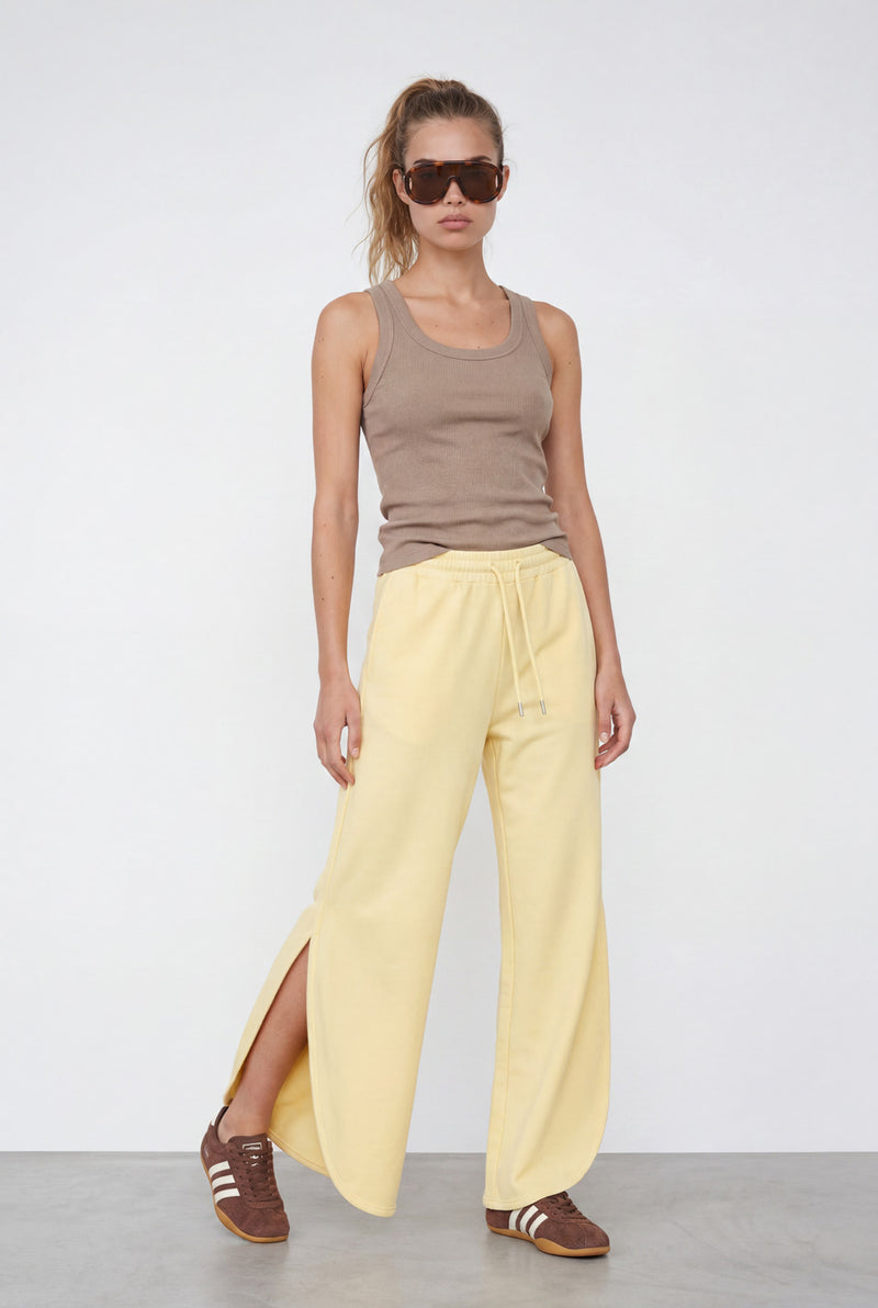 מכנסיים מבד כותנה בגזרת בלון עם שסע צידי,כיסים,גומי במותן ושרוך קשירה.