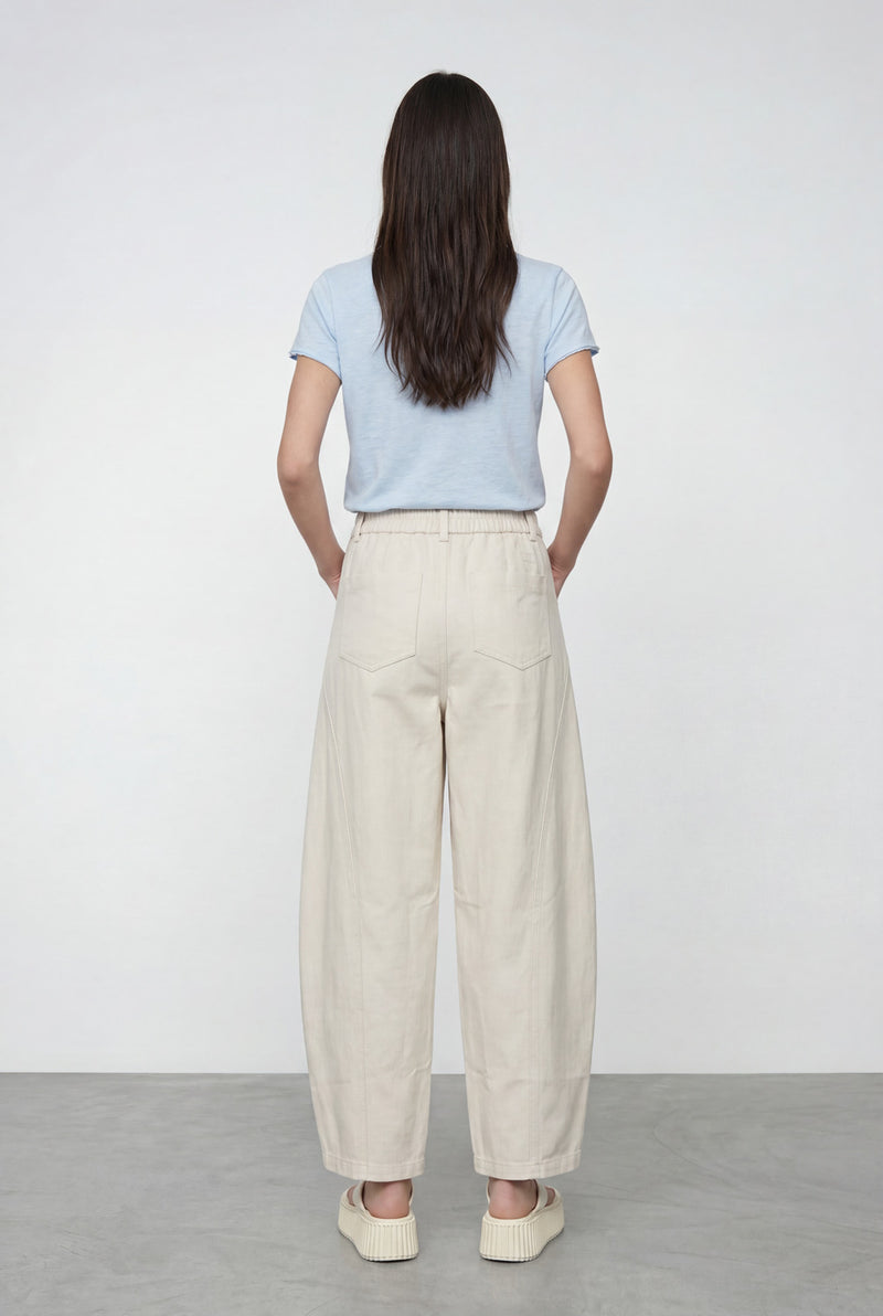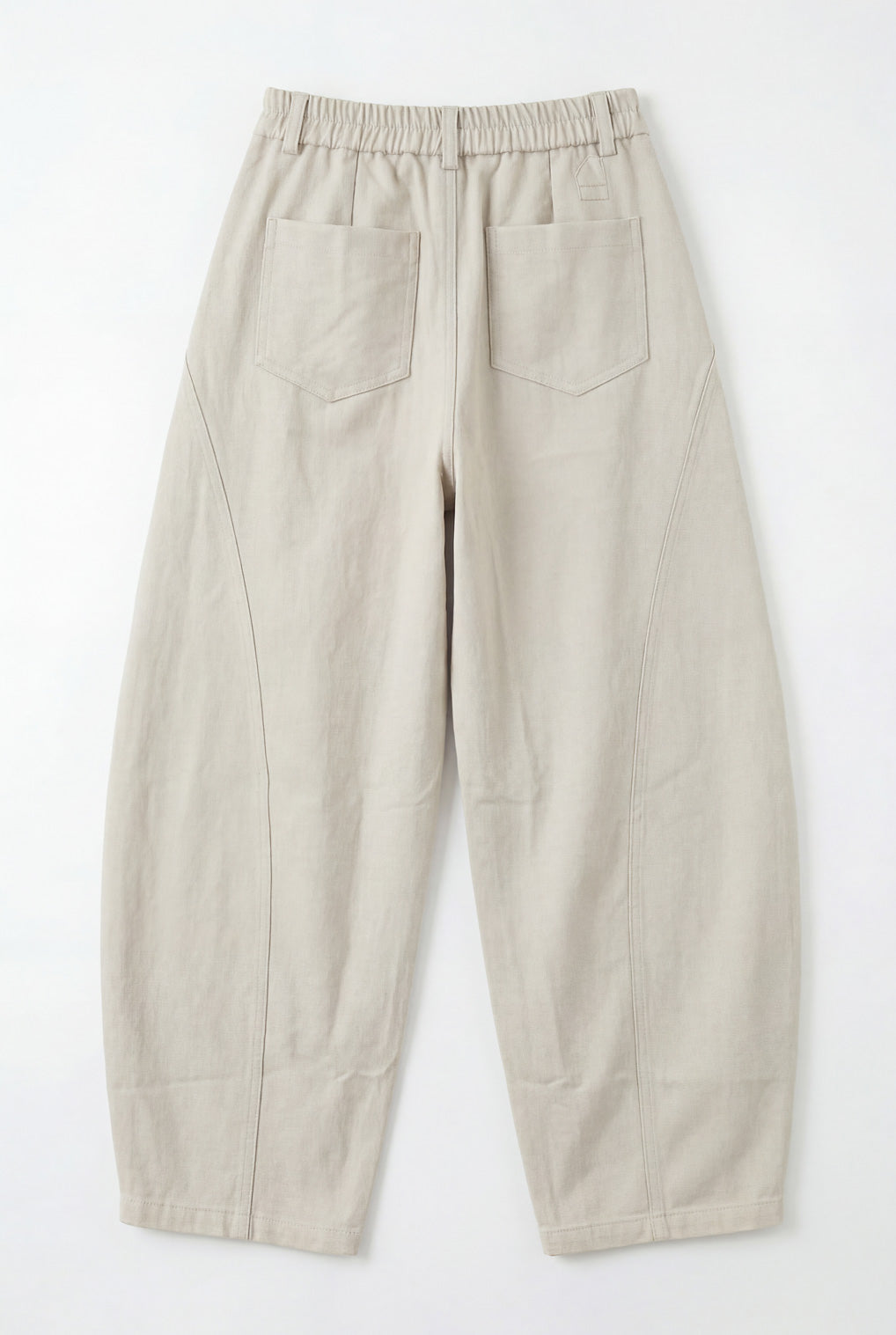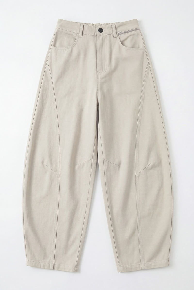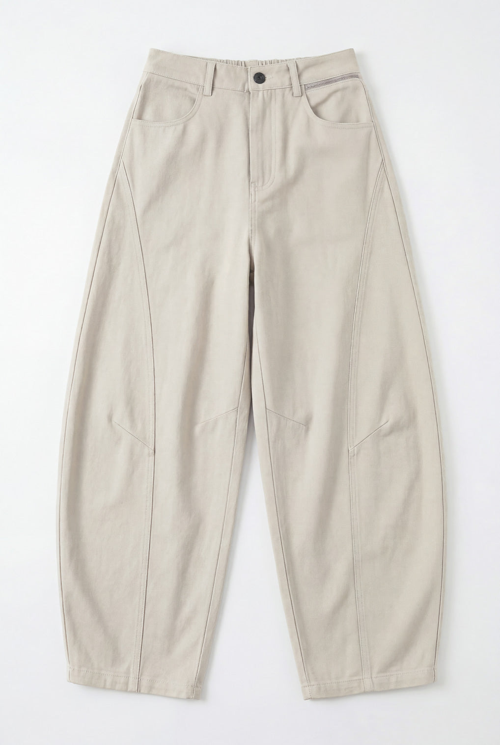 מכנסי דריל בגזרת בלון עם כיסים צידיים,רוכסן וכפתור קדמי.