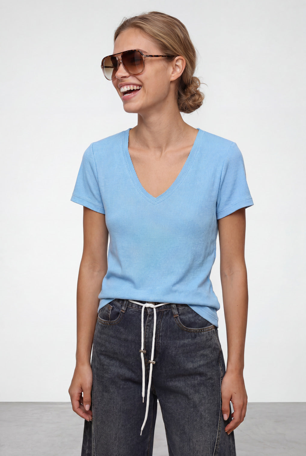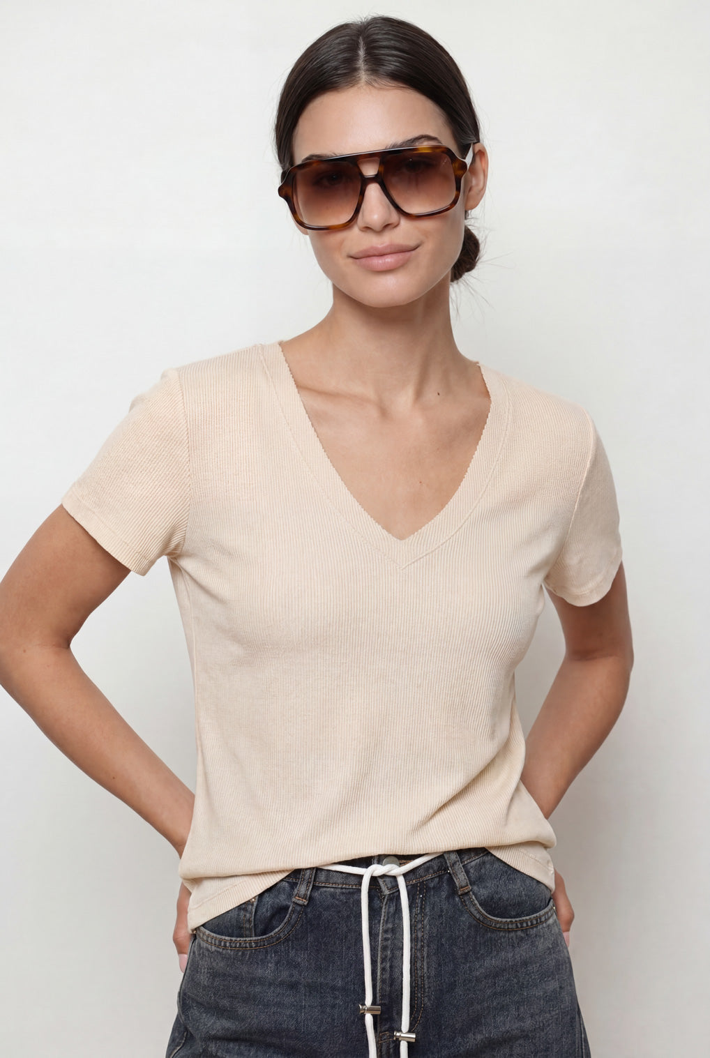 חולצת וי גזור ריב סלאב