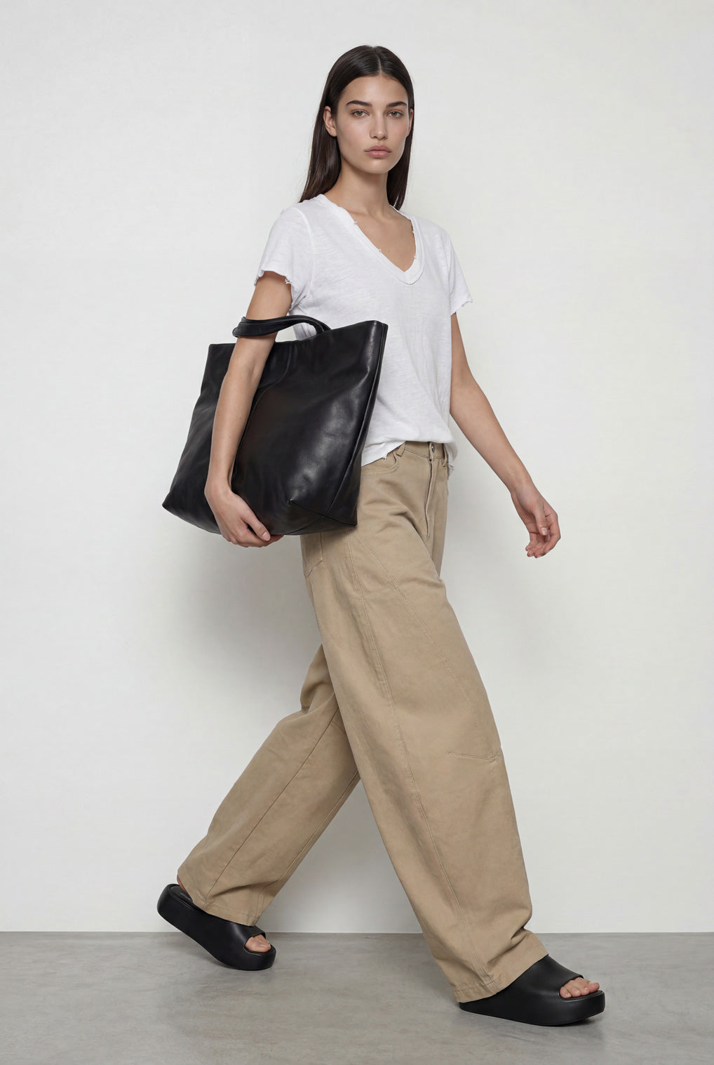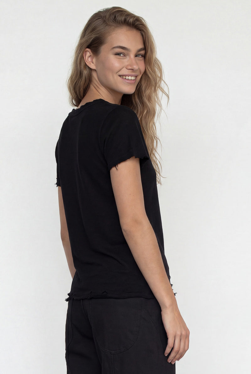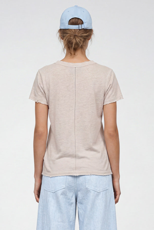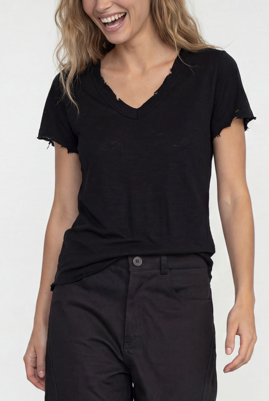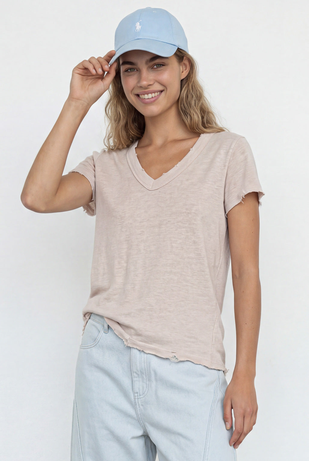 חולצת בייסיק מבד סלאב פשתן עם צווארון וי בגזרה מדויקת.