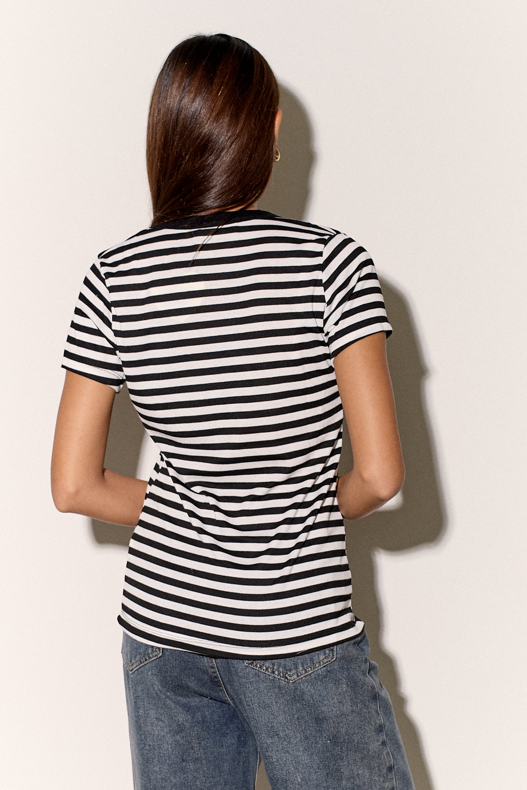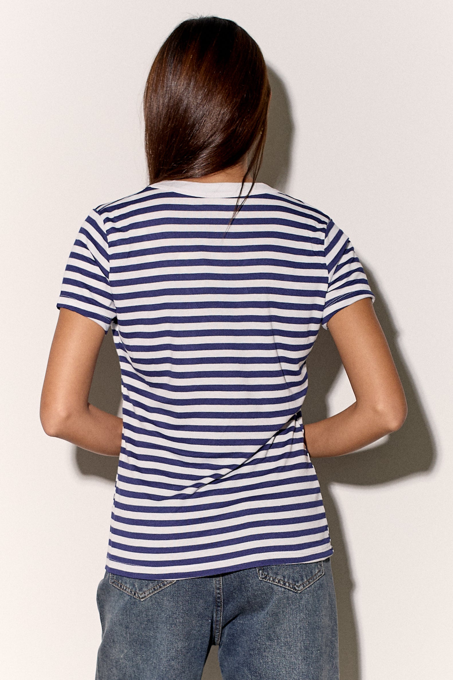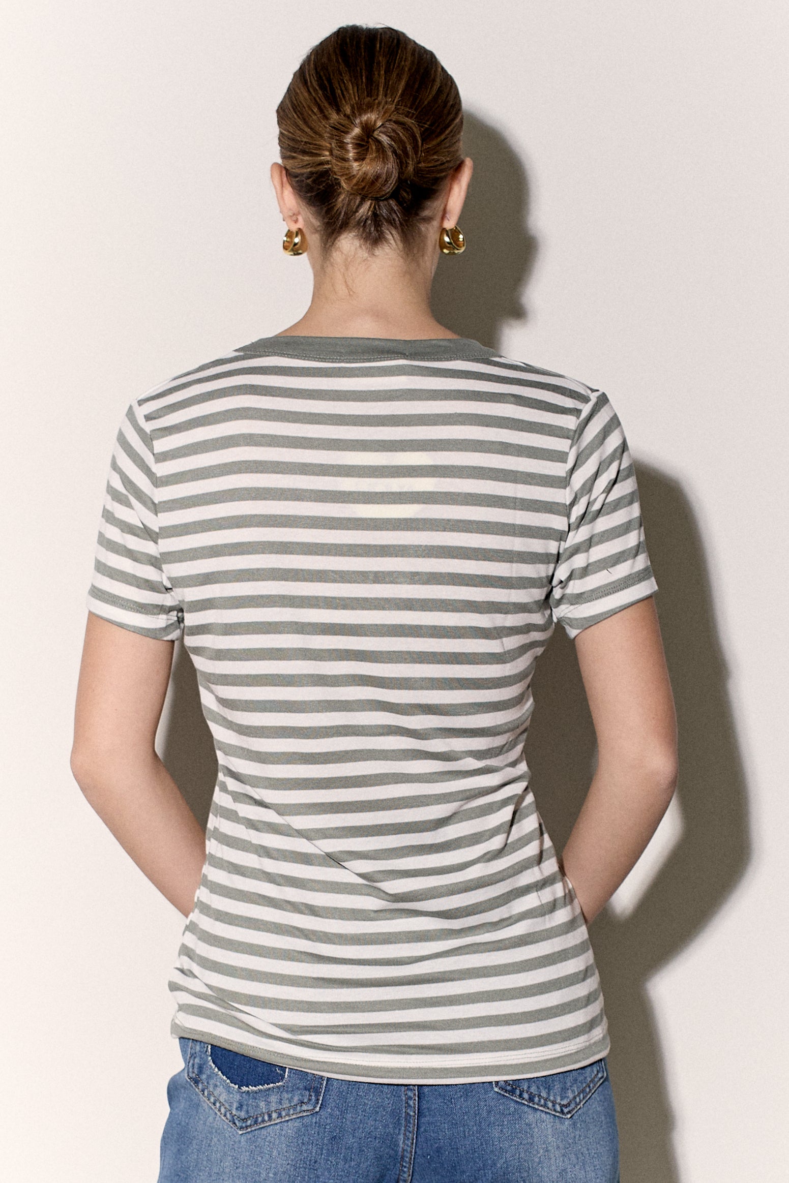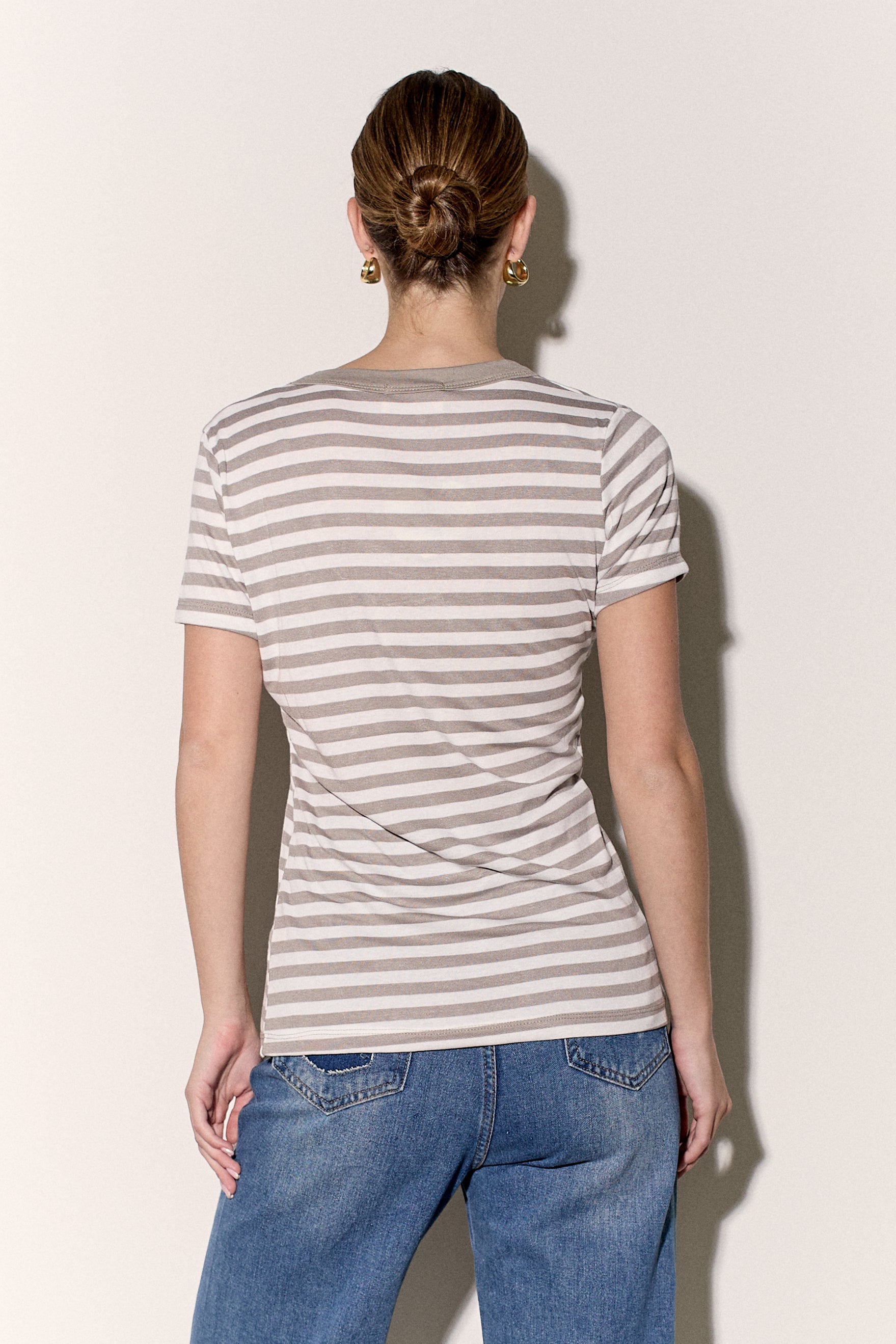 חולצת בייסיק מבד פיינריב כותנה בפרינט פסים עם צווארון וי.