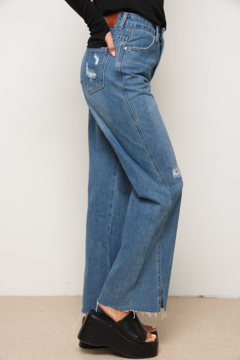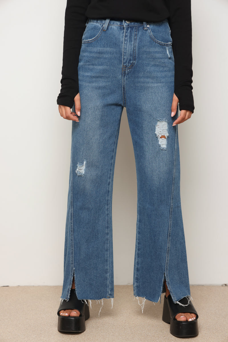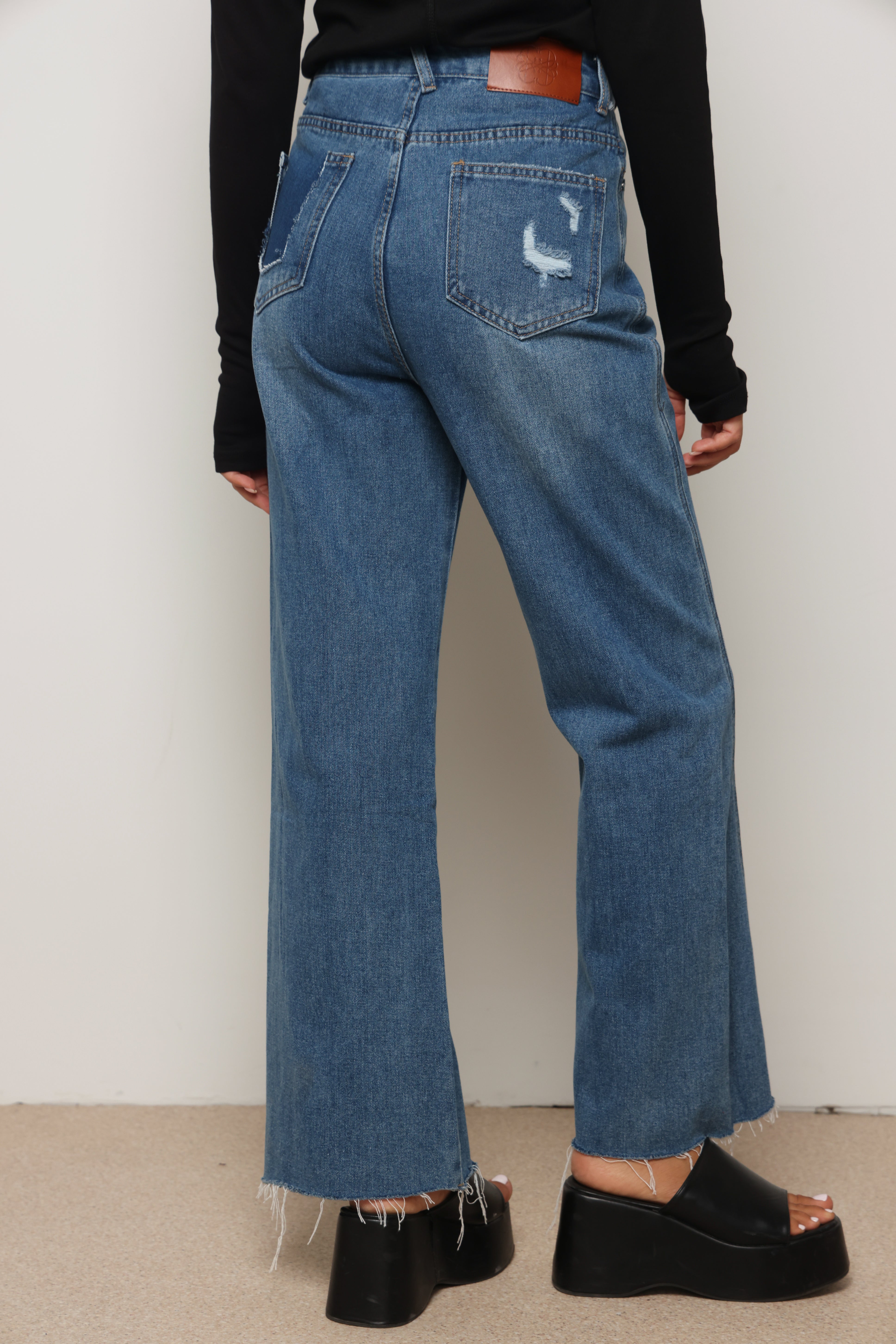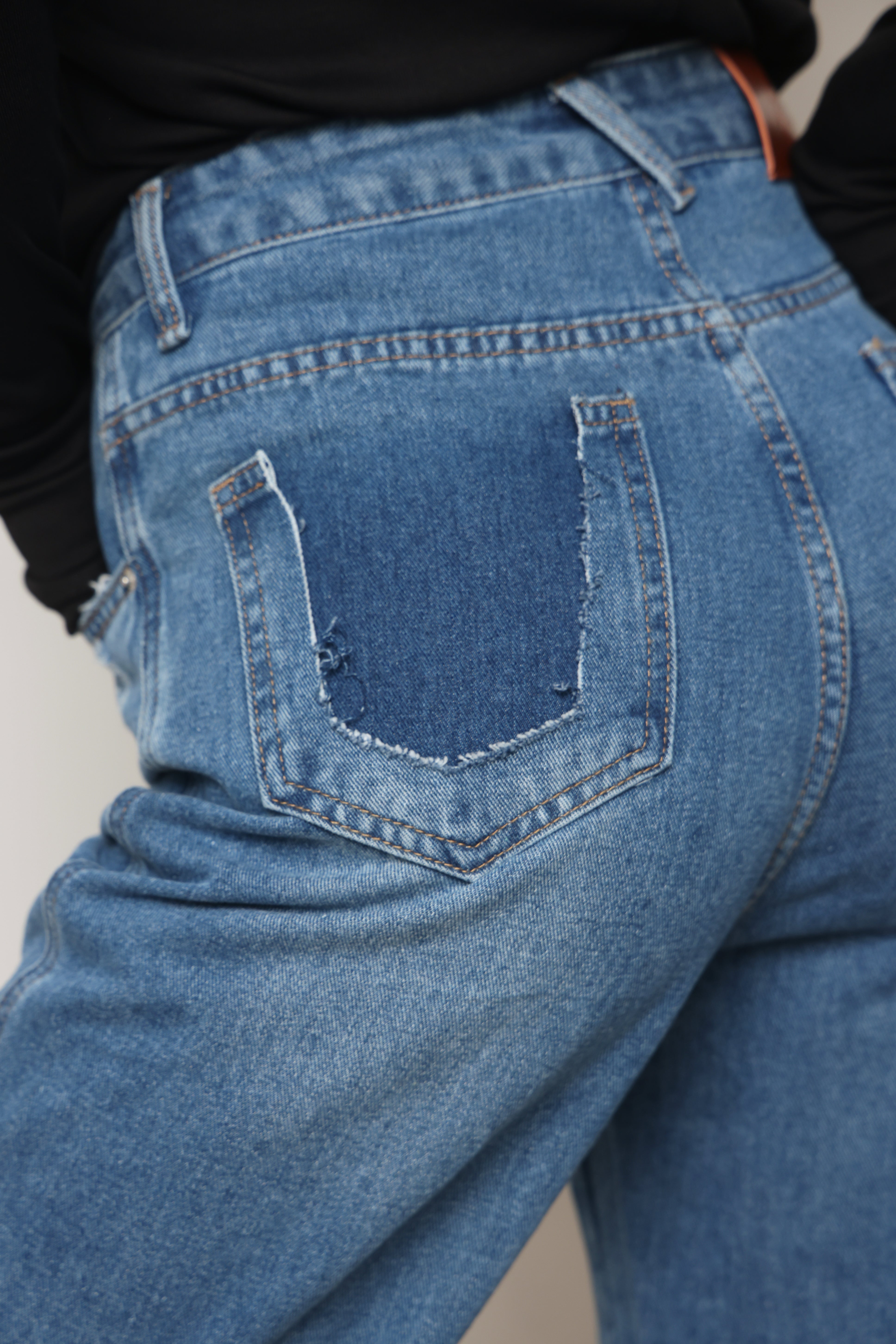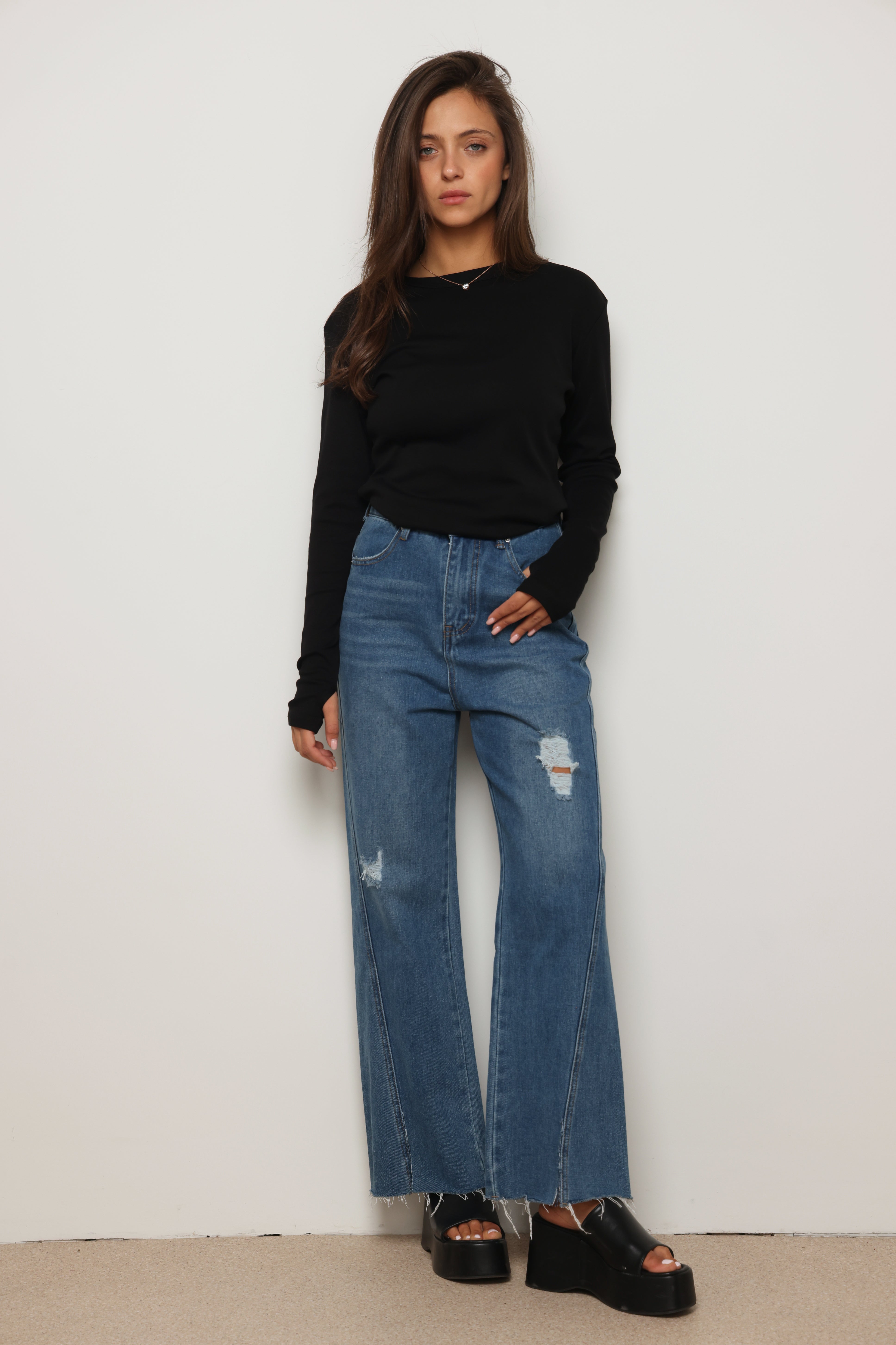 ג'ינס ארוך מתרחב עם כיסים,רוכסן וסגירת כפתור.