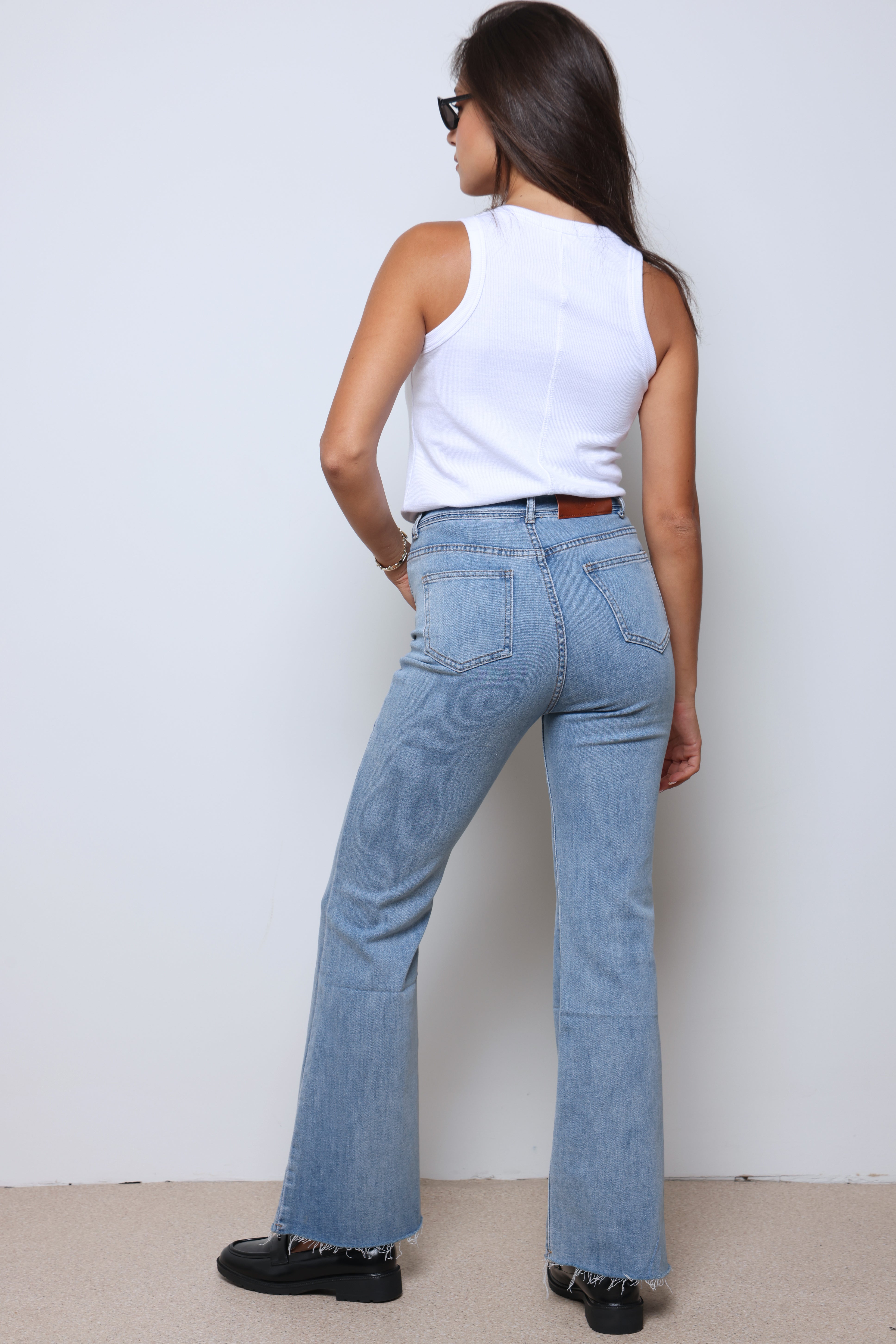 ג'ינס ארוך בסיומת פדלפון עם כיסים וסגירת כפתור.