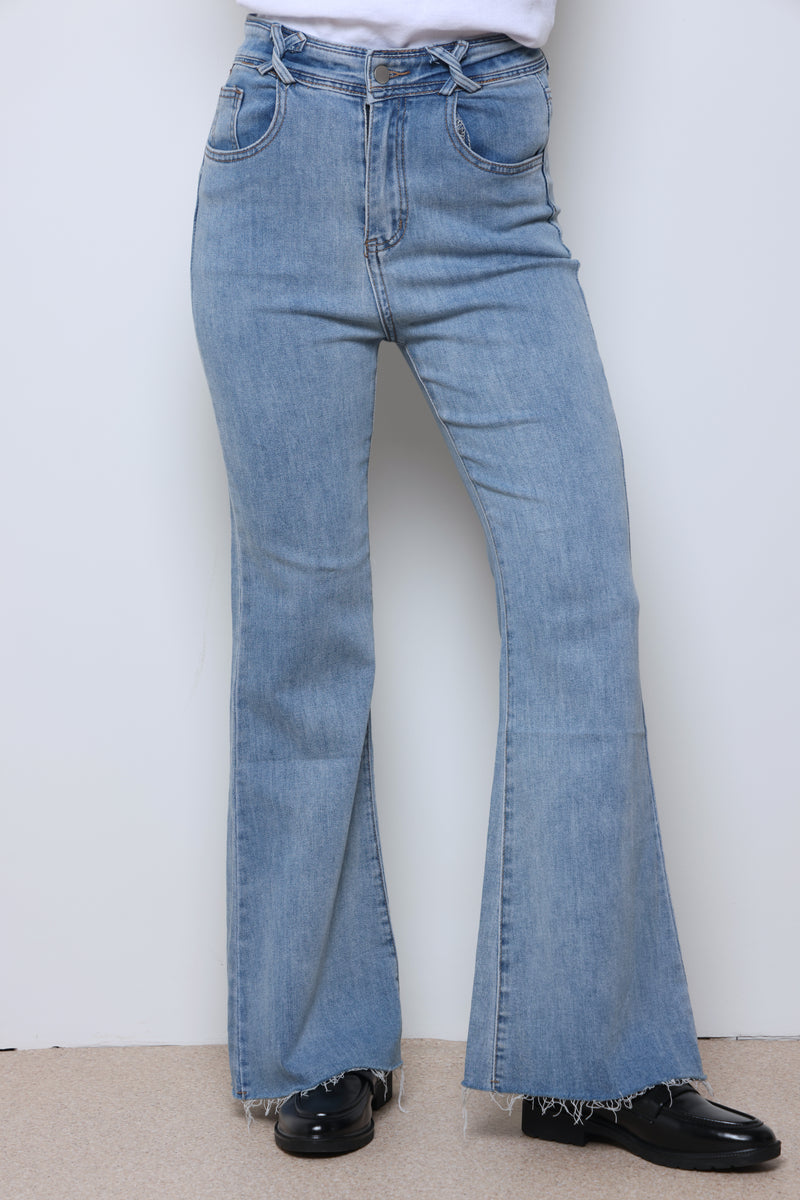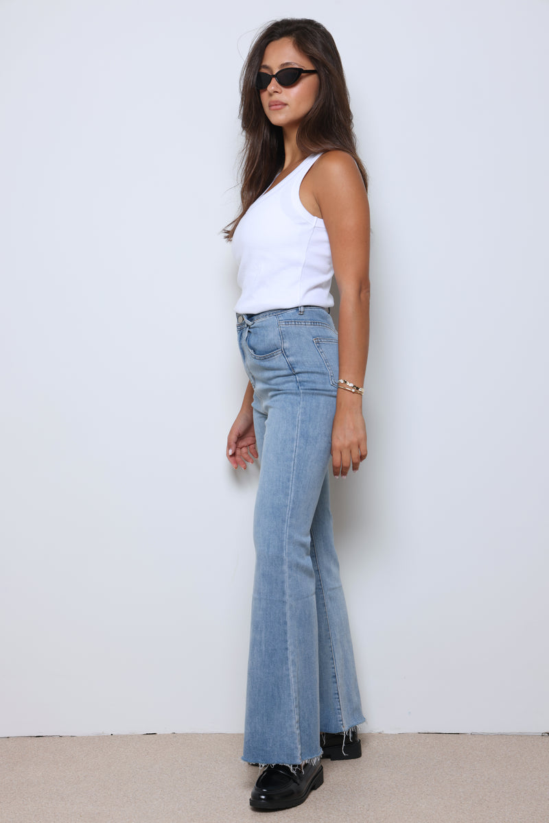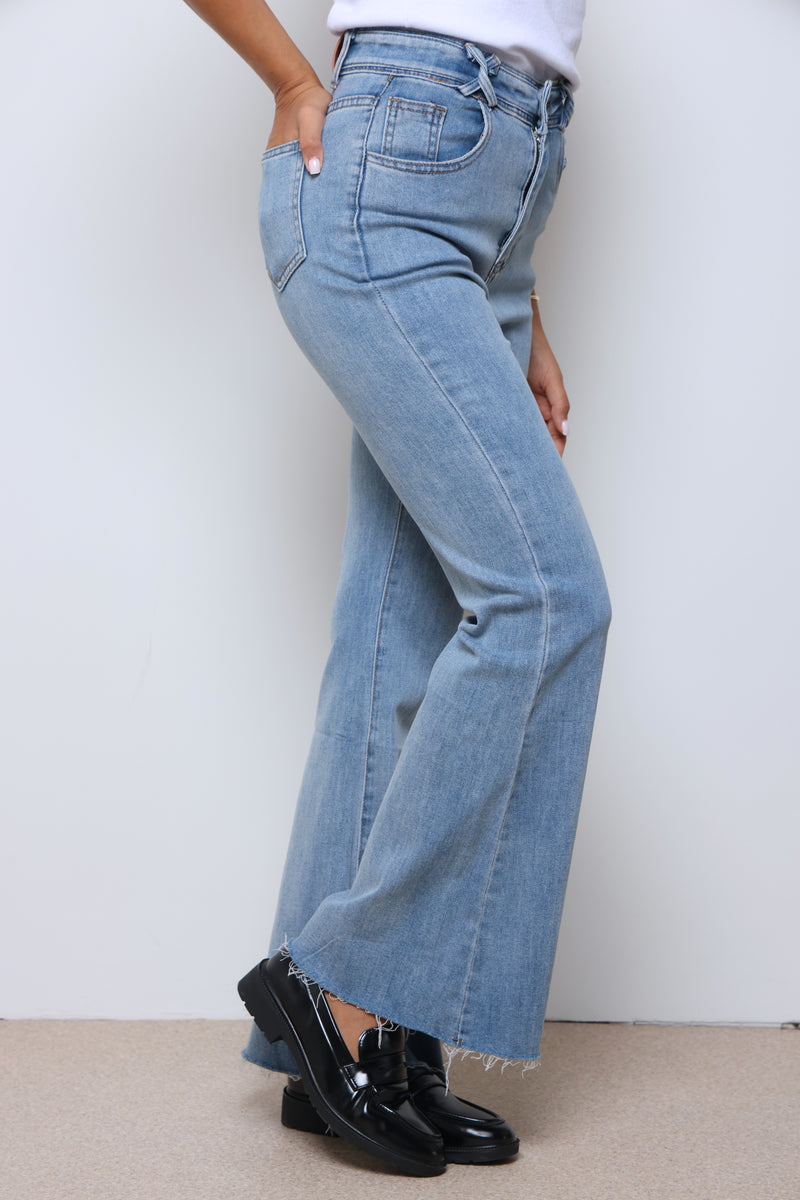 ג'ינס ארוך בסיומת פדלפון עם כיסים וסגירת כפתור.