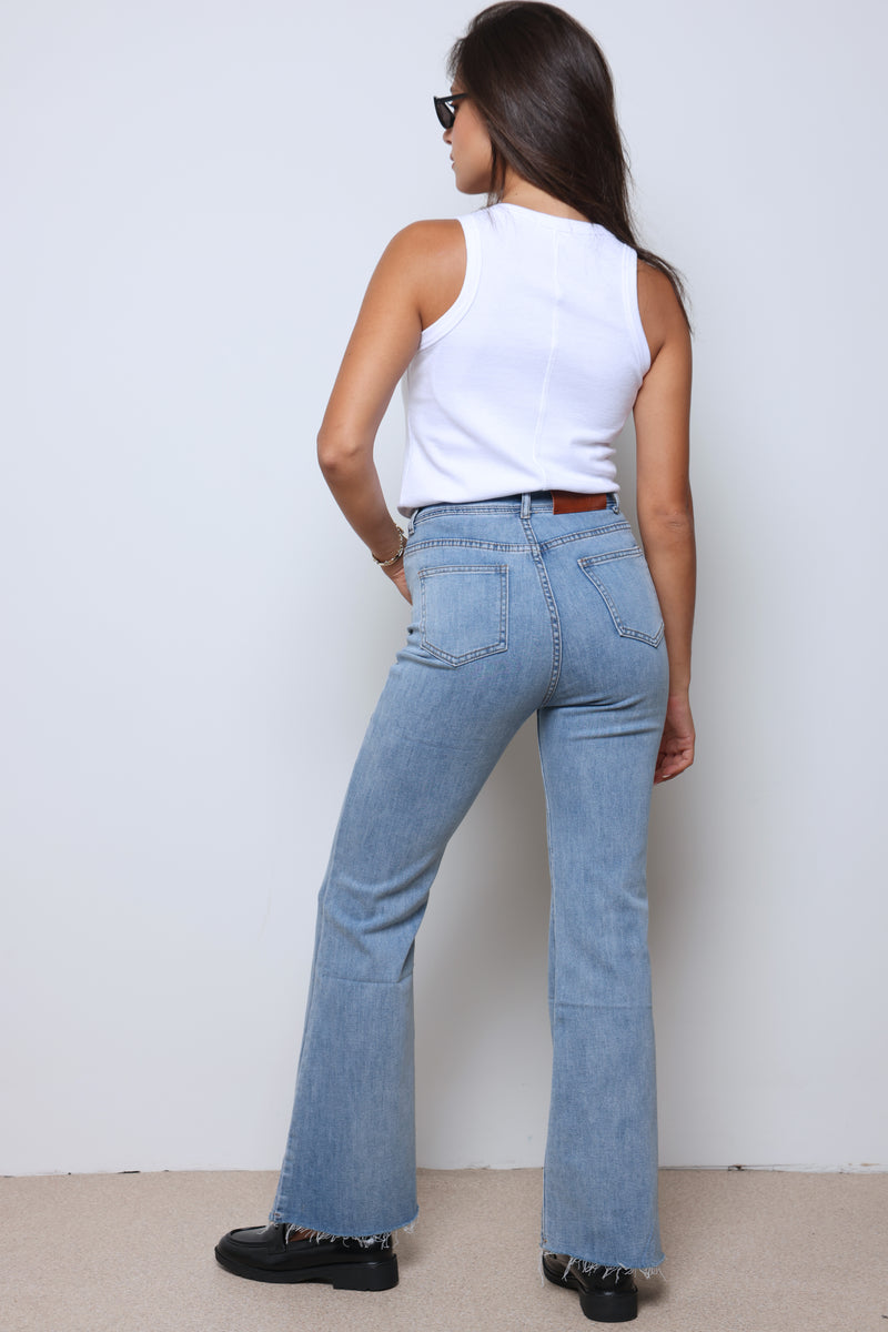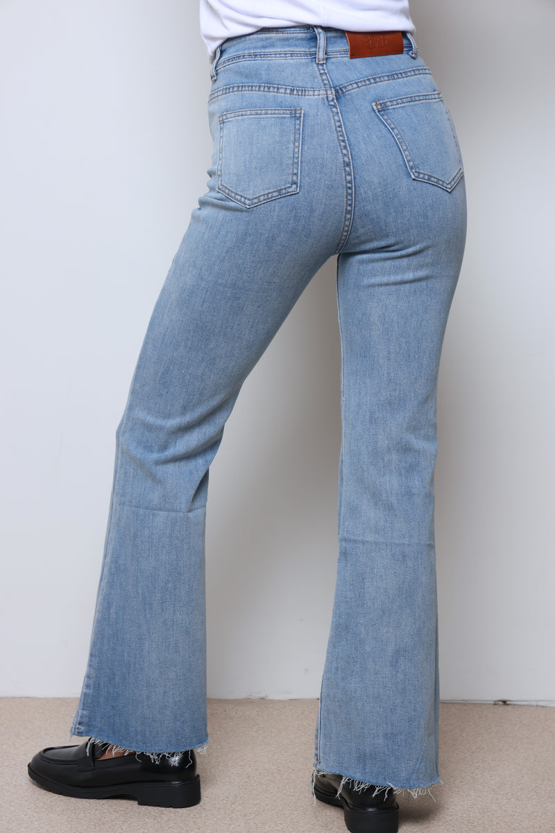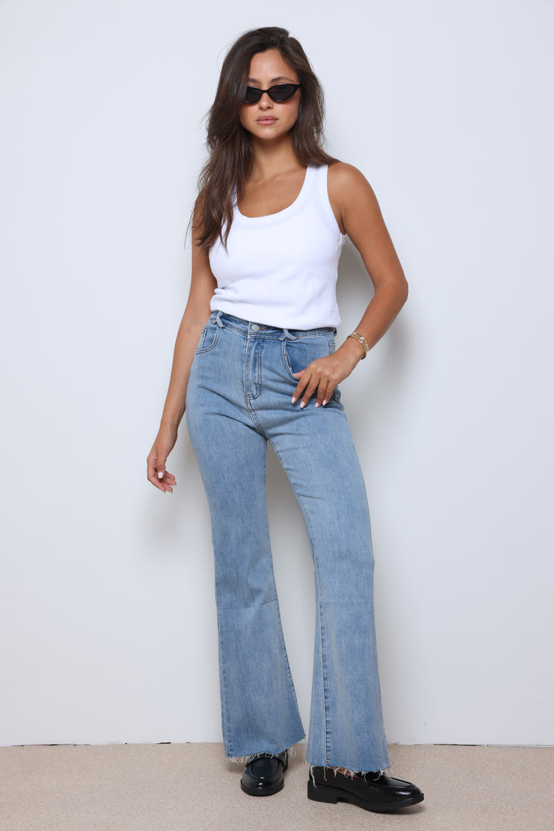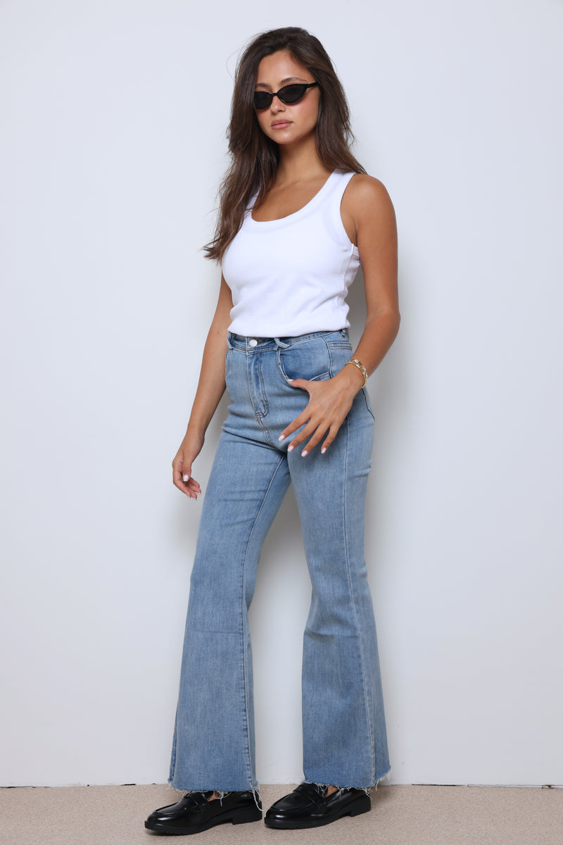 ג'ינס ארוך בסיומת פדלפון עם כיסים וסגירת כפתור.