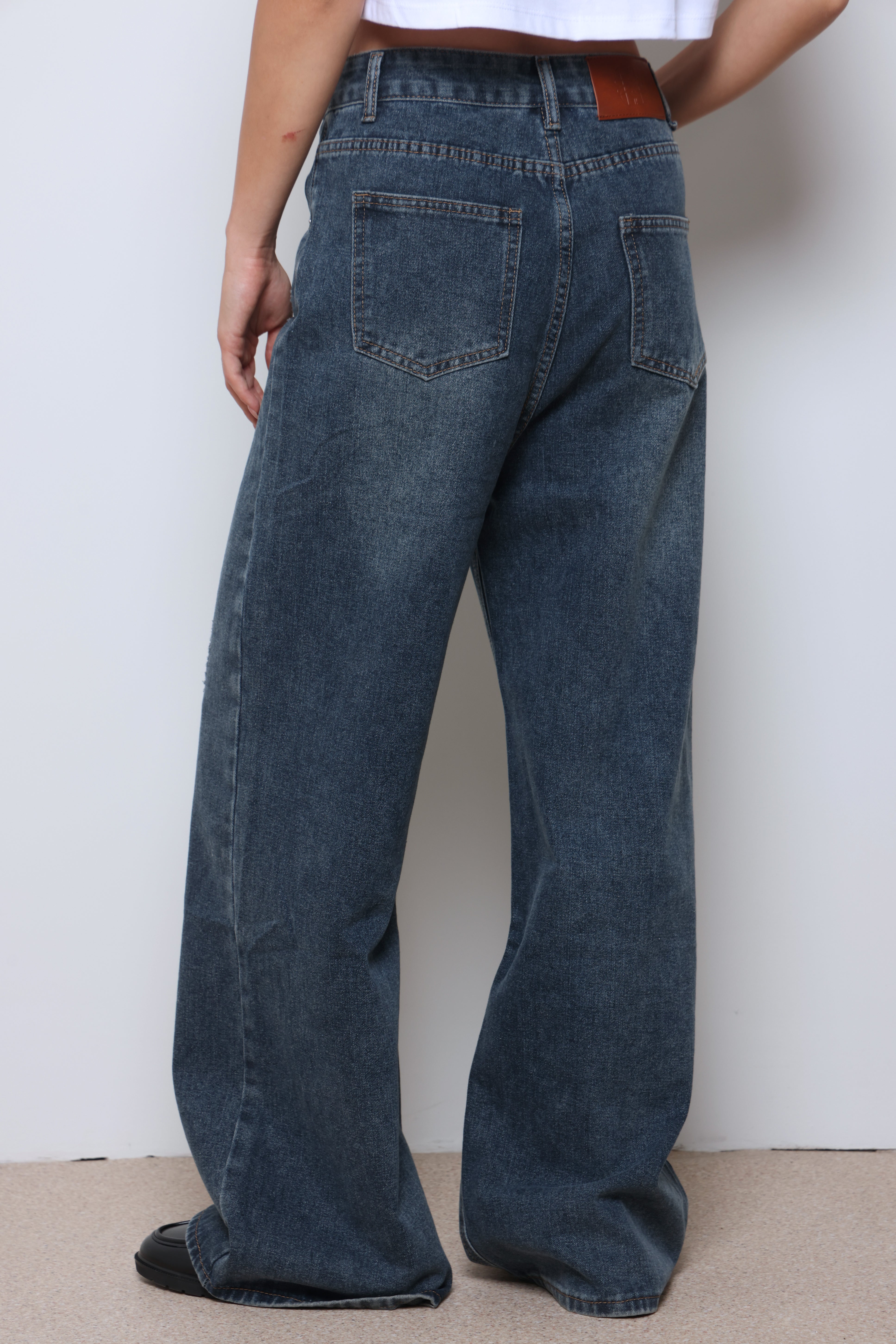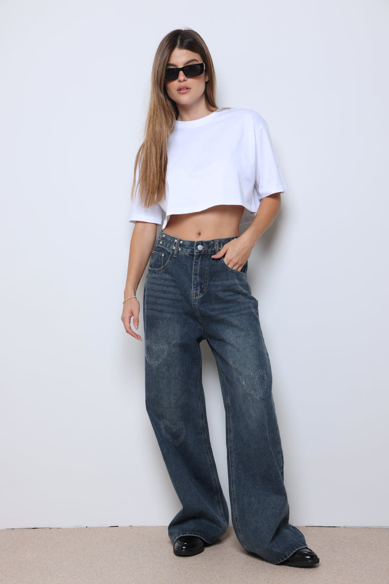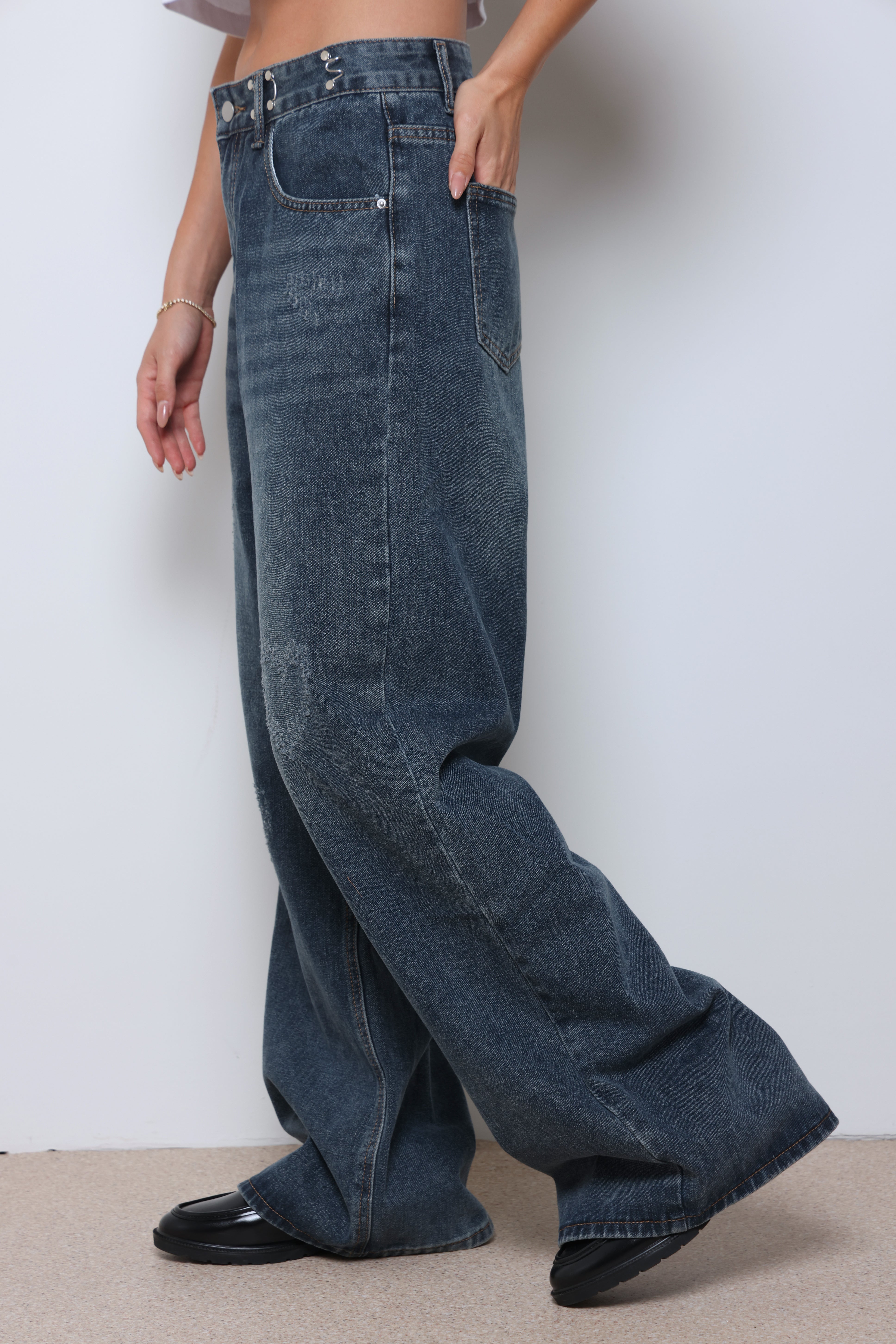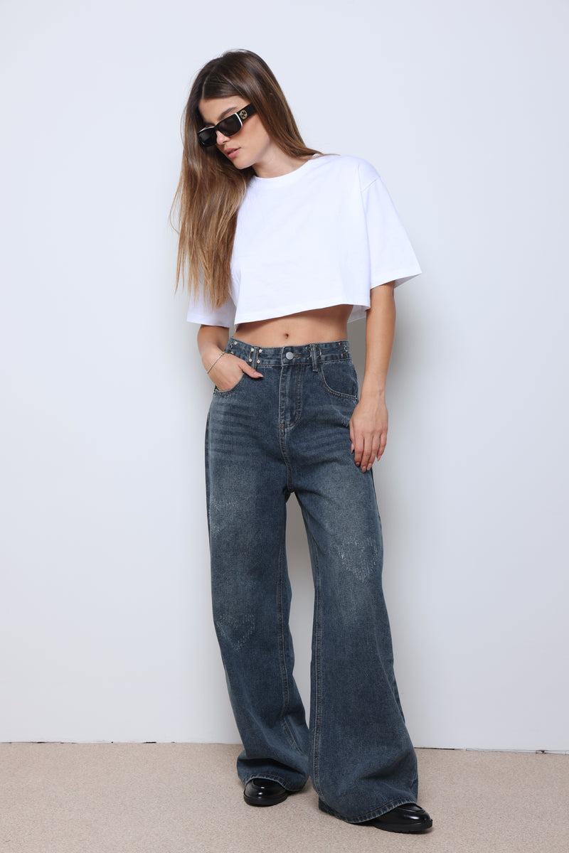 ג'ינס ארוך מתרחב עם כיסים וסגירת כפתור.