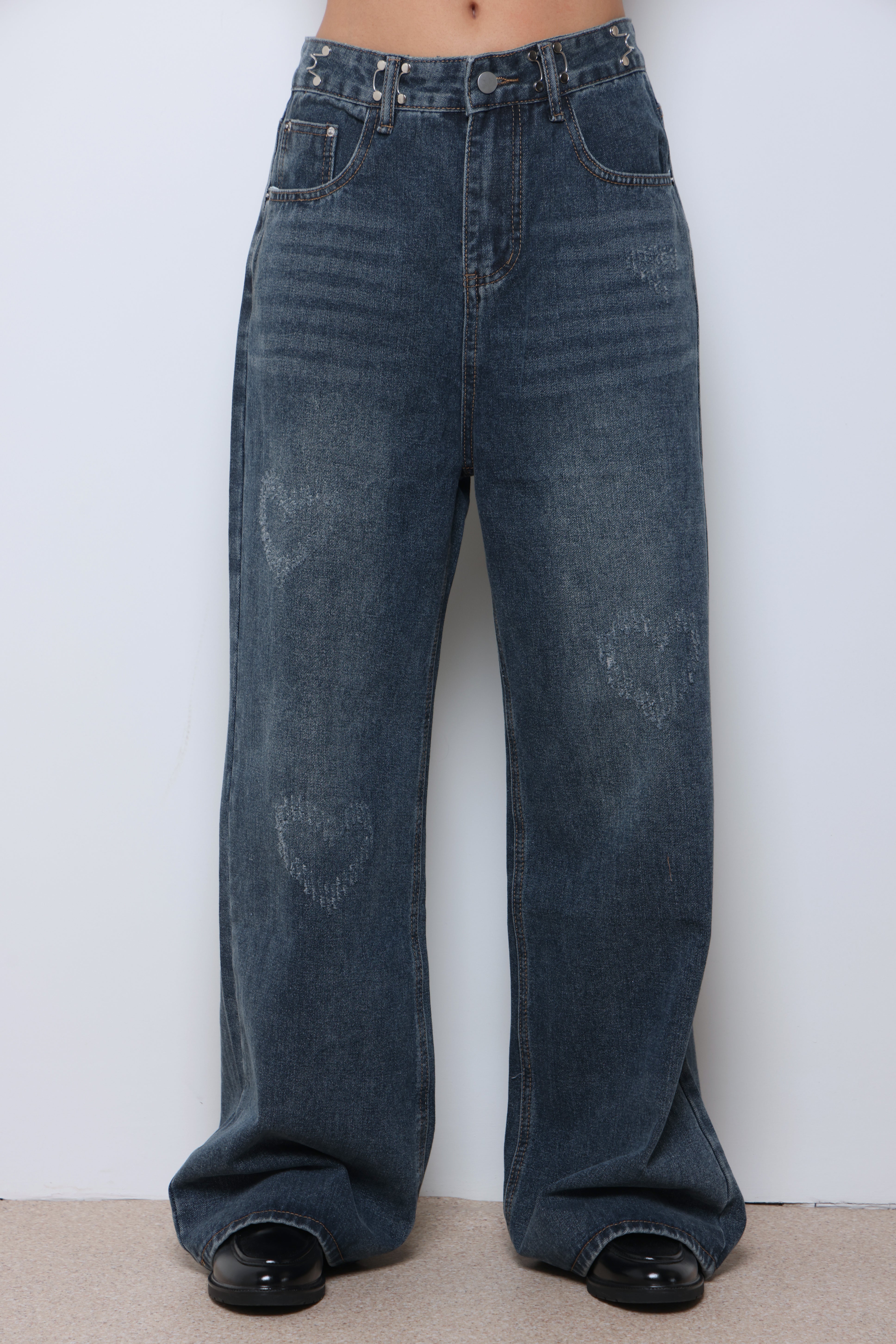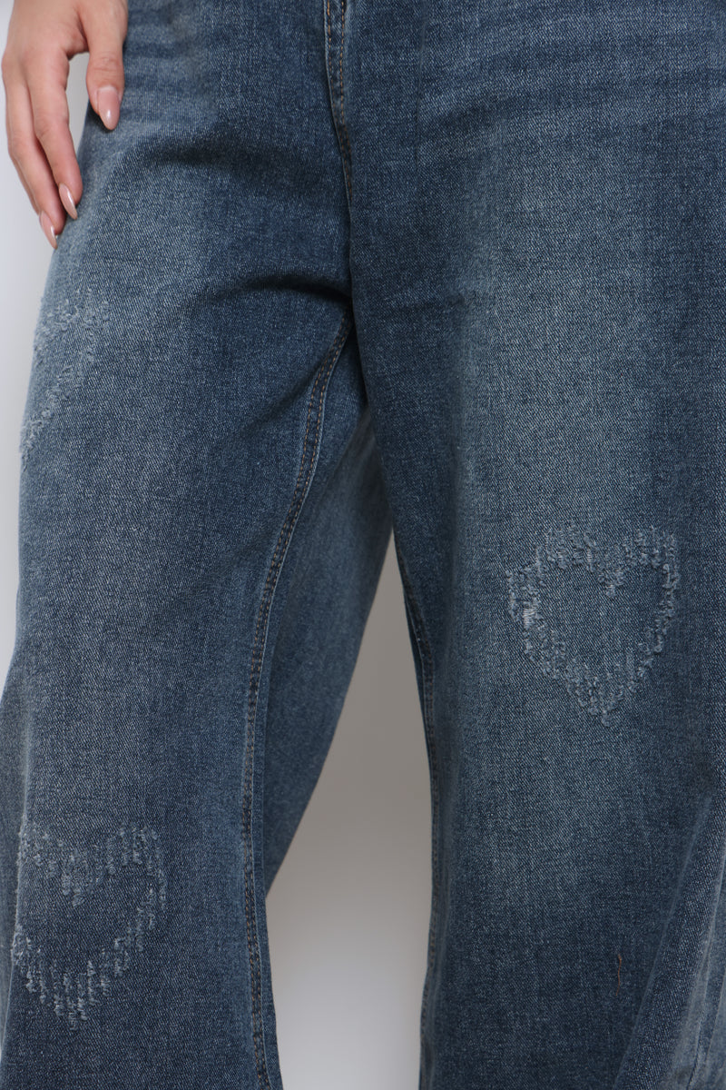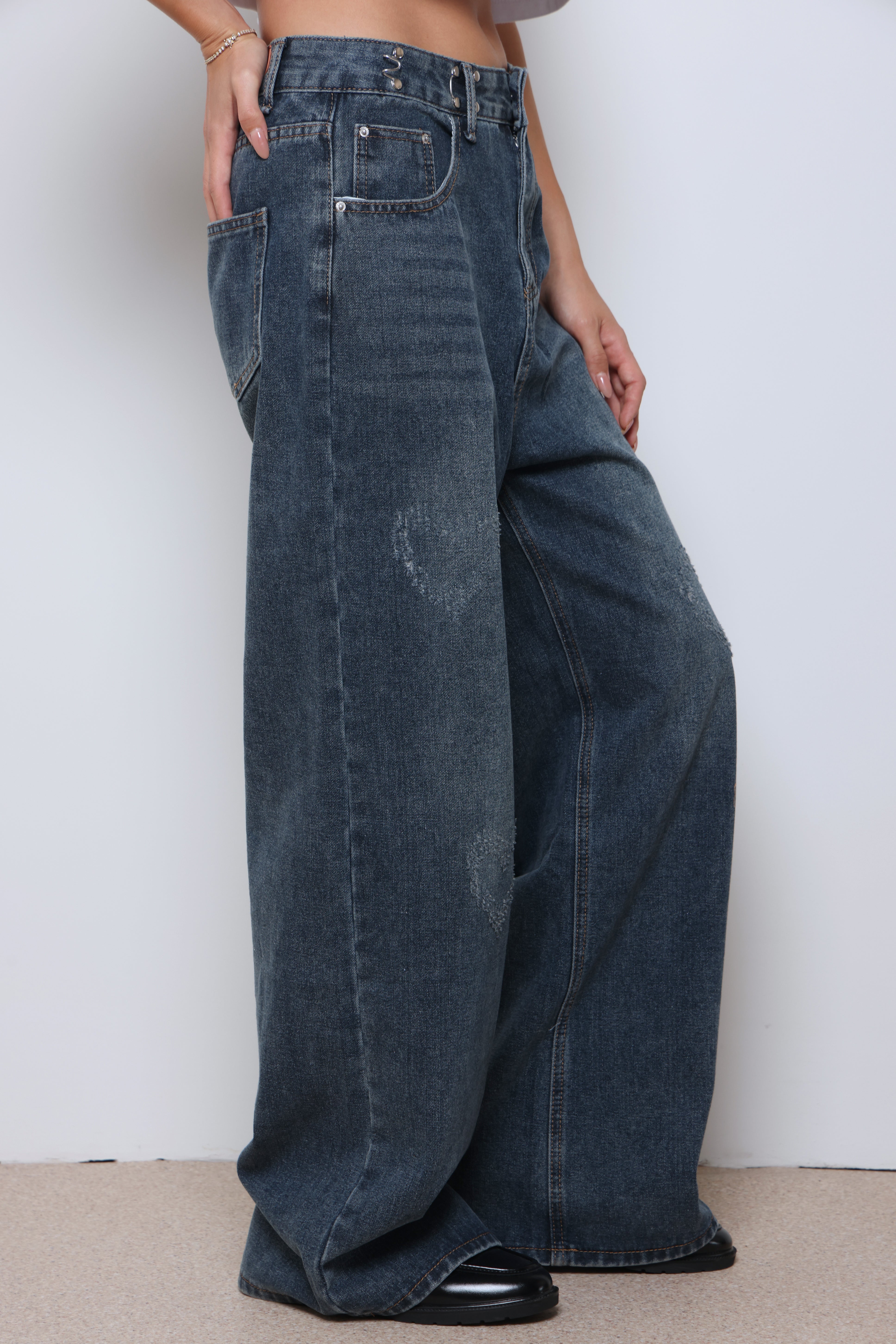 ג'ינס ארוך מתרחב עם כיסים וסגירת כפתור.