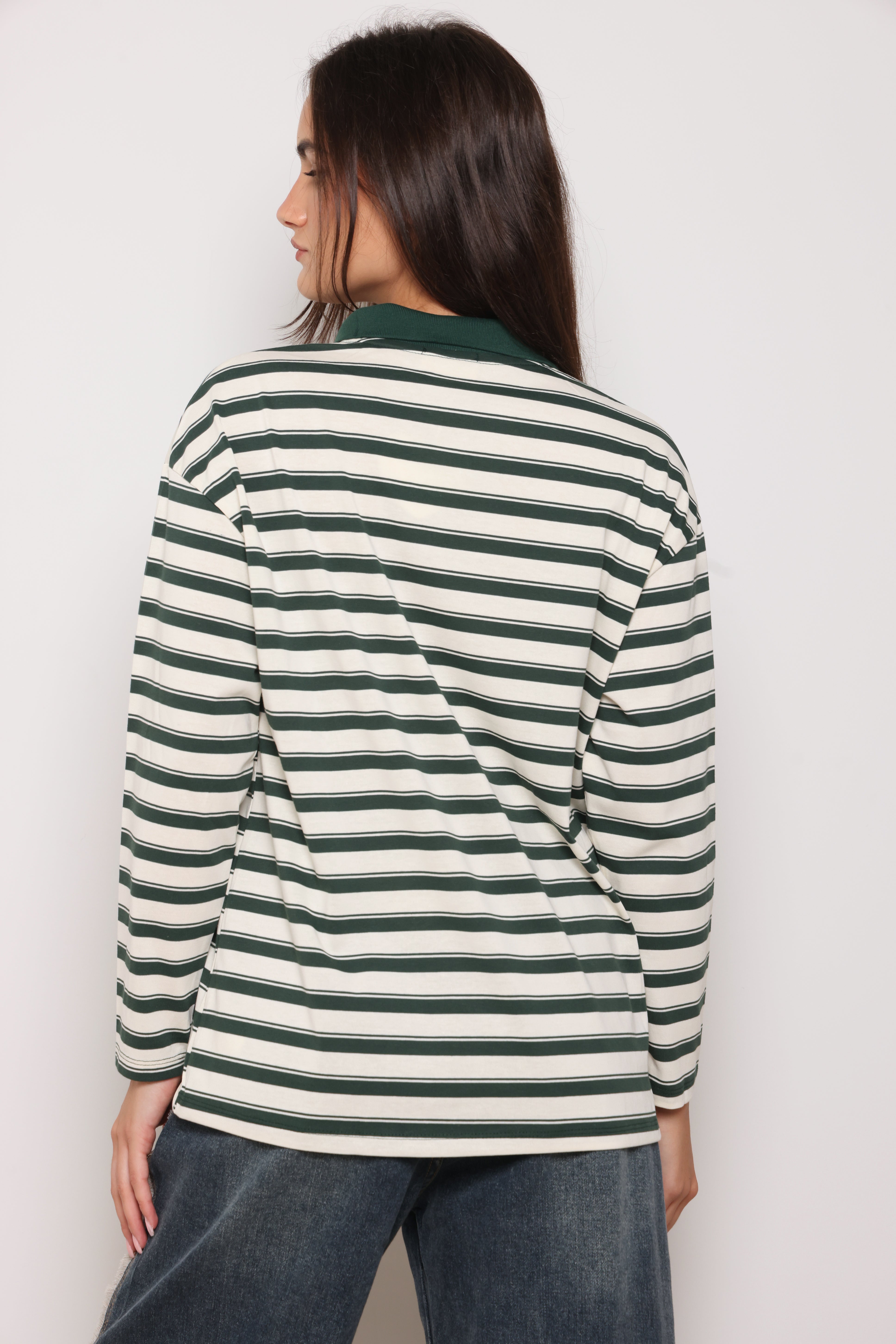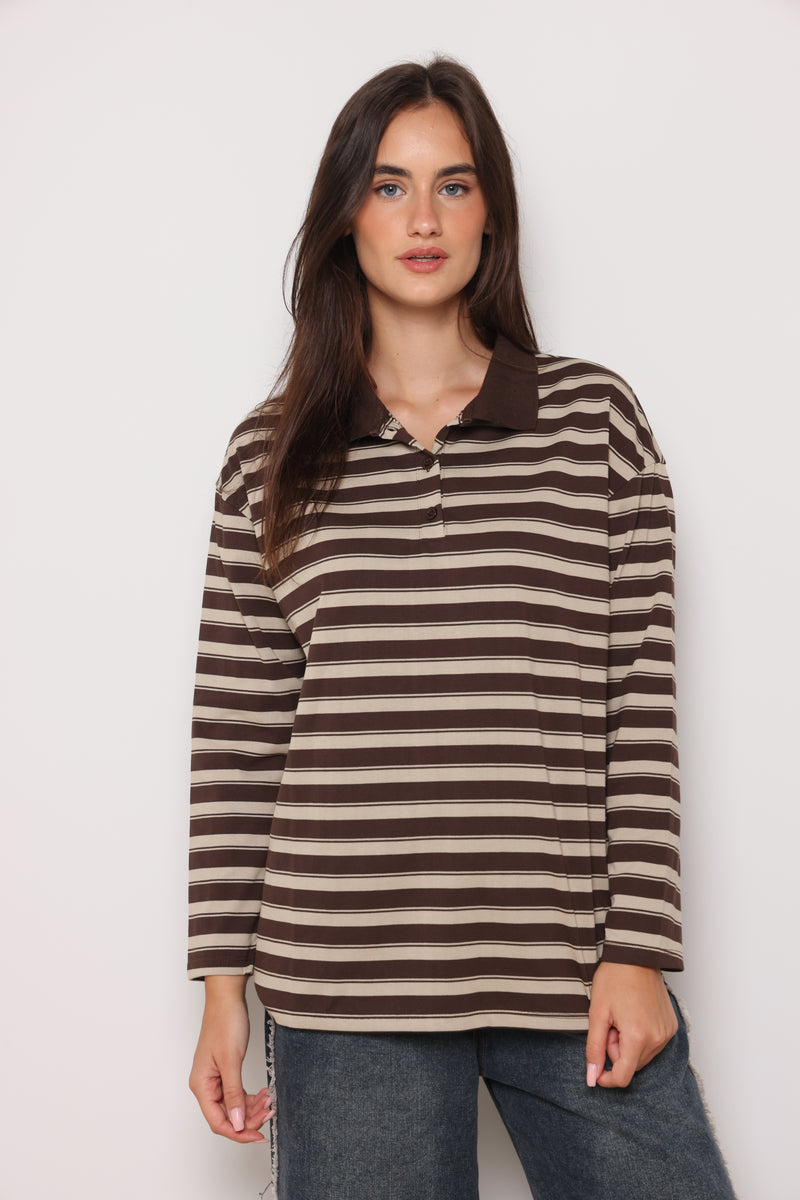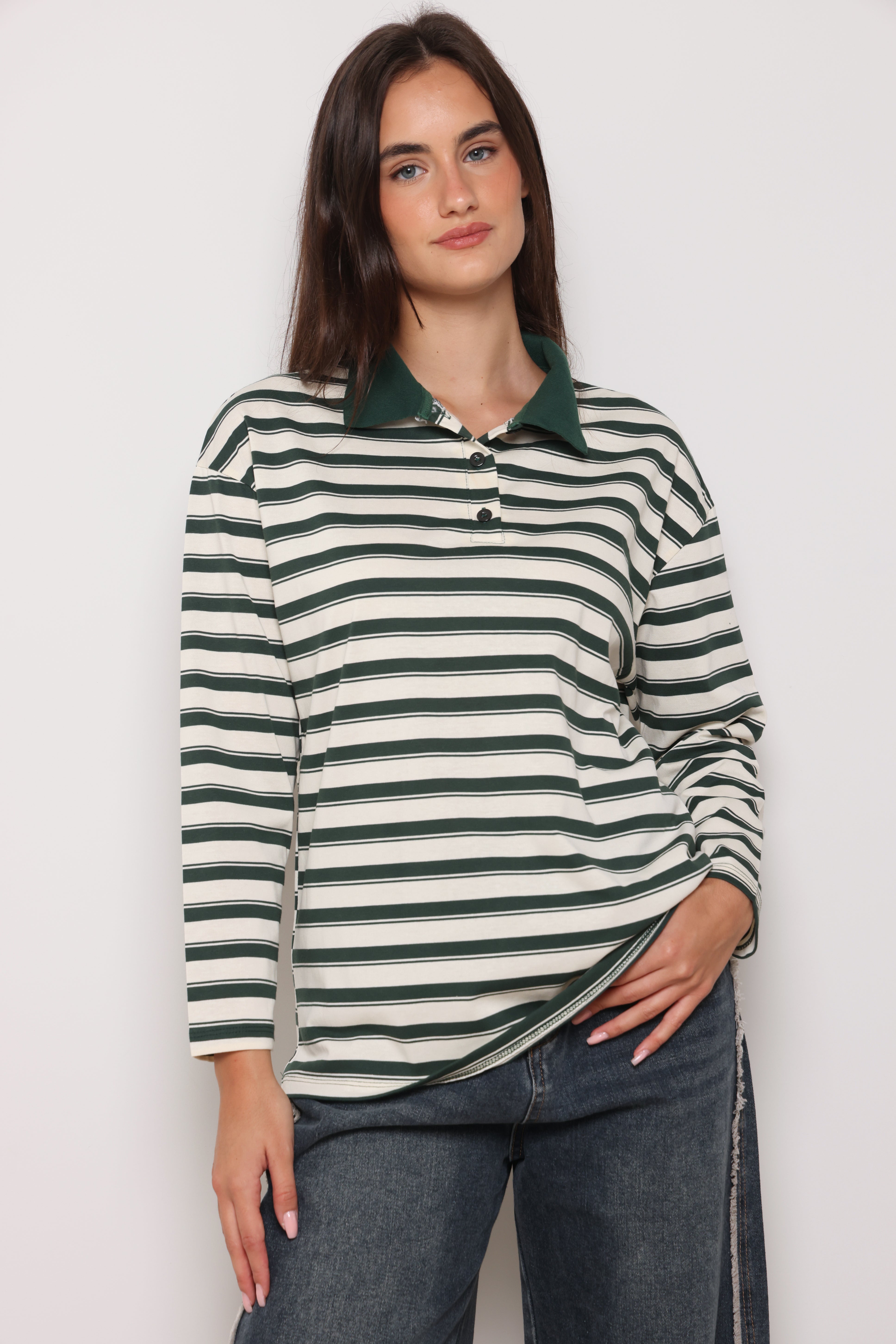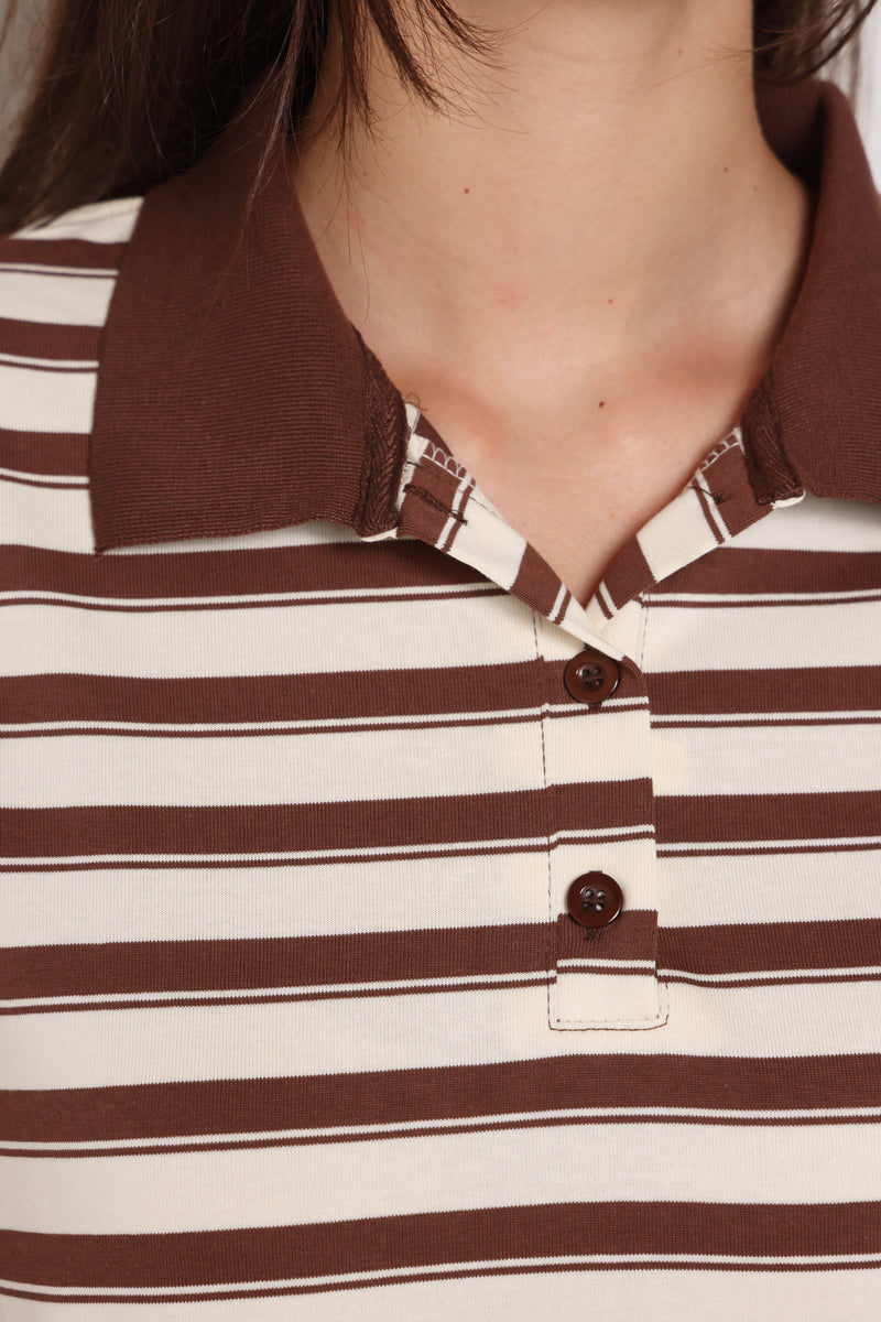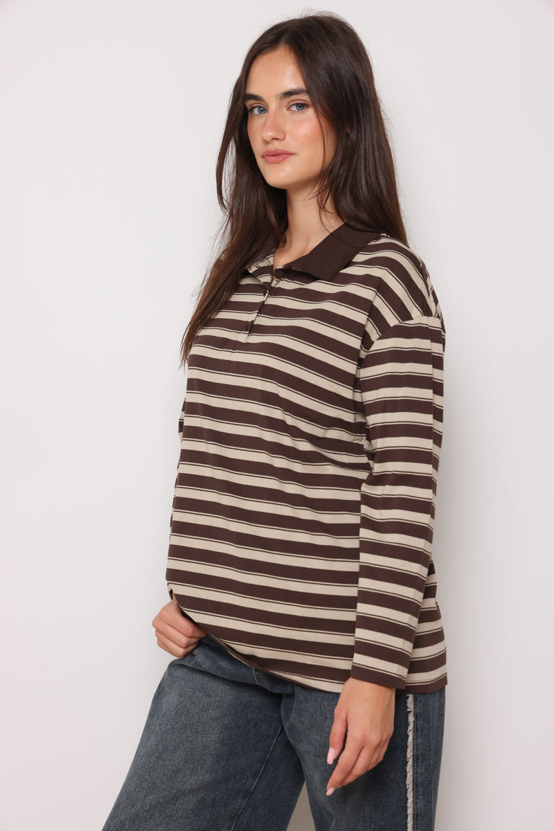 חולצה בפרינט פסים מבד ויסקוזה עם צווארון פולו במגוון צבעים.