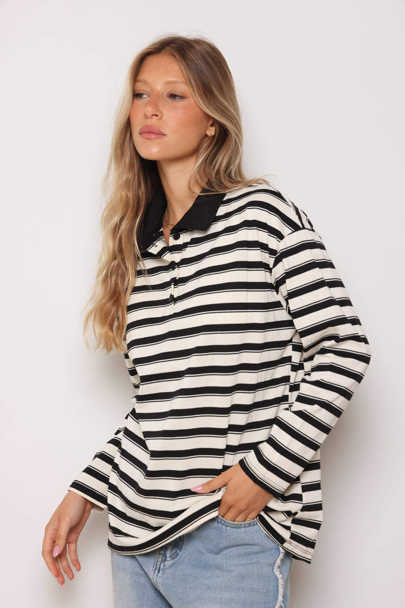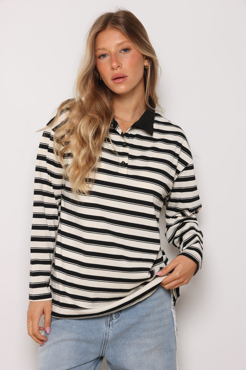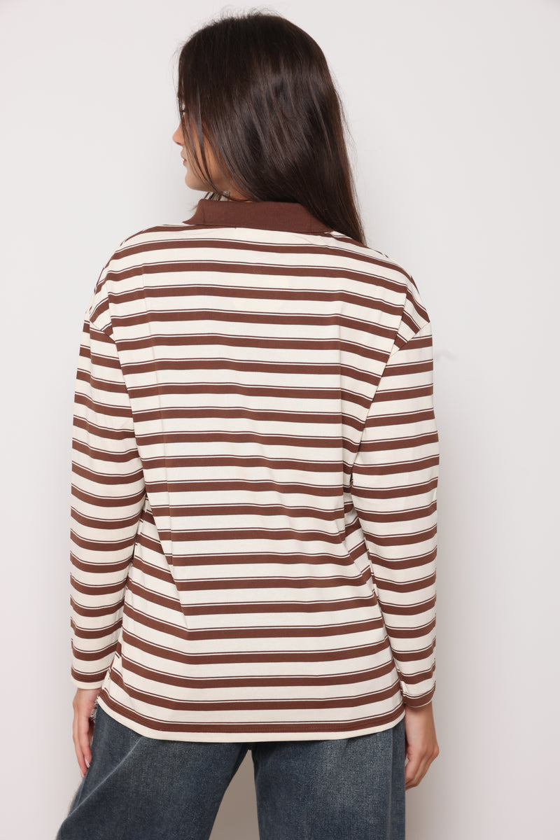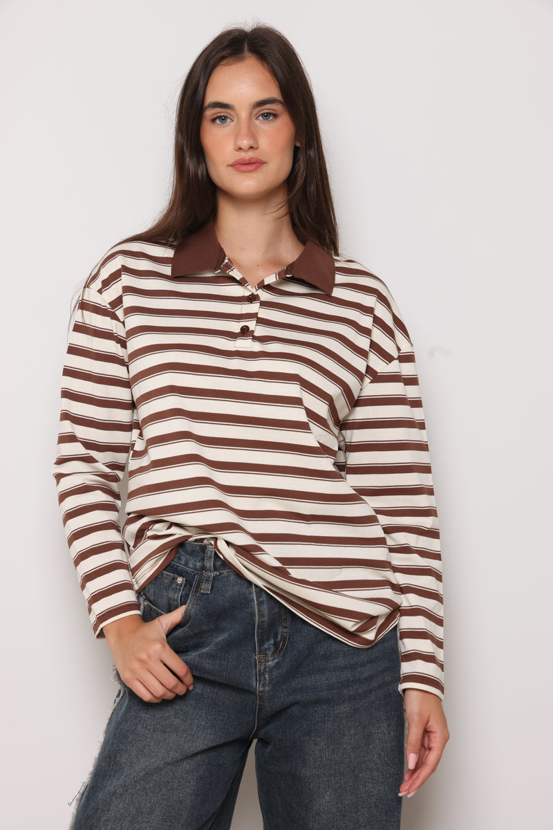חולצה בפרינט פסים מבד ויסקוזה עם צווארון פולו במגוון צבעים.