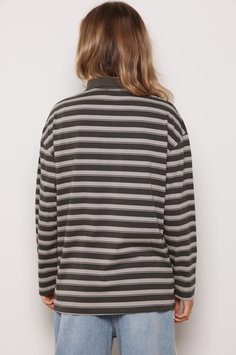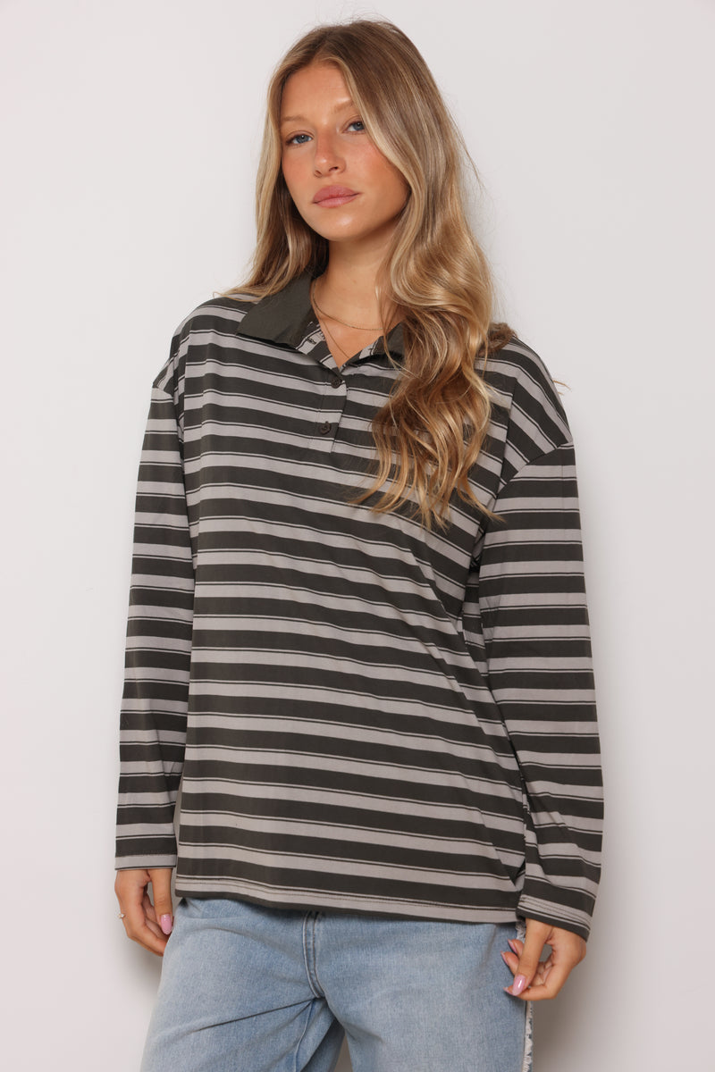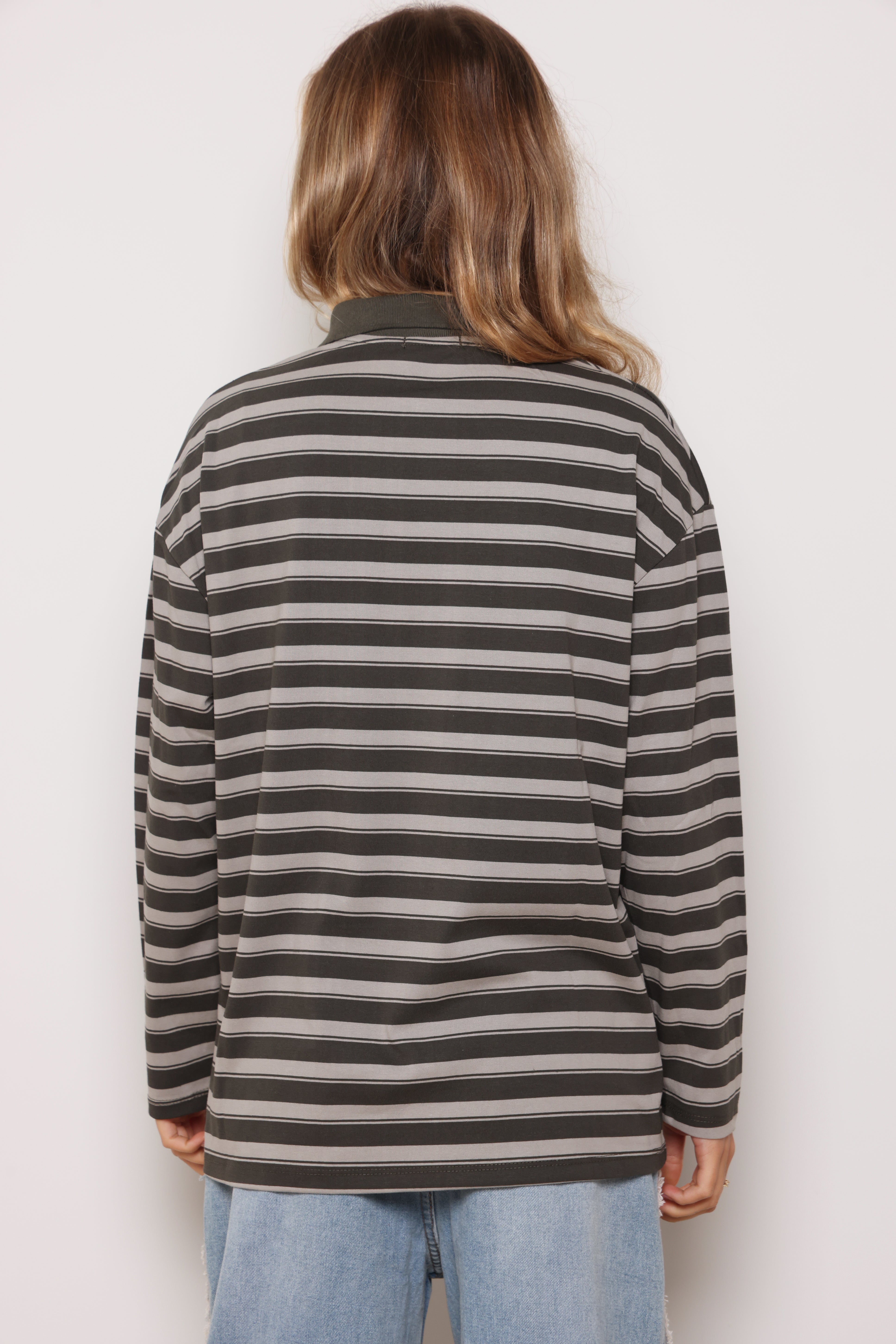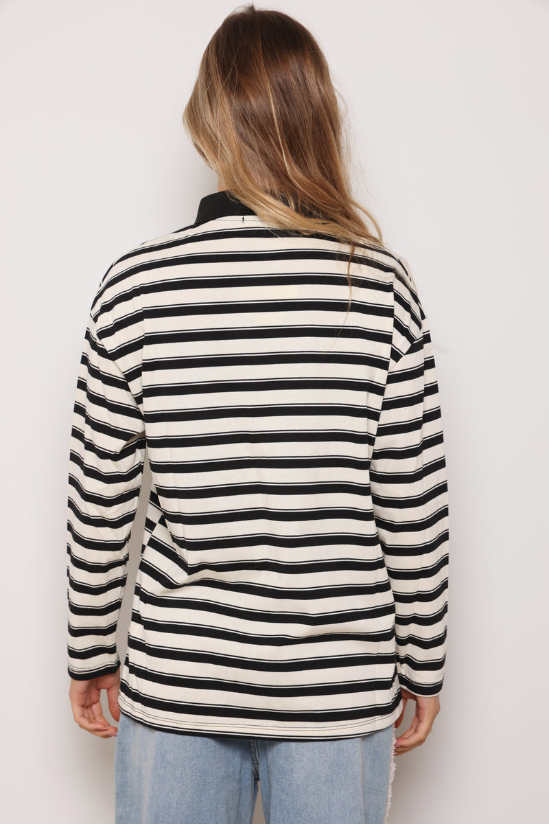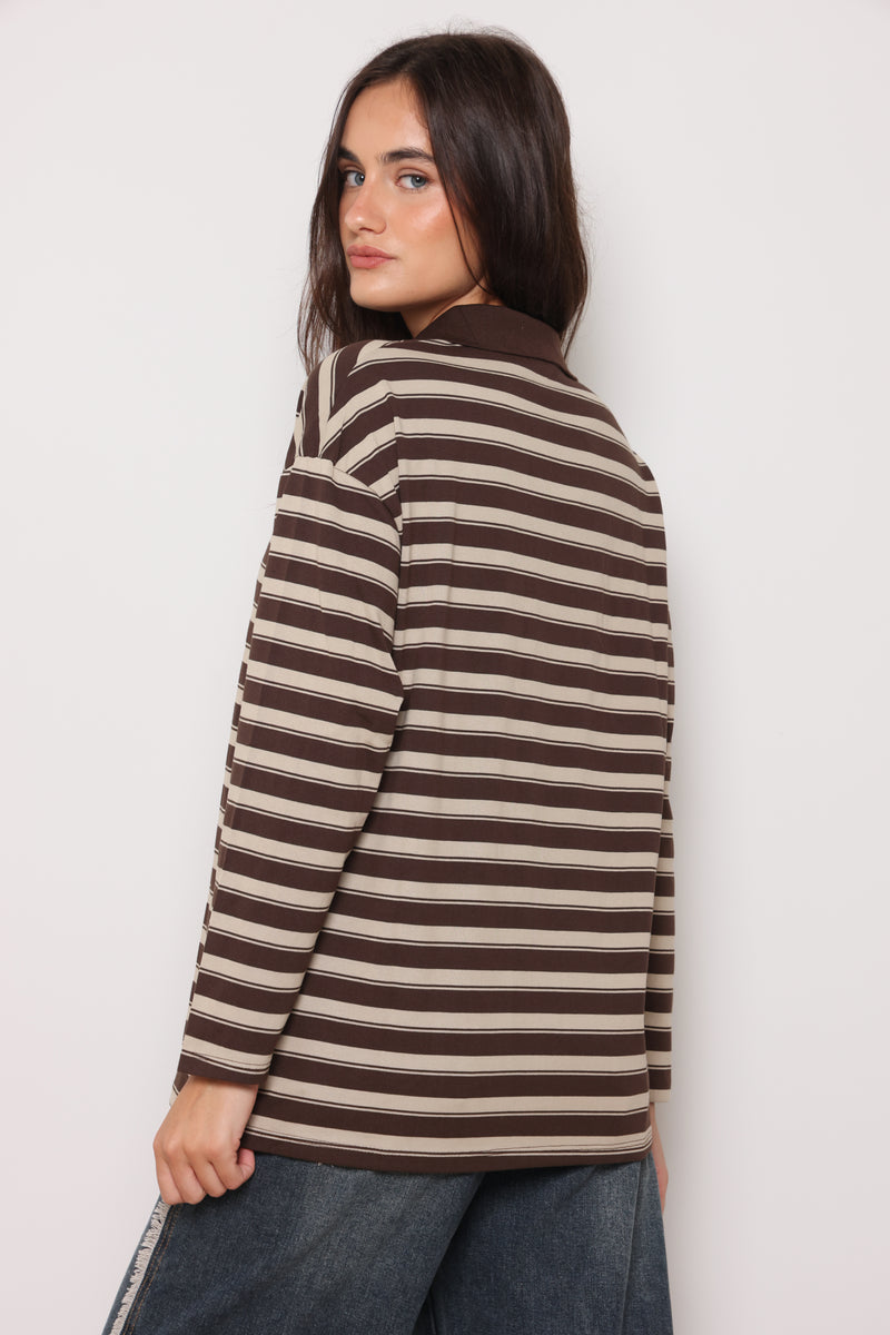 חולצה בפרינט פסים מבד ויסקוזה עם צווארון פולו במגוון צבעים.