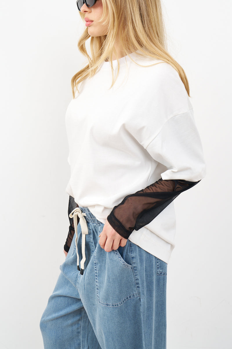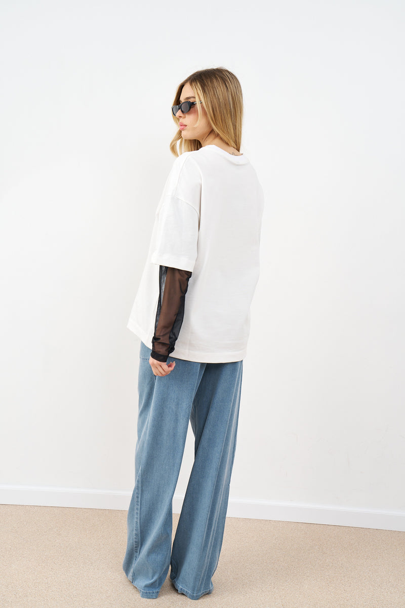חולצת אוברסייז שרוול שיפון לבן | שחור
