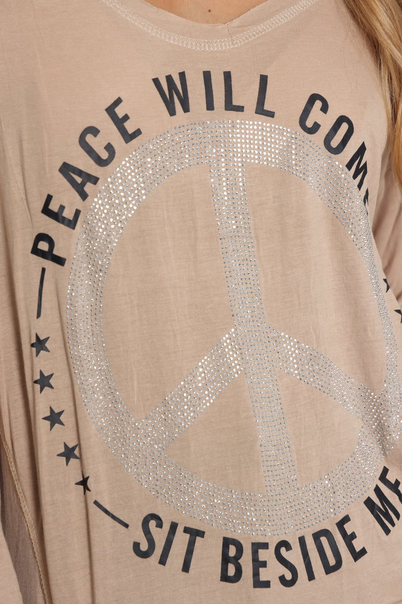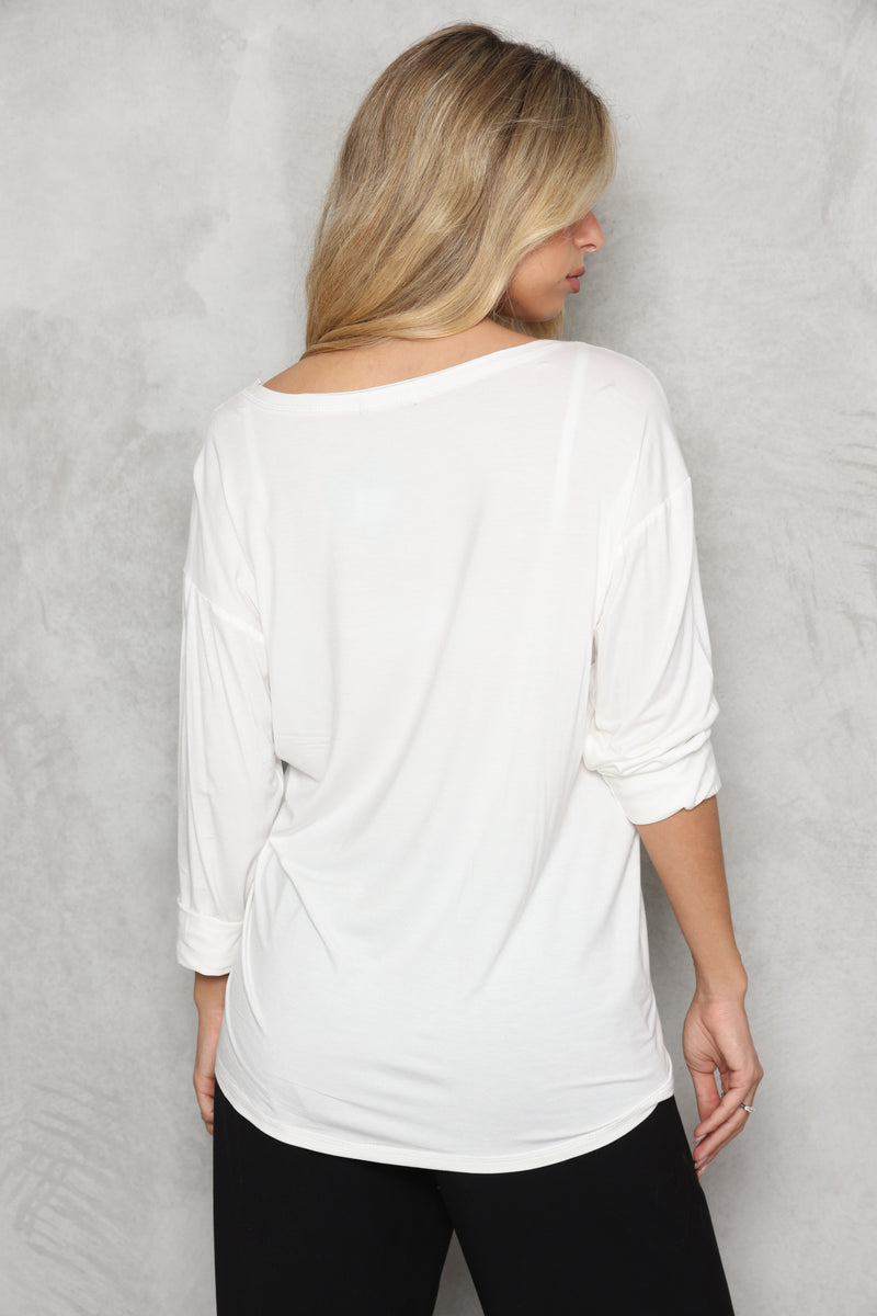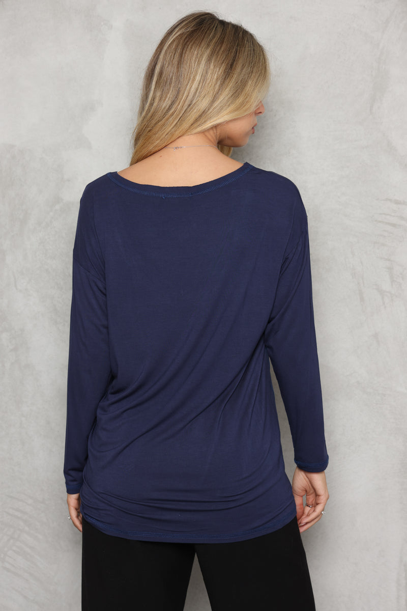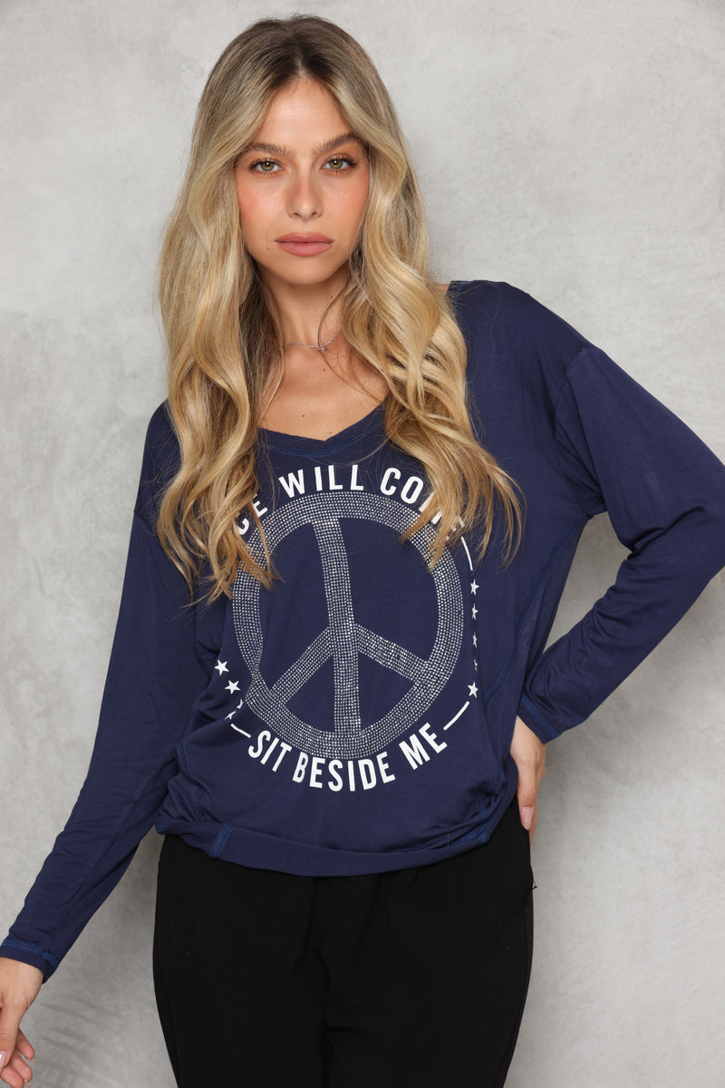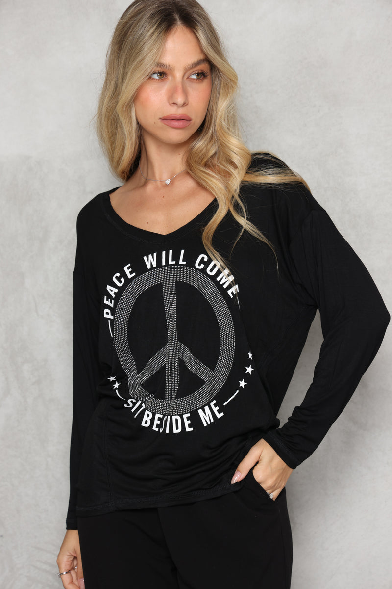 חולצת וי מבד סימפוניה במגע רך עם דפוס פיס.
