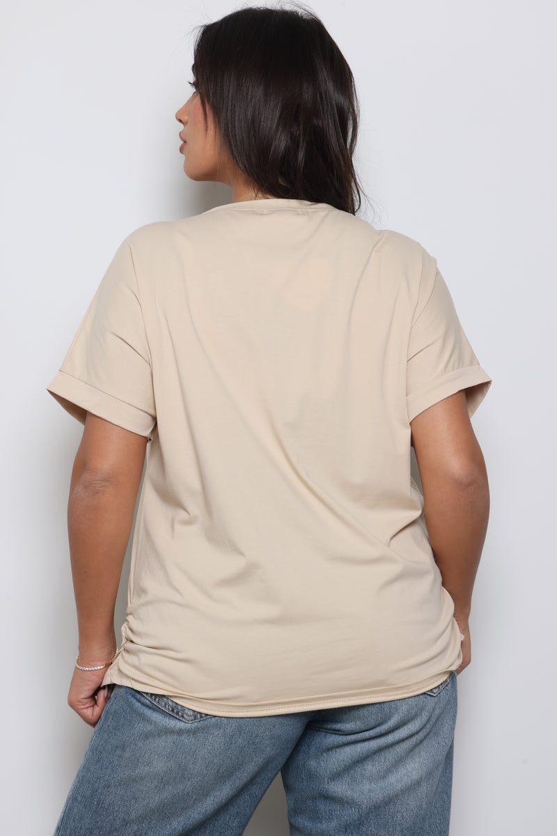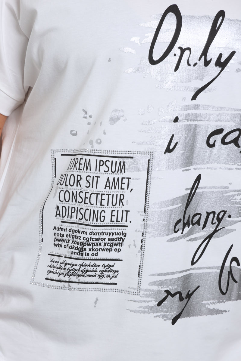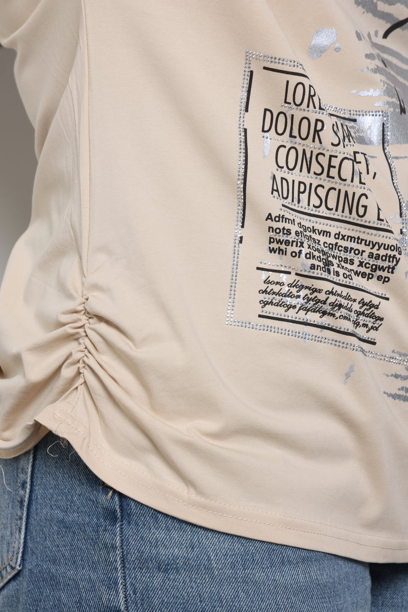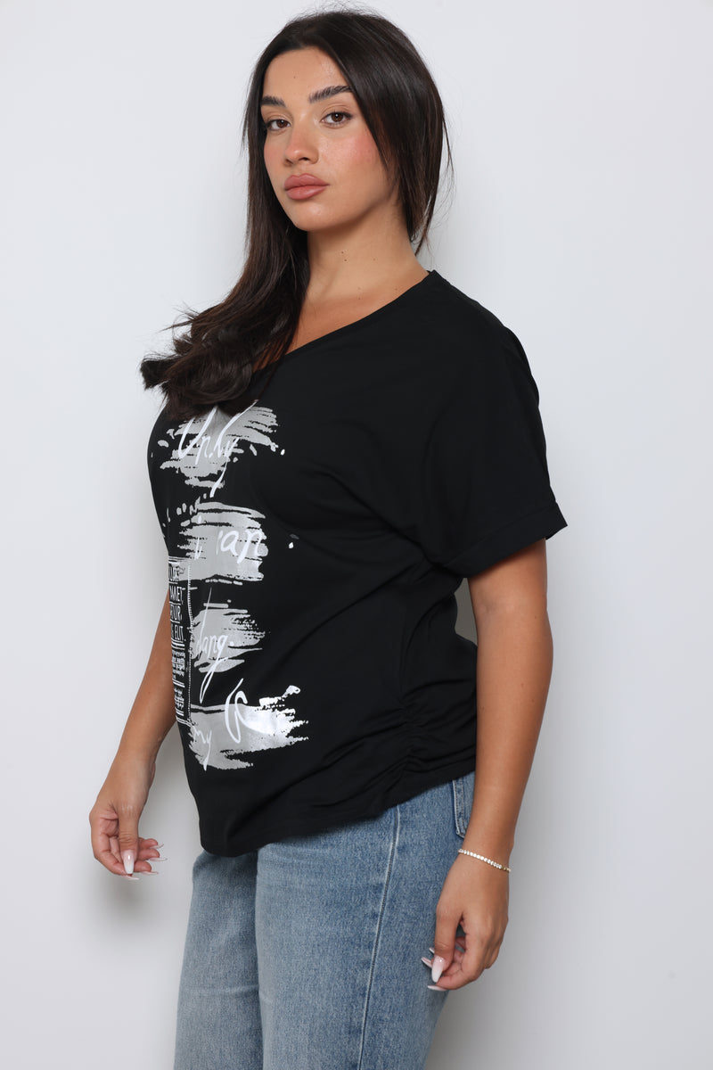 חולצת פלאס מבד כותנה לייקרה עם צווארון וי ודפוס קדמי.