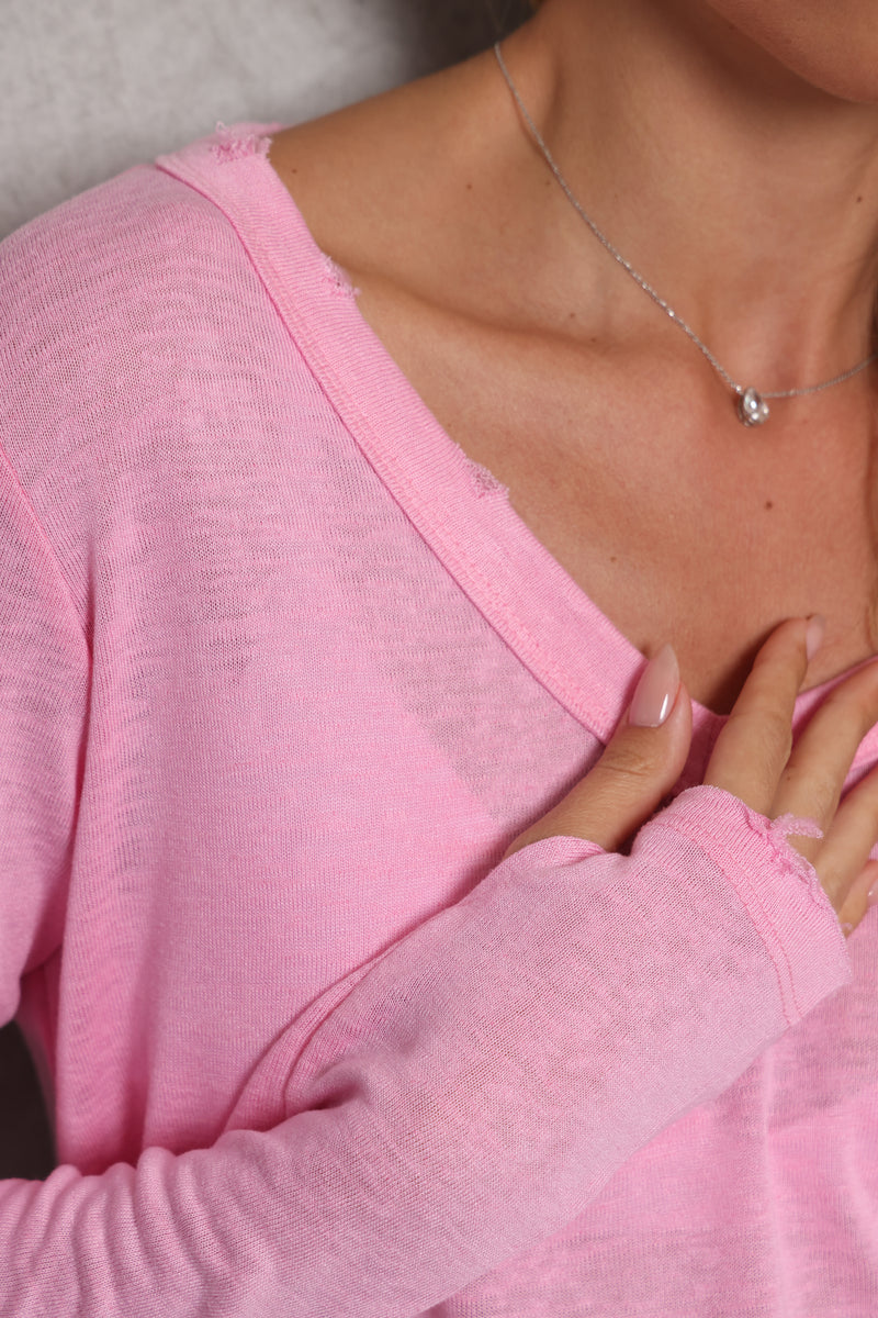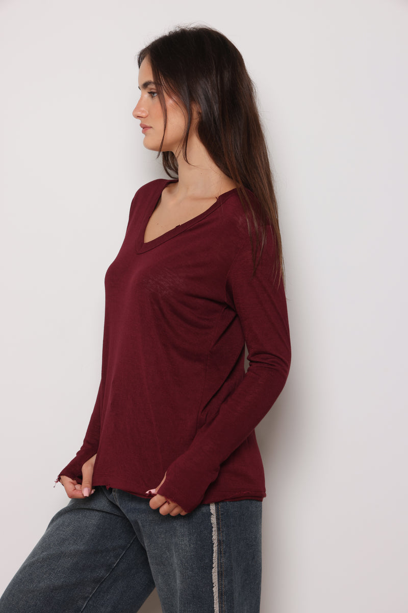 חולצת וי סלאב קרעים כפפה