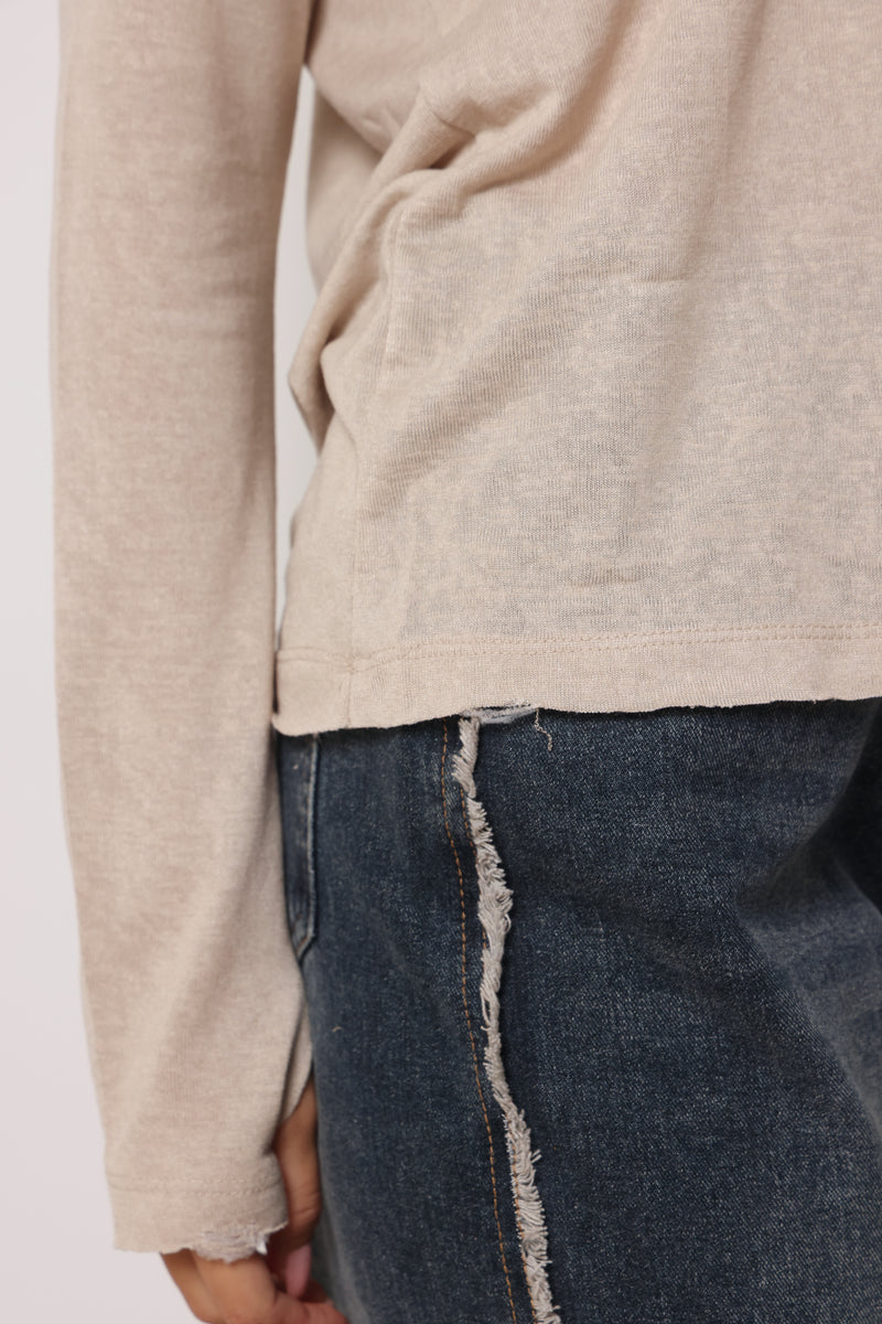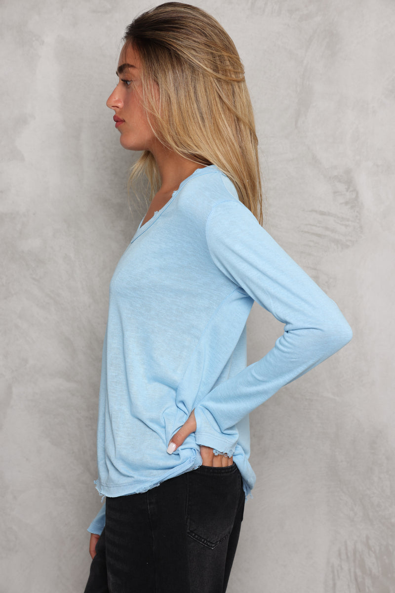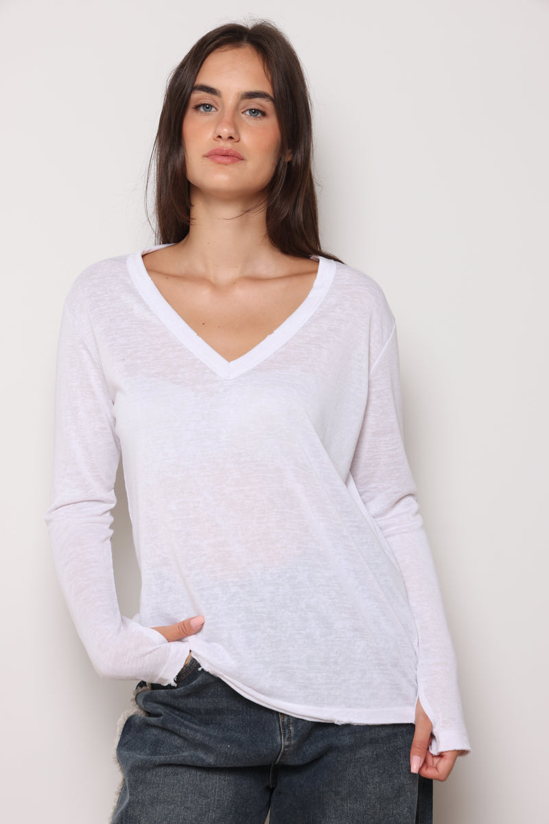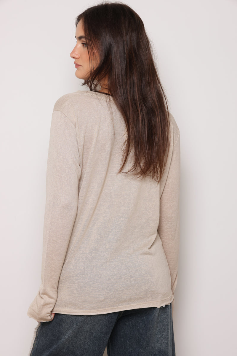 חולצת בייסיק מבד פשתן סלאב בעלת צווארון וי וקרעים,שרוולים ארוכים שמקפיצים את הפיס לשיא הסטייל והשיק !