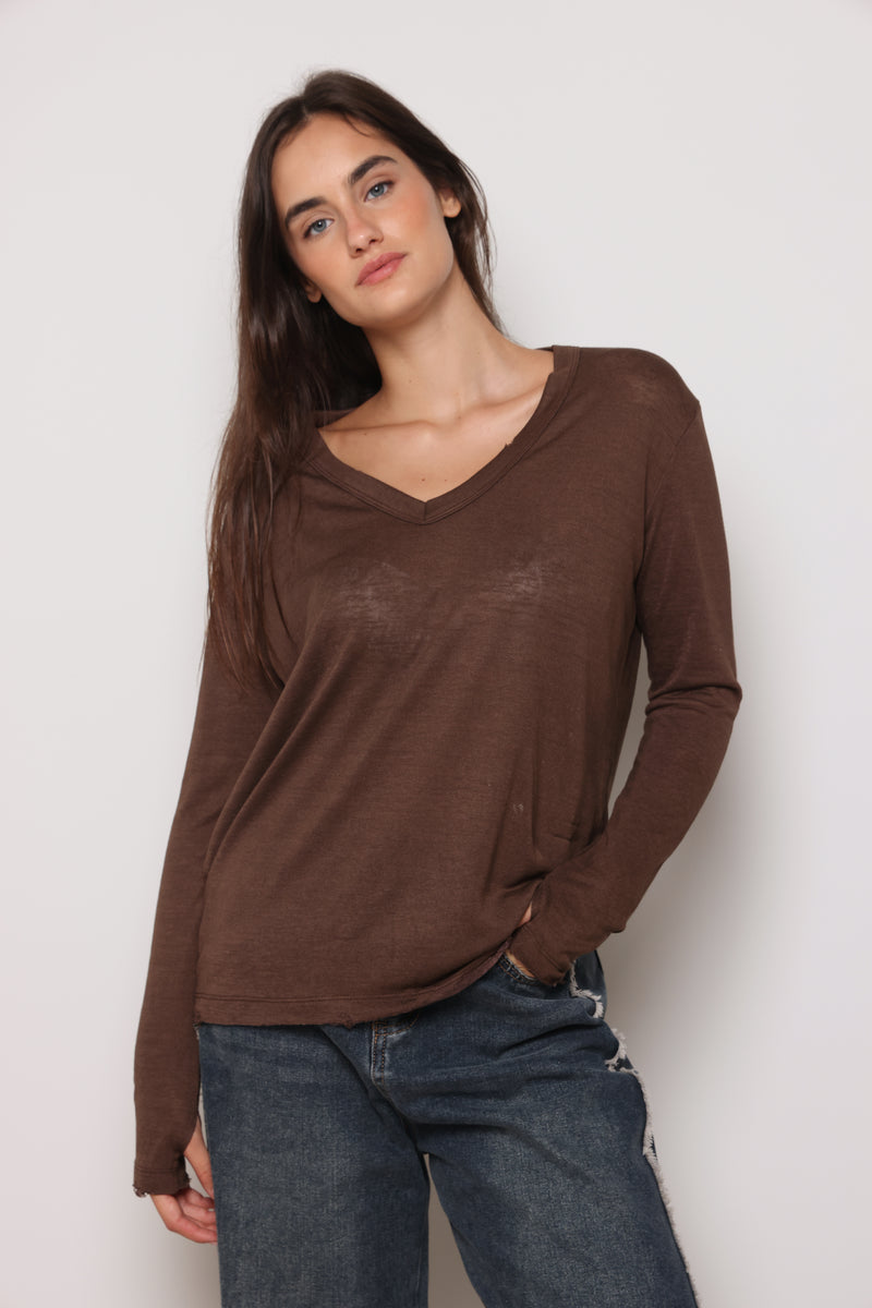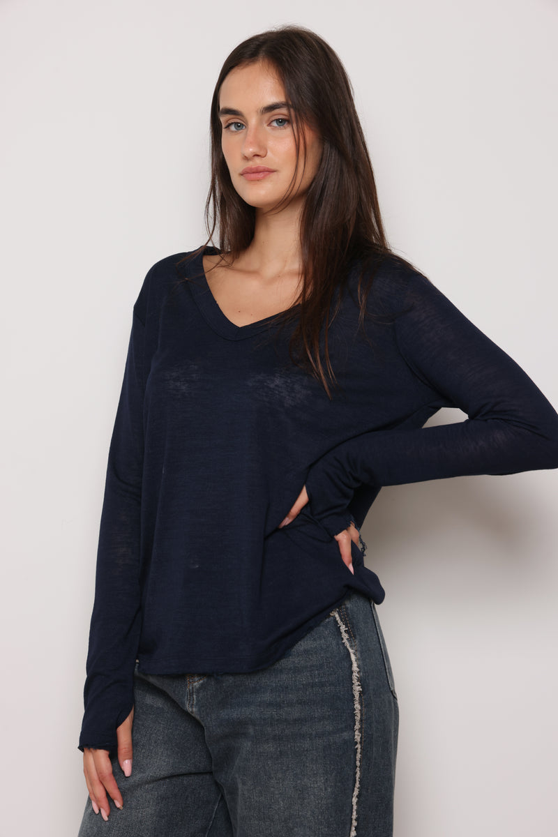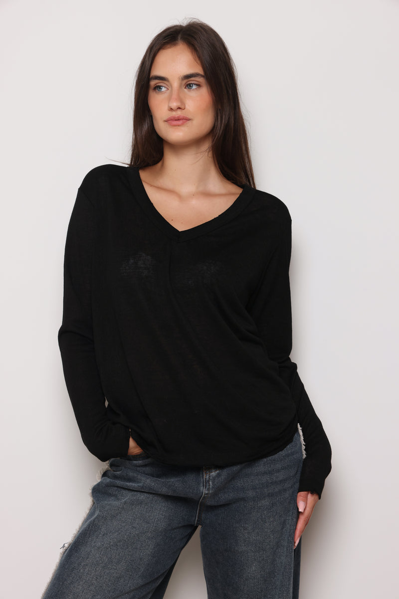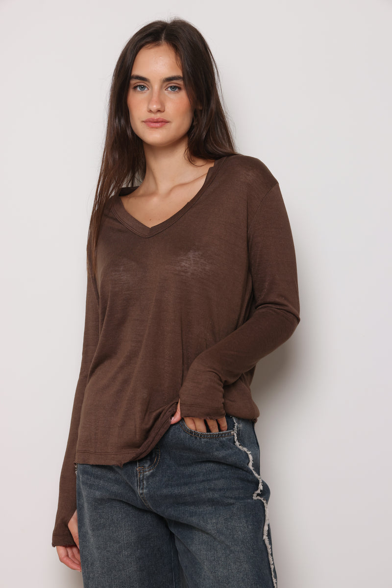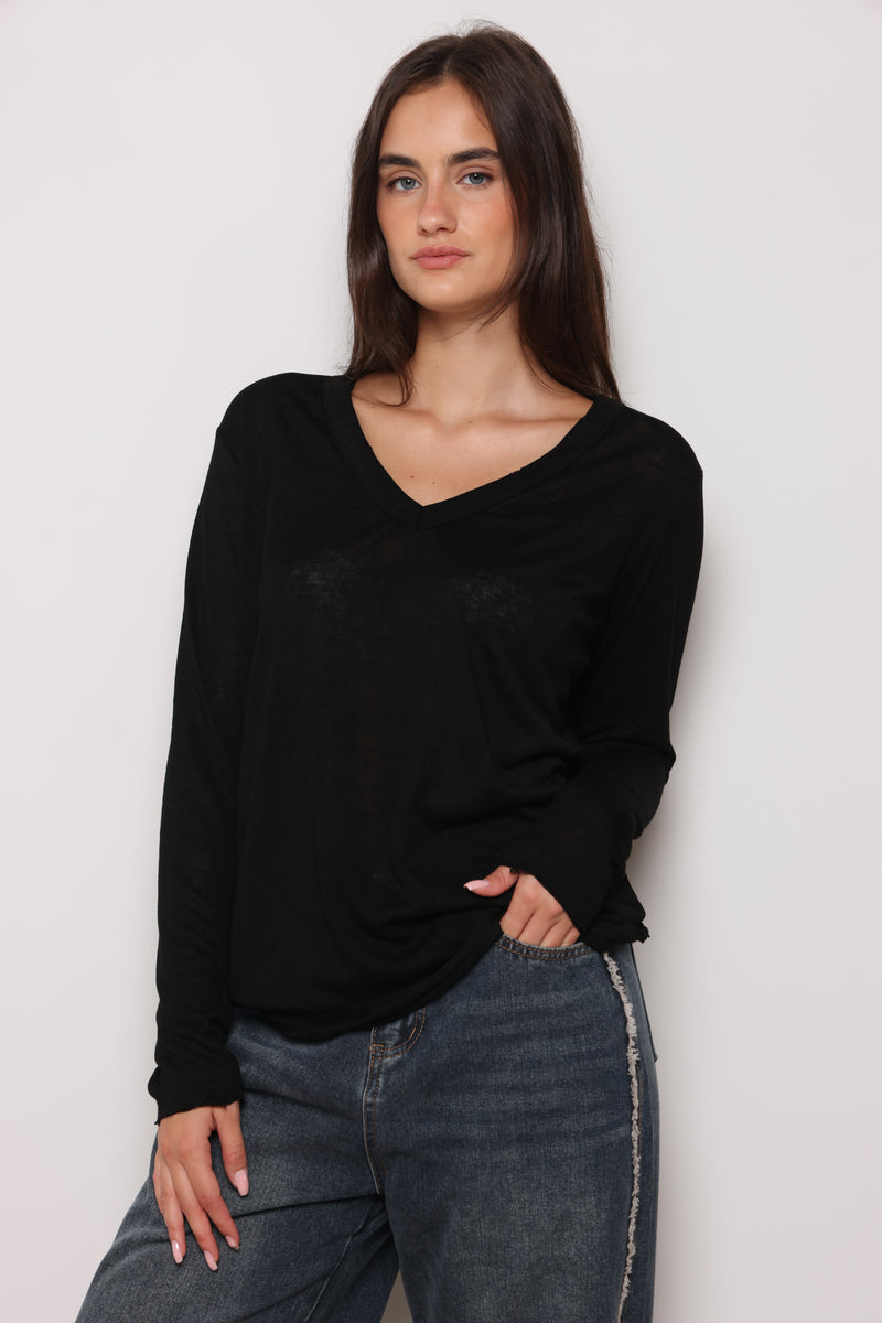 חולצת בייסיק מבד פשתן סלאב בעלת צווארון וי וקרעים,שרוולים ארוכים שמקפיצים את הפיס לשיא הסטייל והשיק !