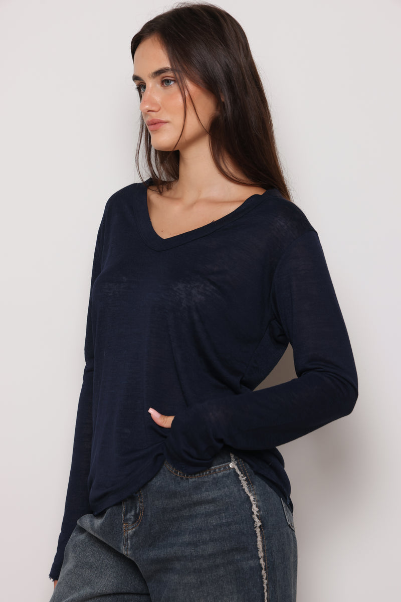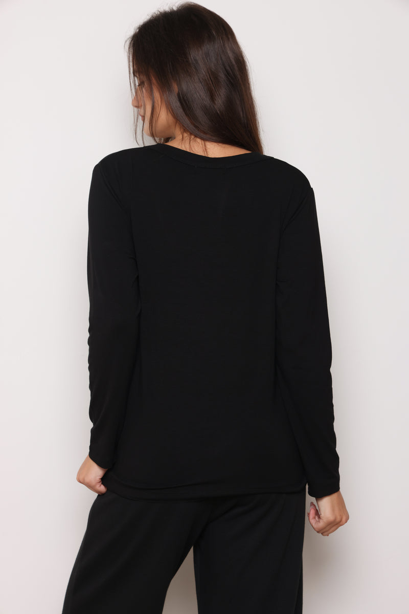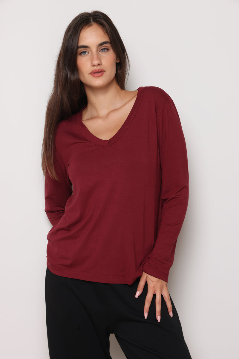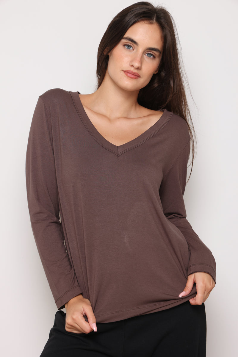 חולצת בייסיק מבד סימפוניה כותנה במגע רך בגזרה ישרה עם צווארון וי עבה.