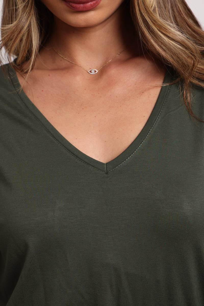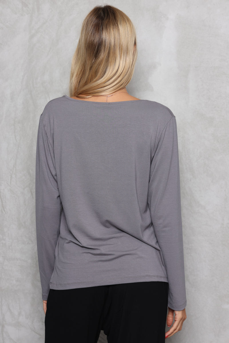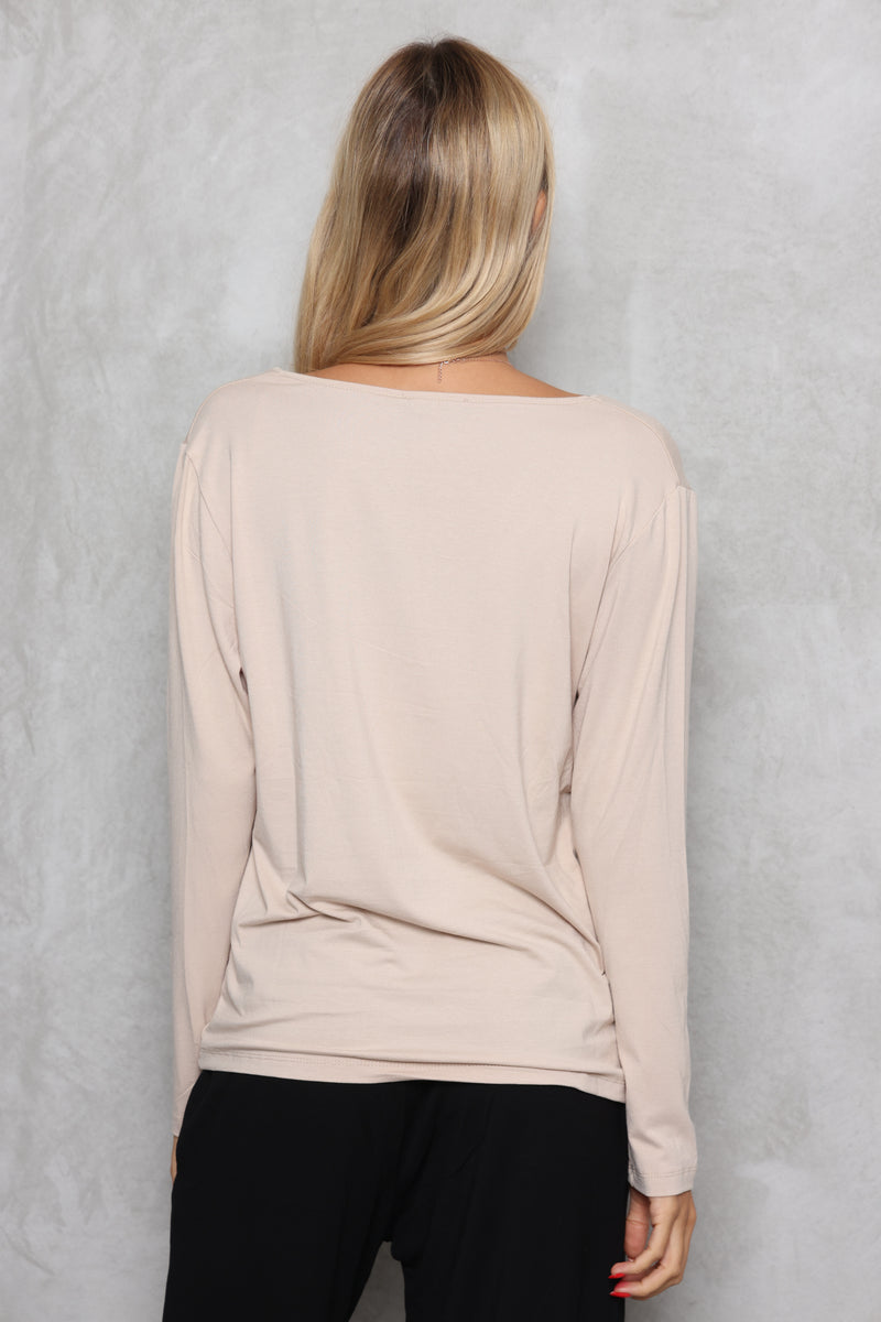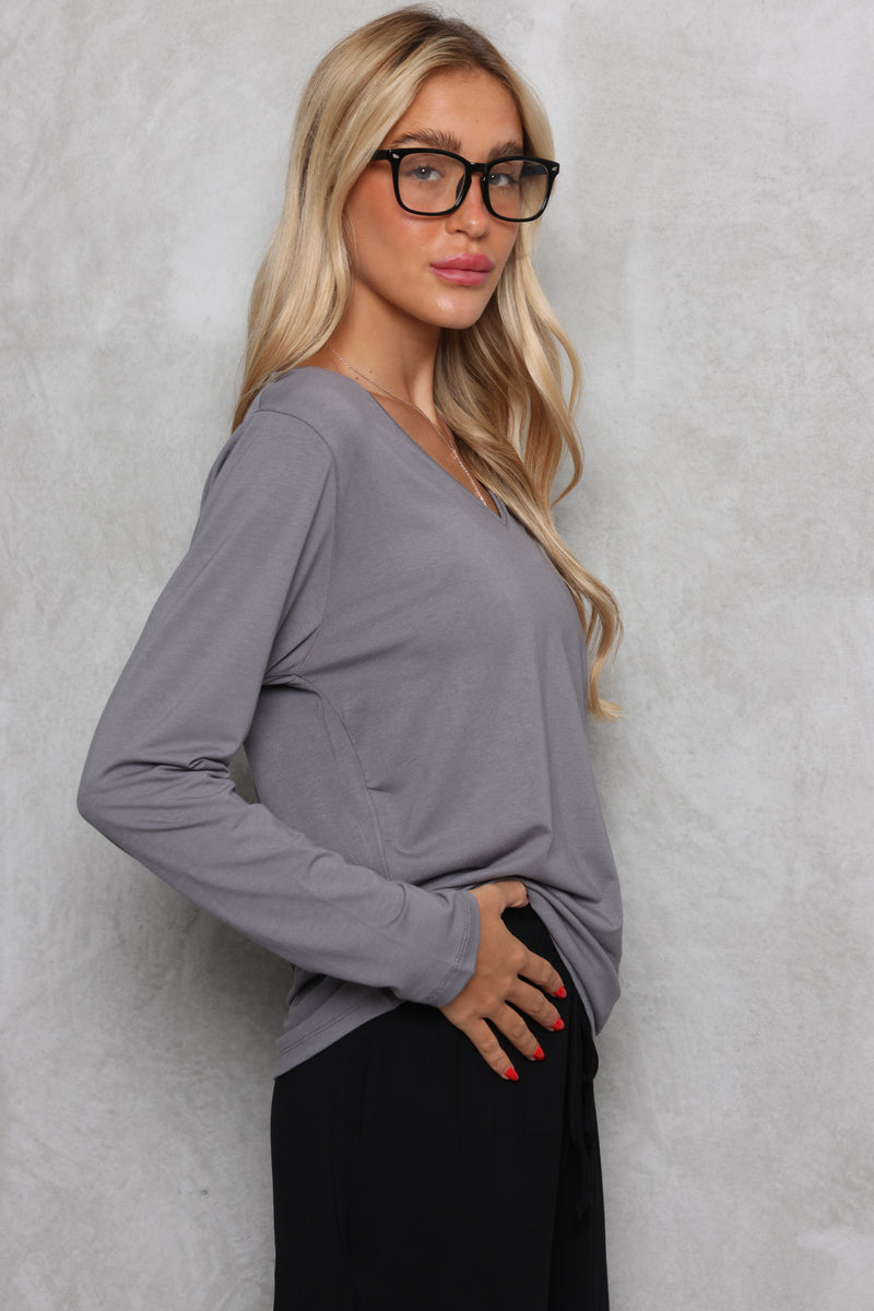 הבייסיק הכי מאסט שכל אישה צריכה בארון ! טי-שירט מבד סימפוניה עם שרוולים ארוכים וצווארון וי.