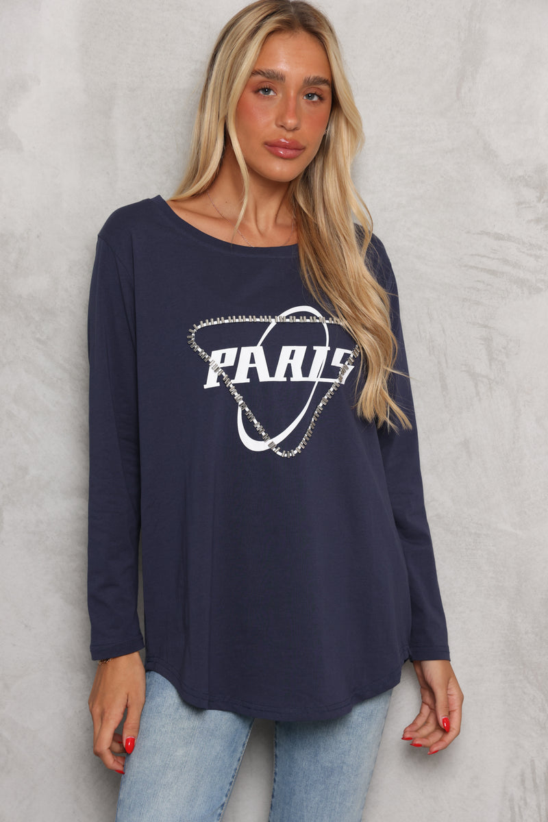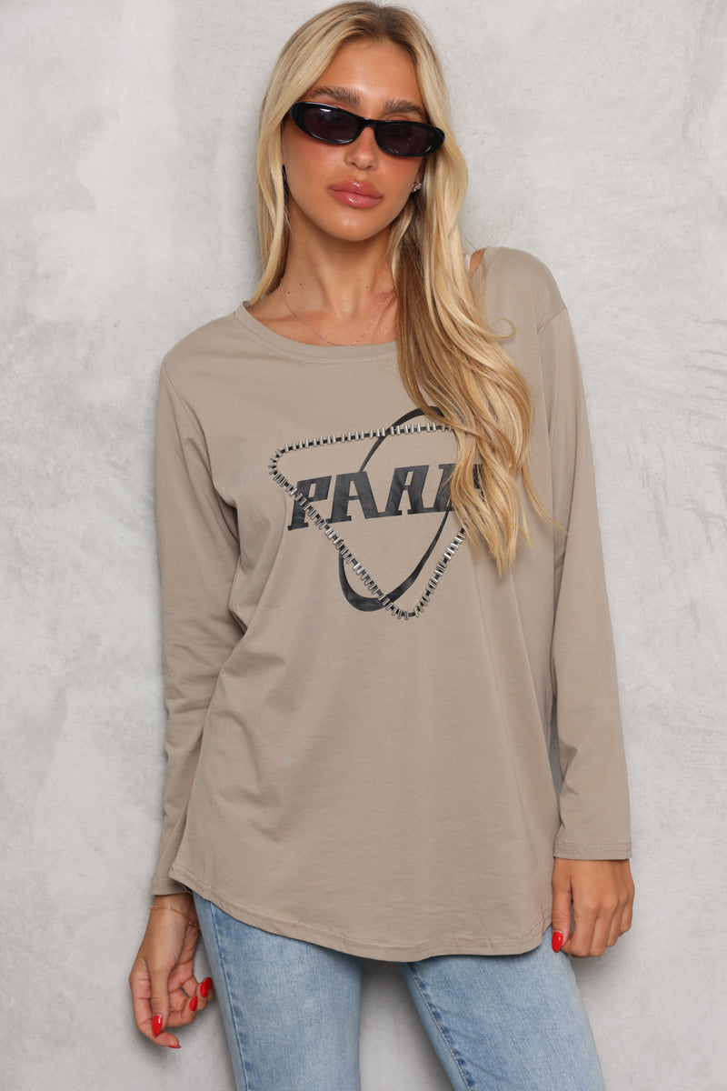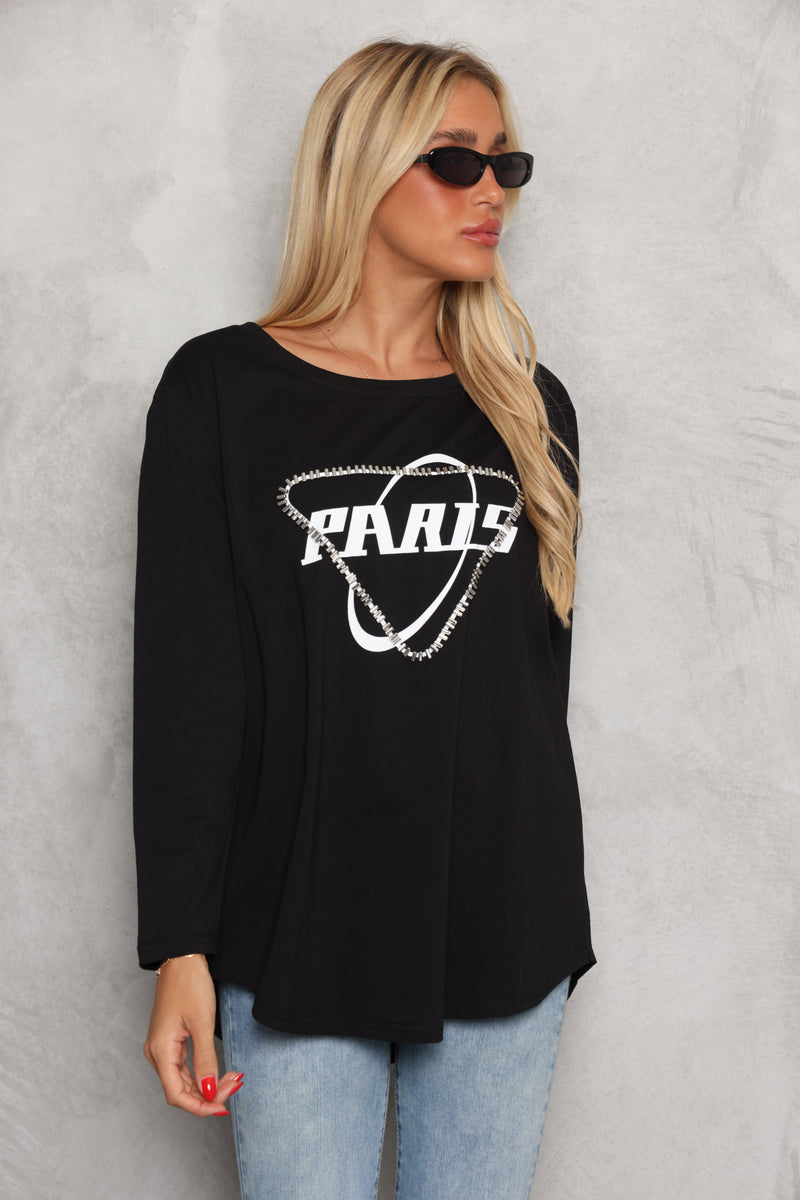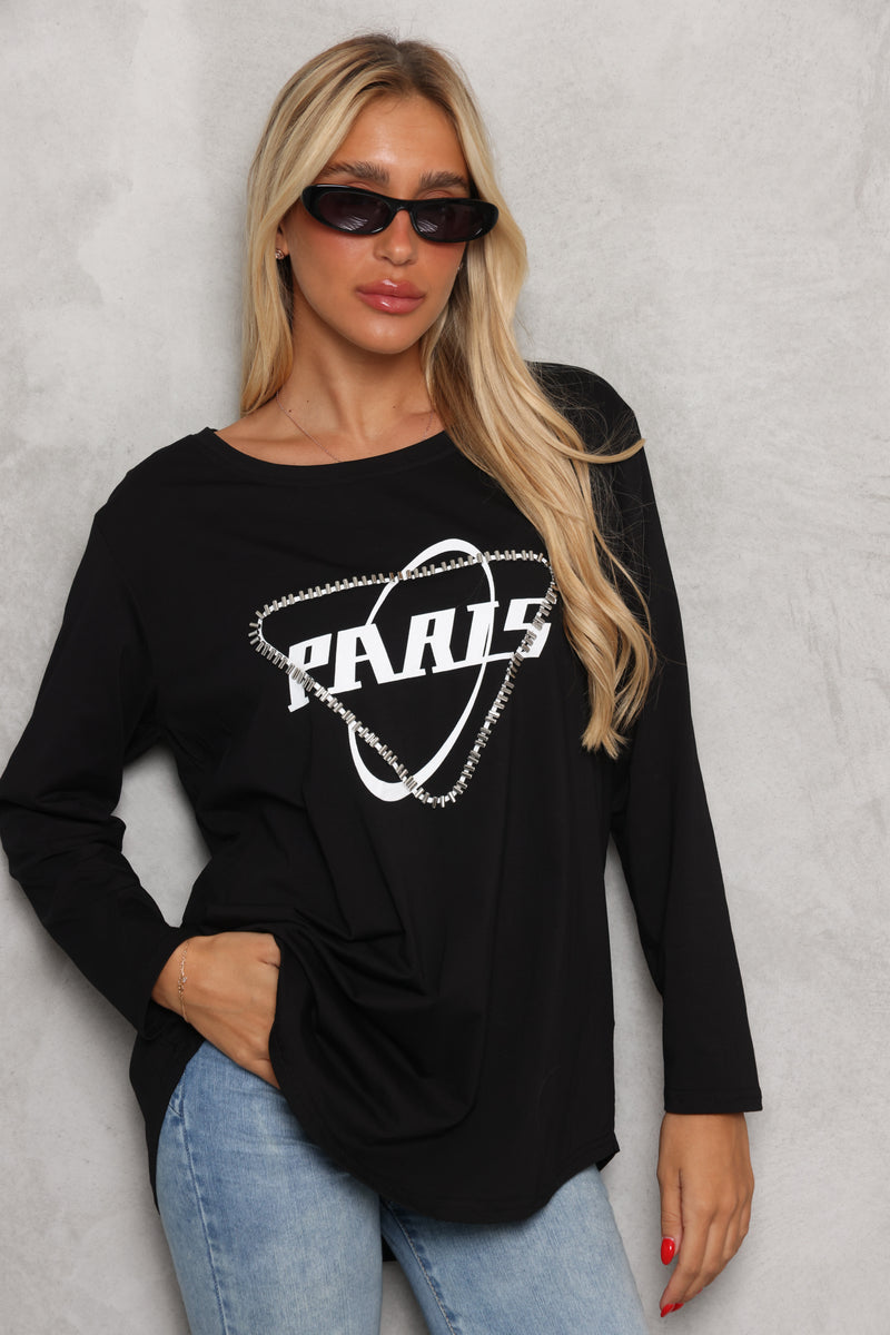 טוניקת פלאס סייז עם צווארון עגול שרוולים ארוכים ודפוס פריז.