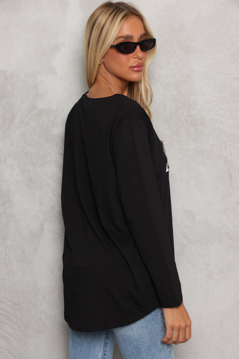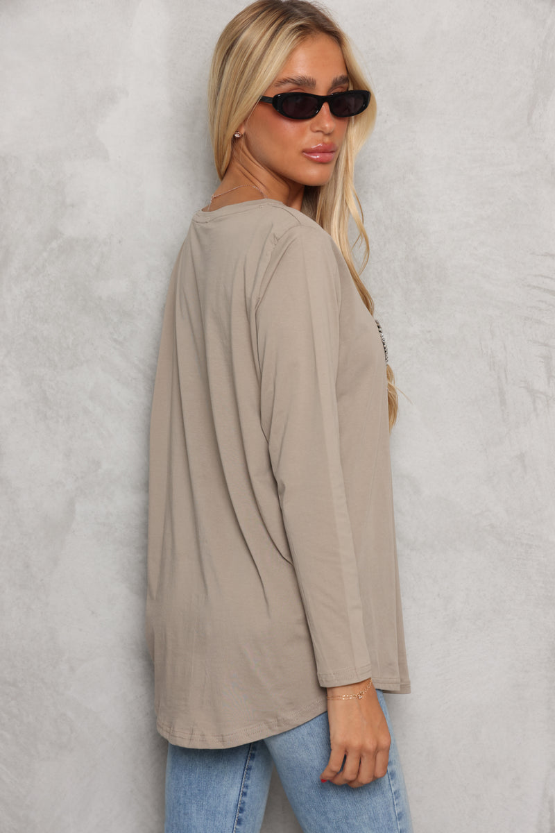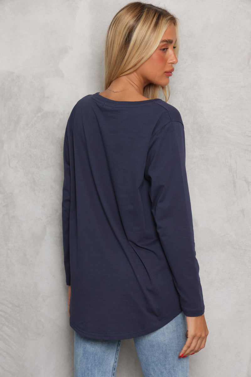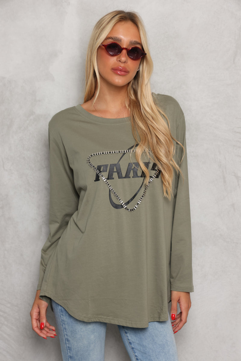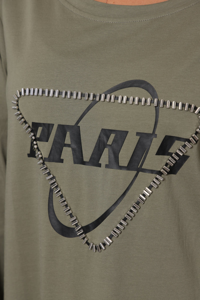 טוניקת פלאס סייז עם צווארון עגול שרוולים ארוכים ודפוס פריז.