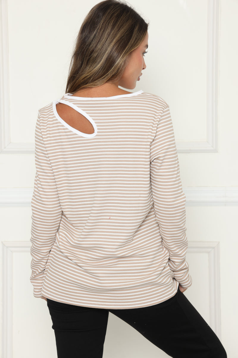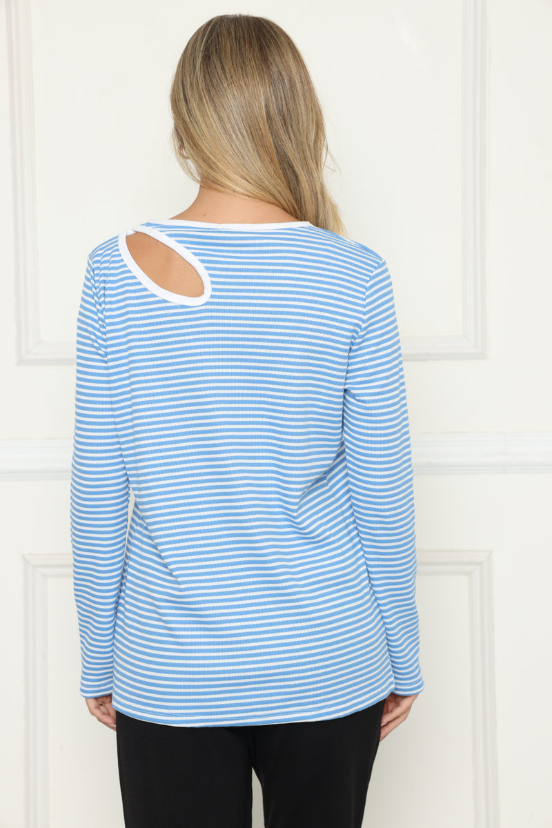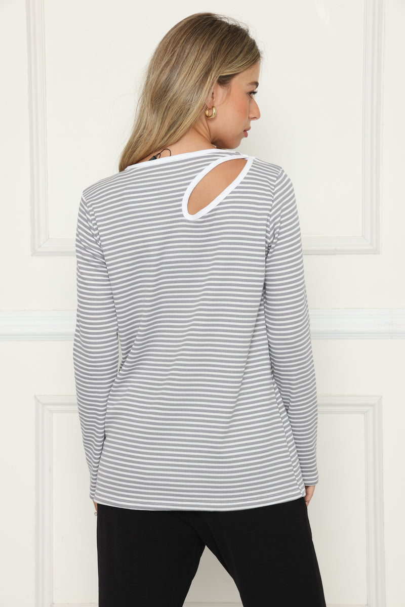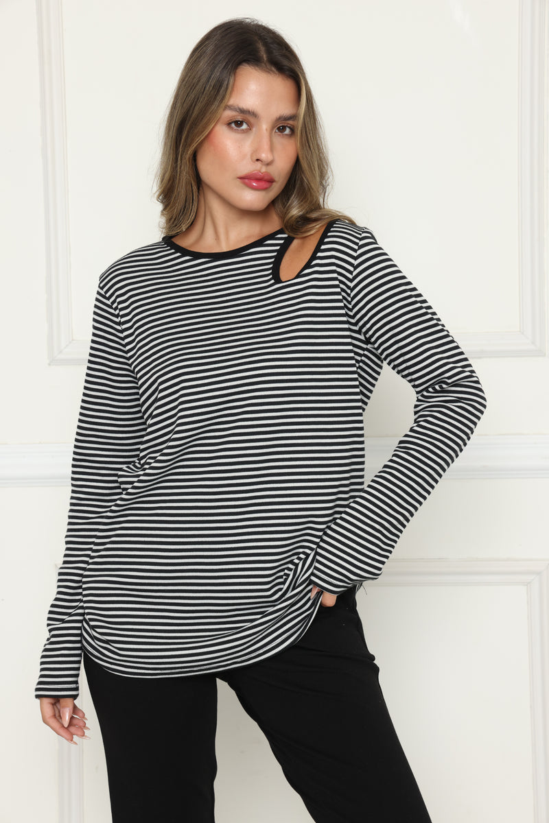 חולצת פסים מבד כותנה ריב עם פתח בכתף.