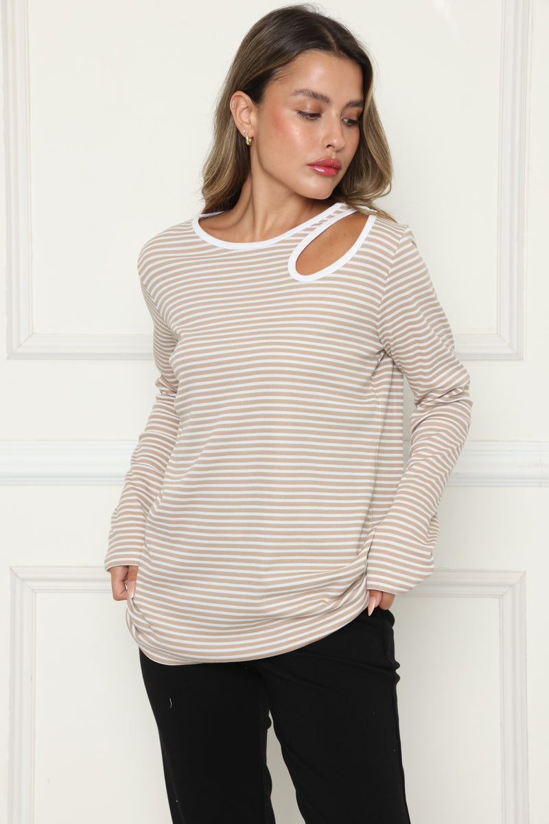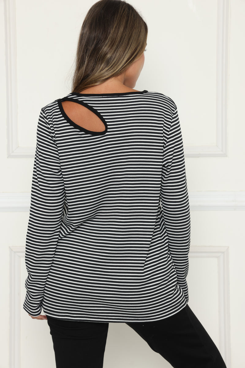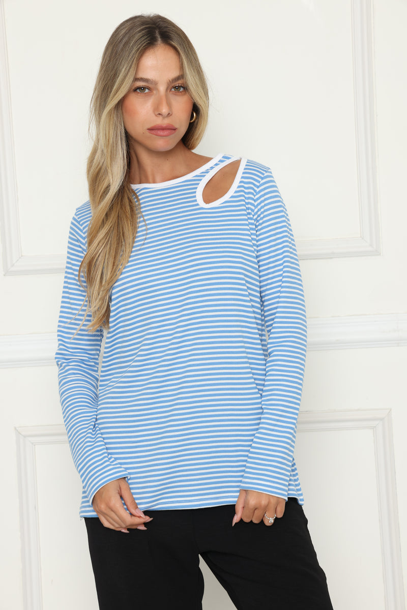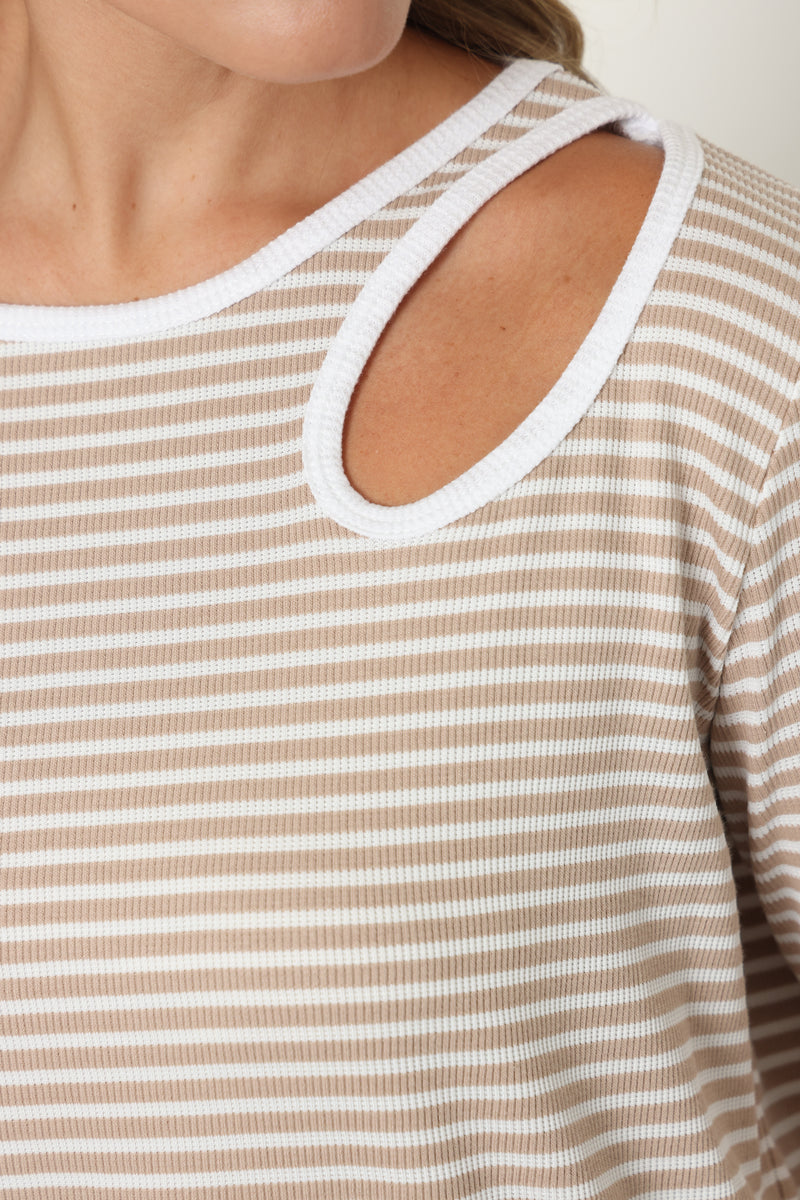 חולצת פסים מבד כותנה ריב עם פתח בכתף.