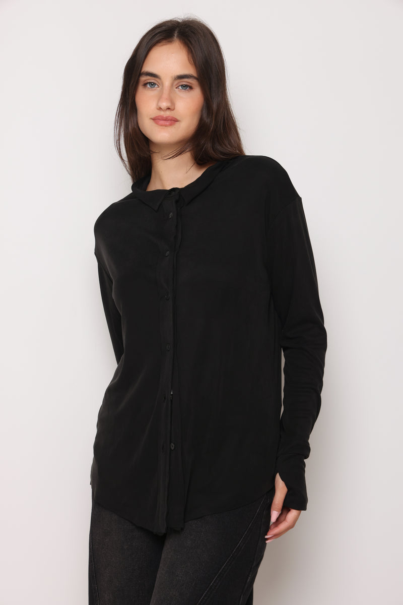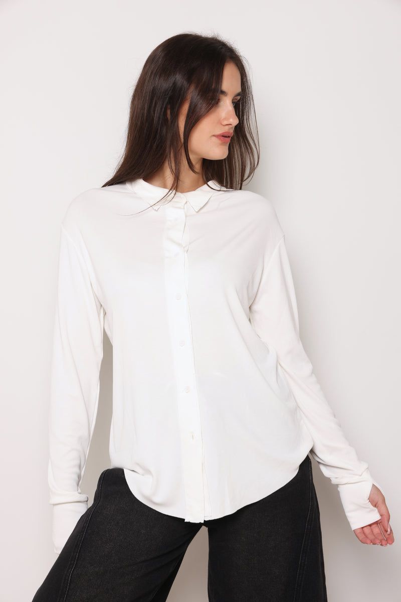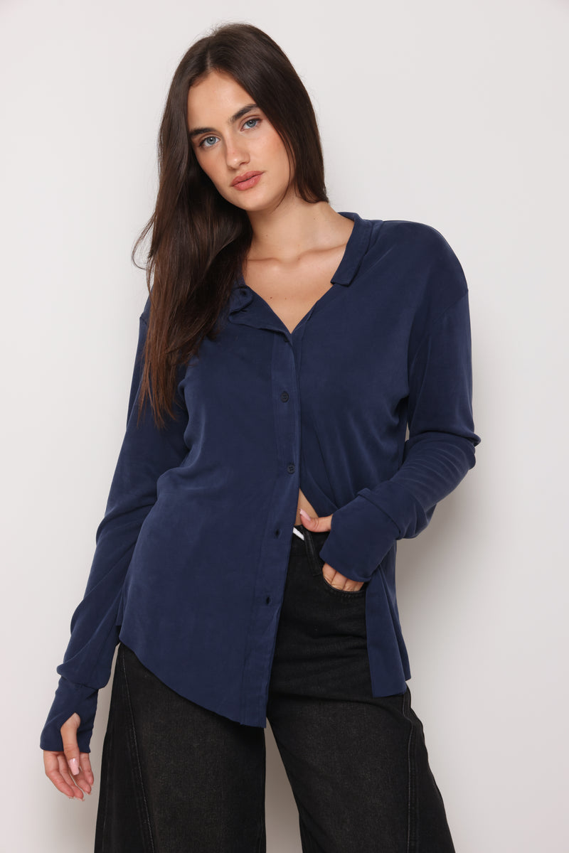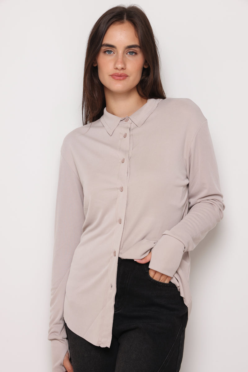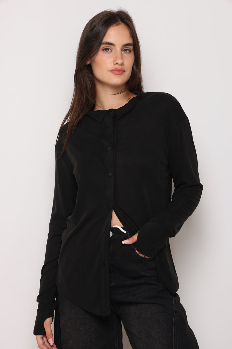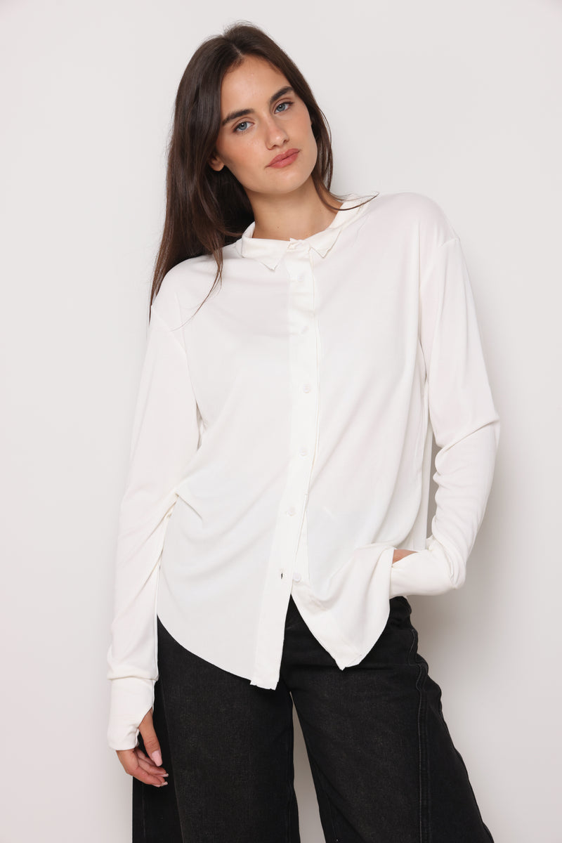 חולצה מכופתרת בגזרה קלאסית מבד קופרו עם חור באגודל .