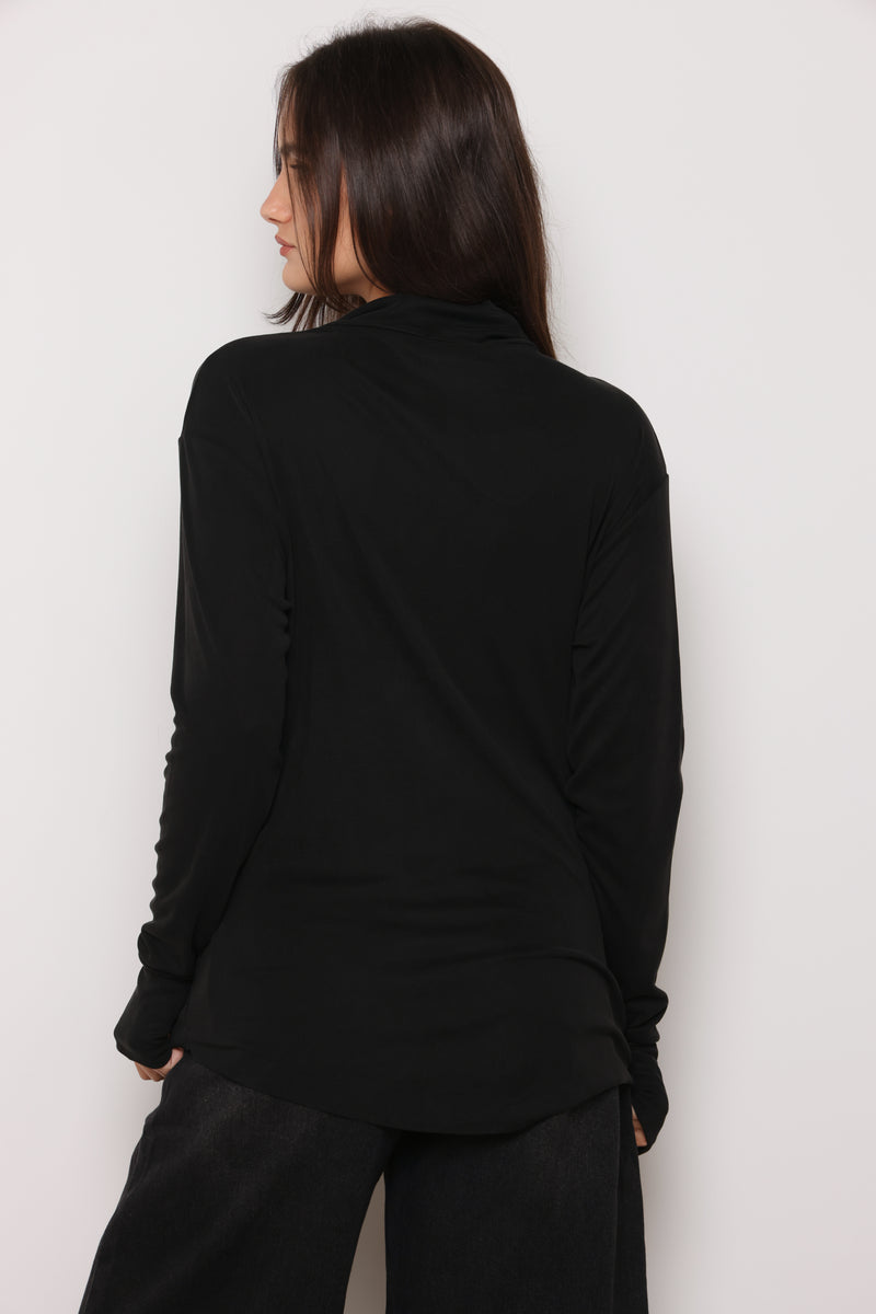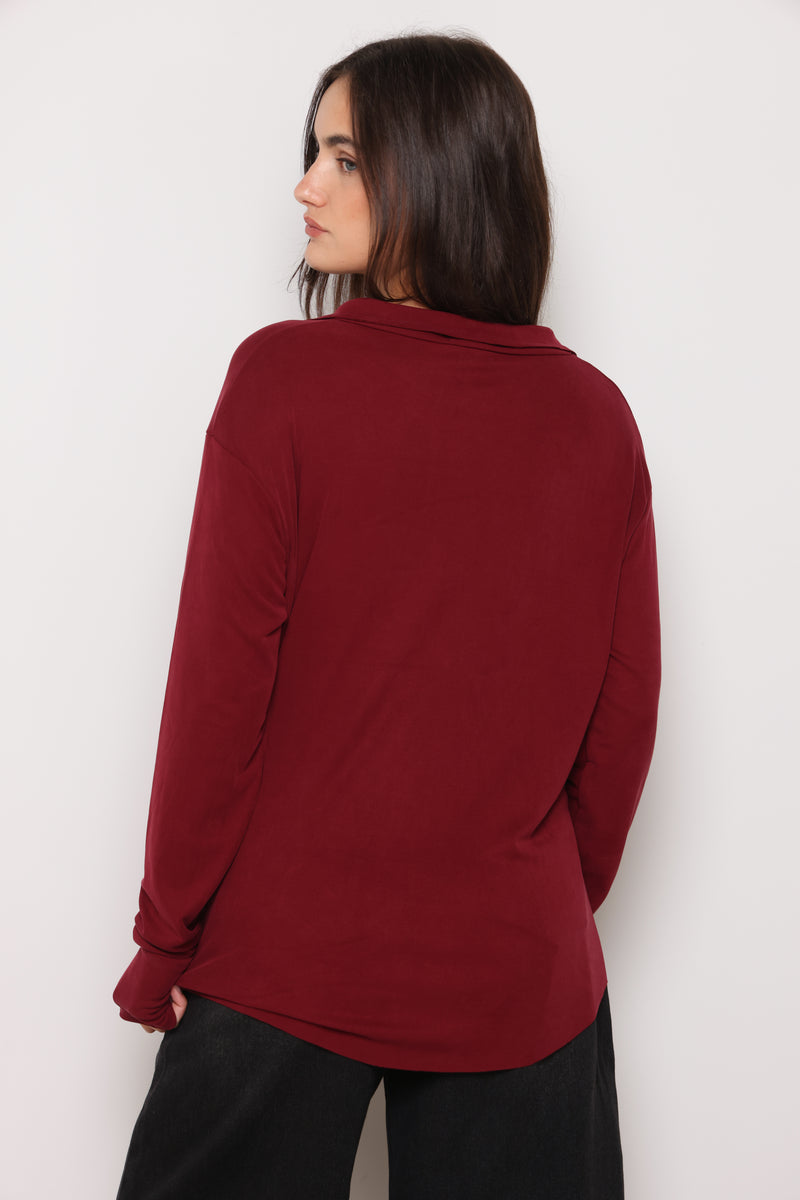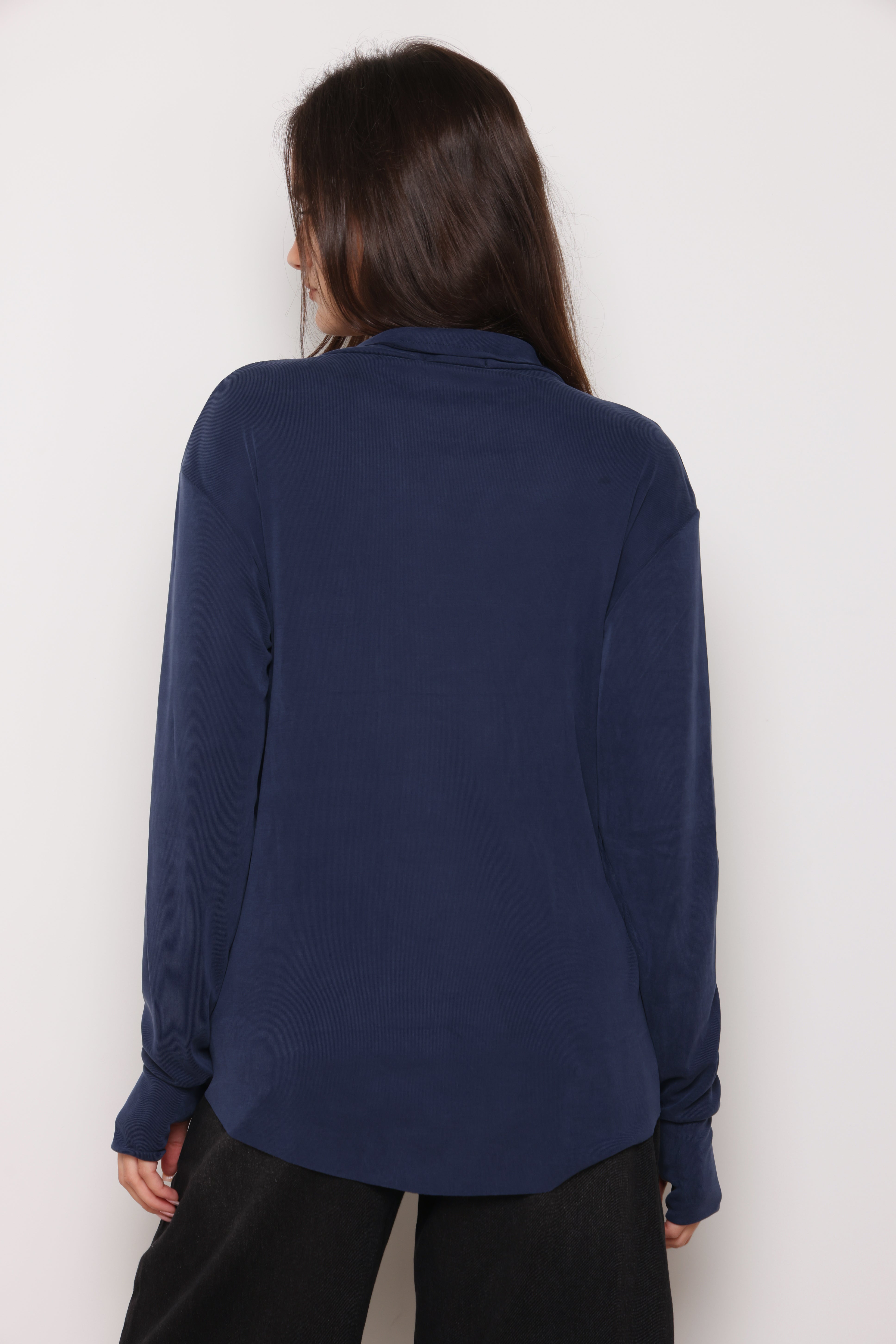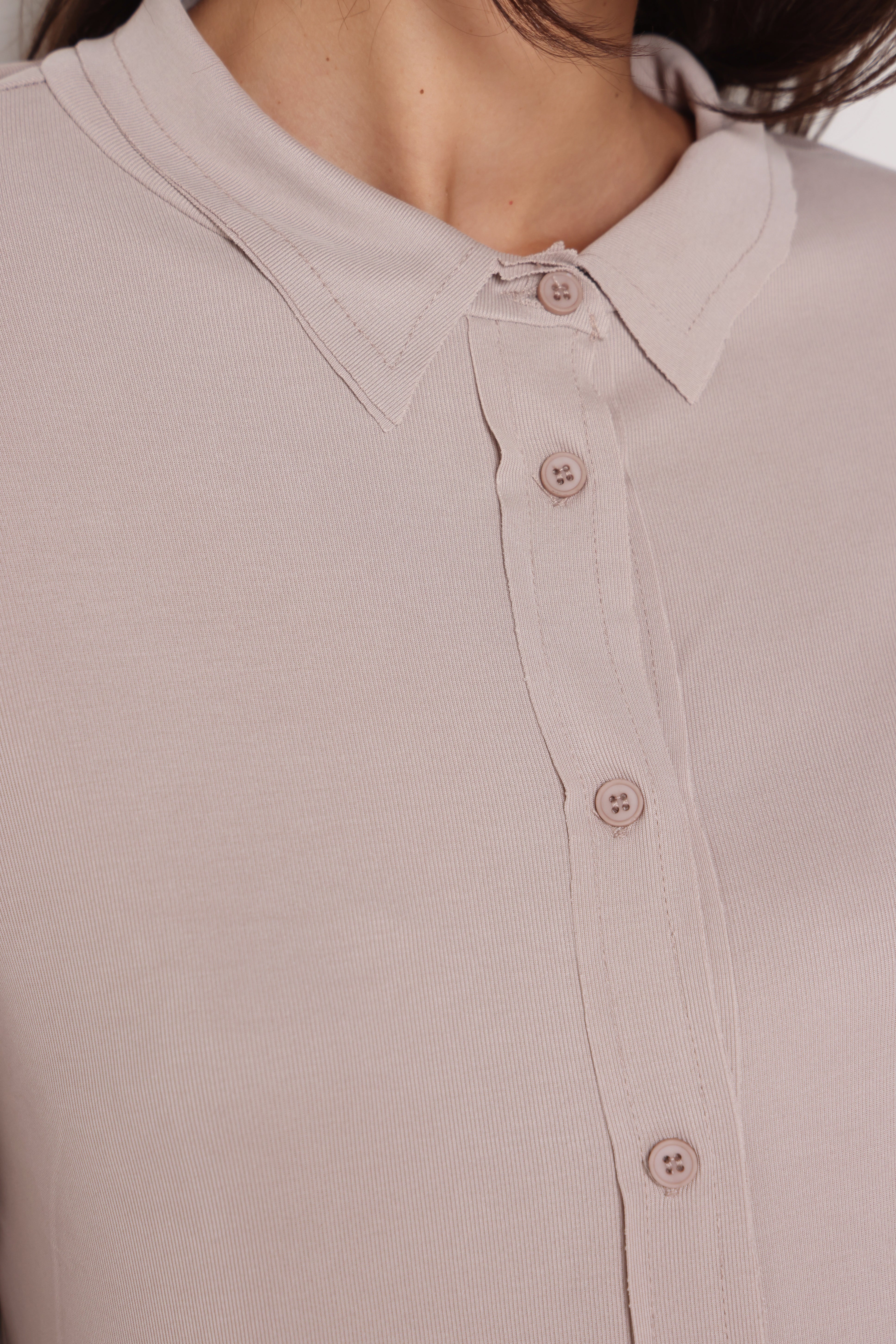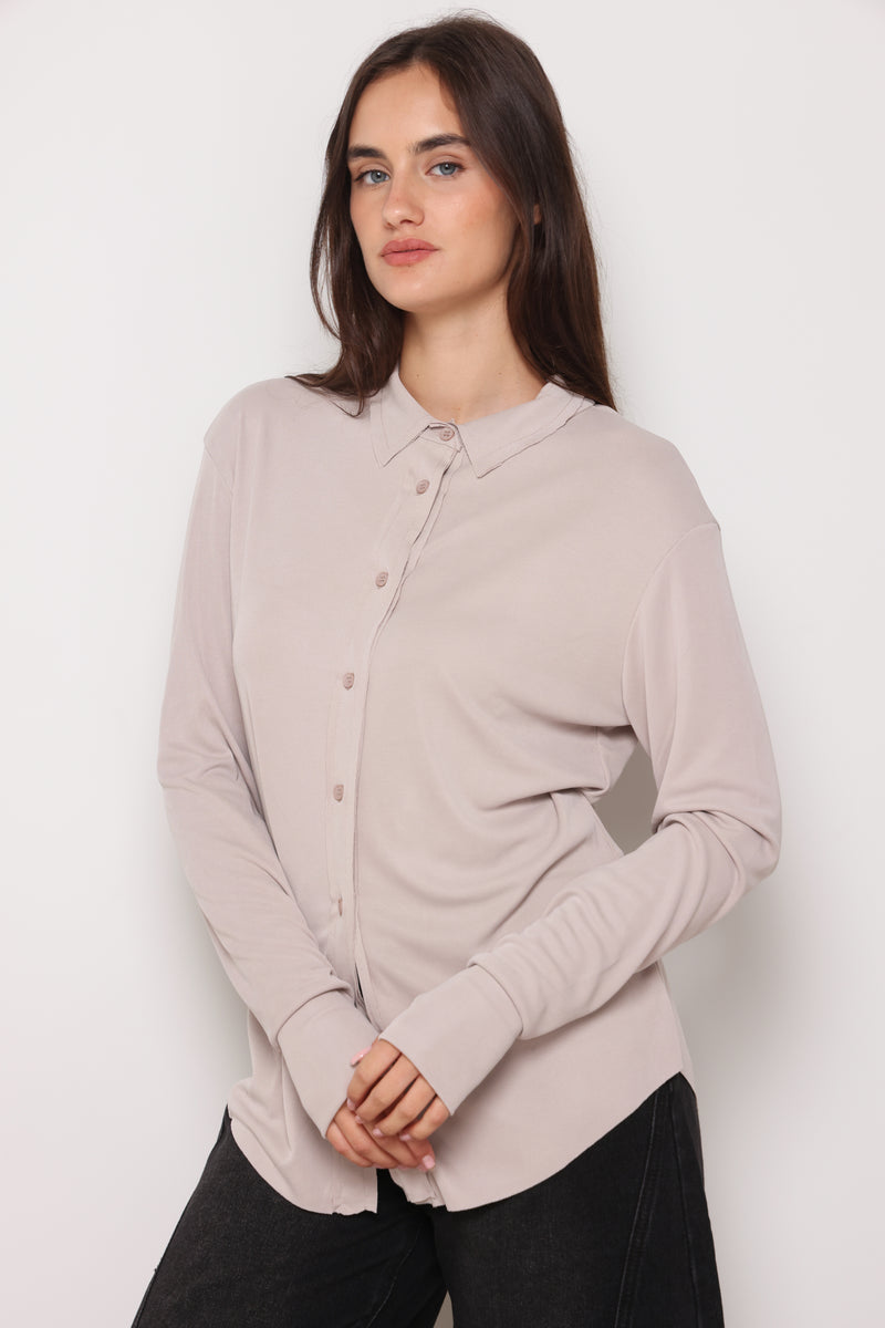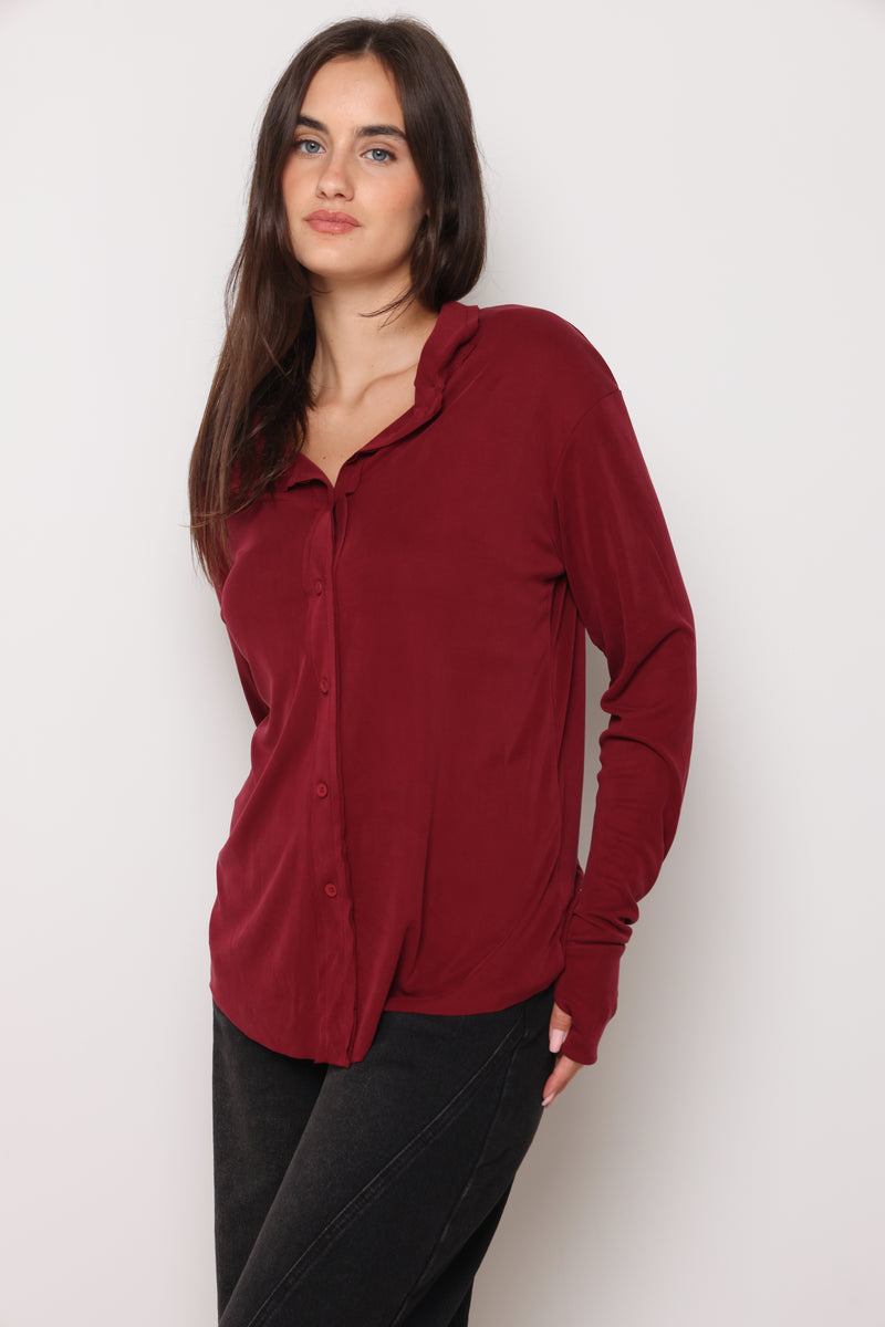 חולצה מכופתרת בגזרה קלאסית מבד קופרו עם חור באגודל .