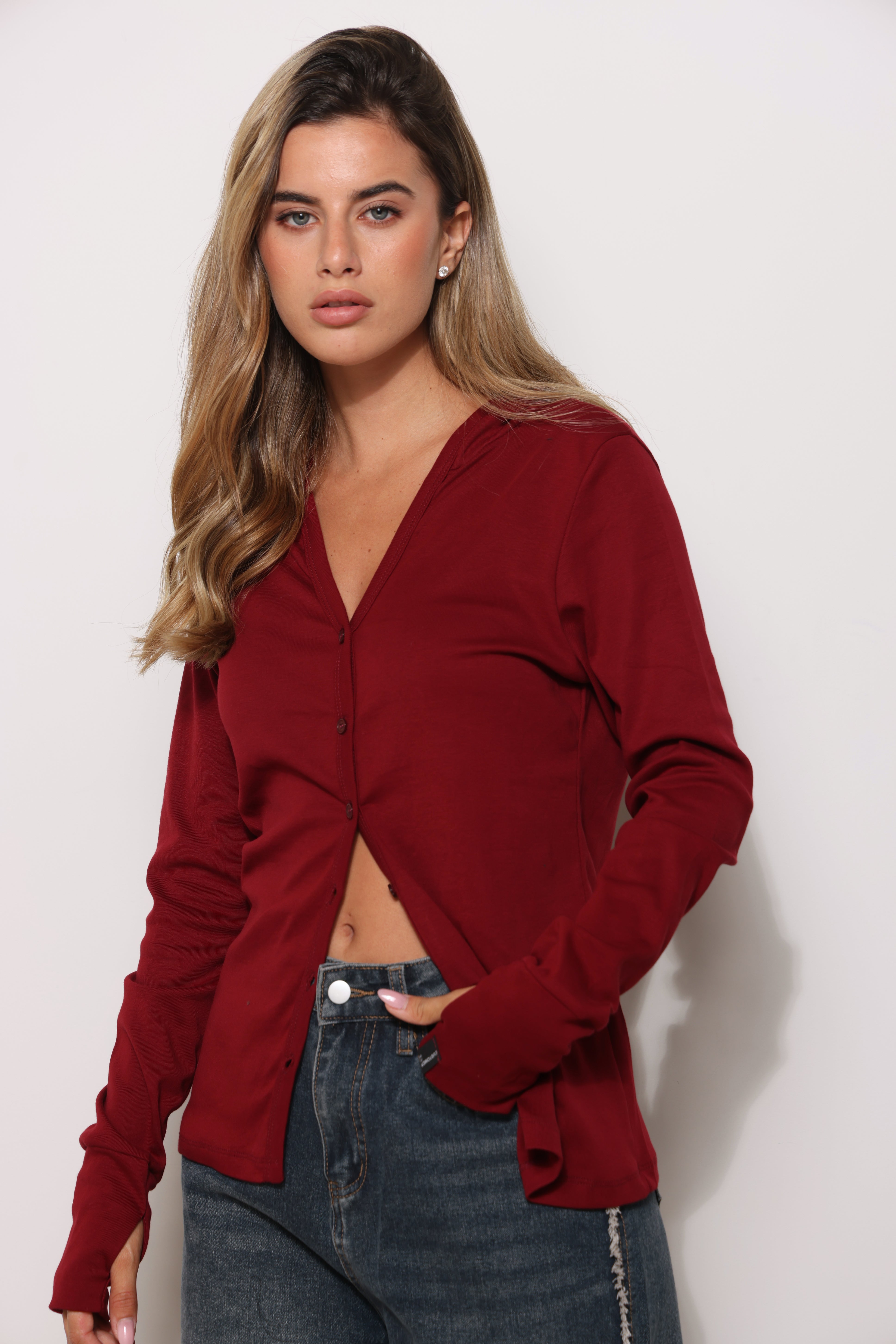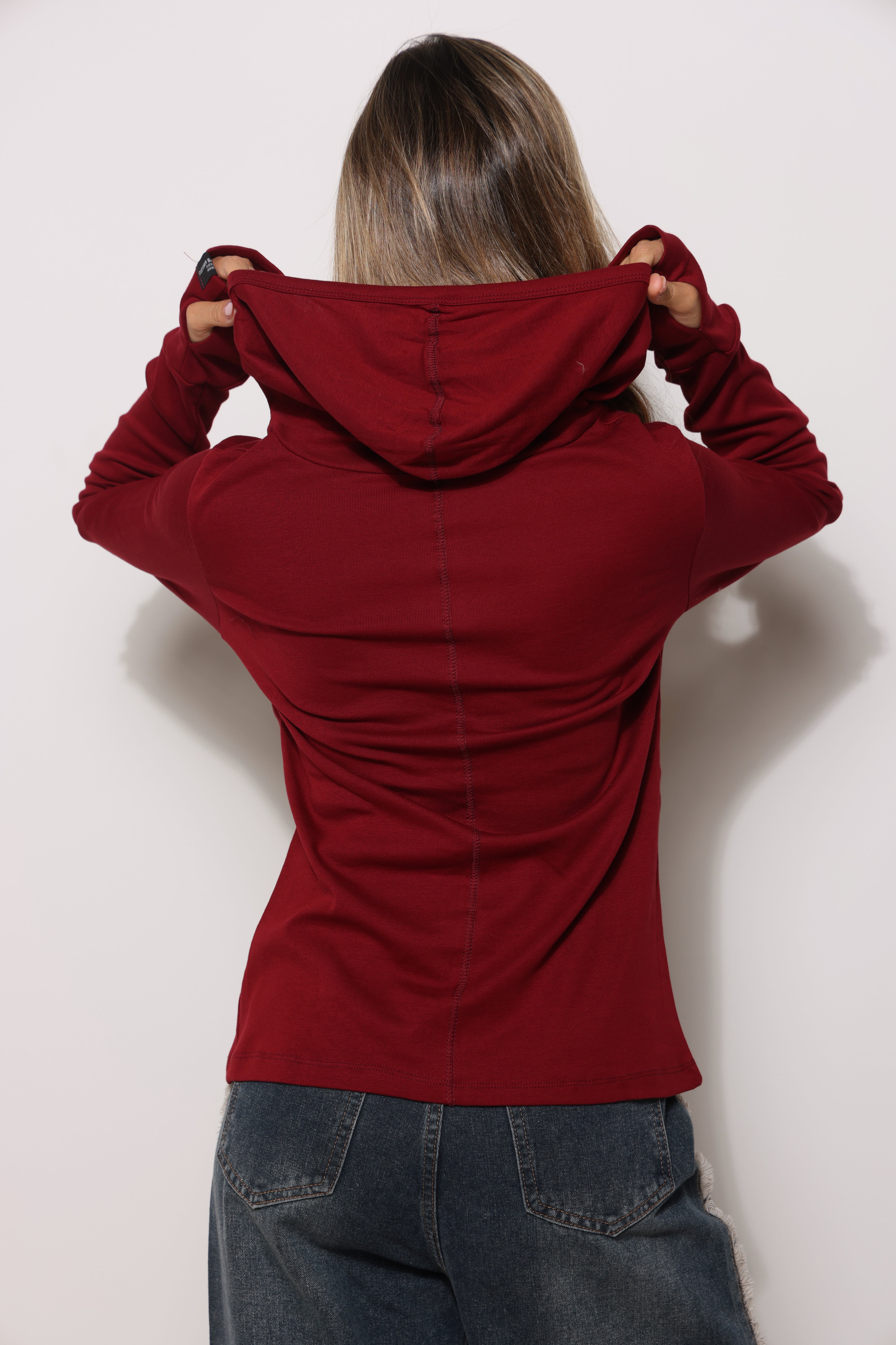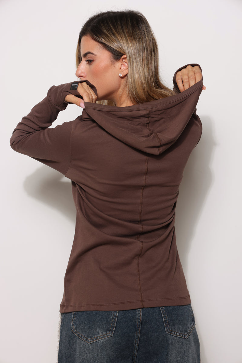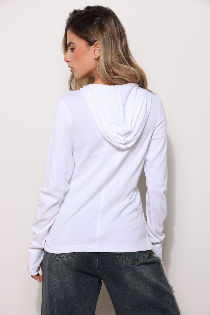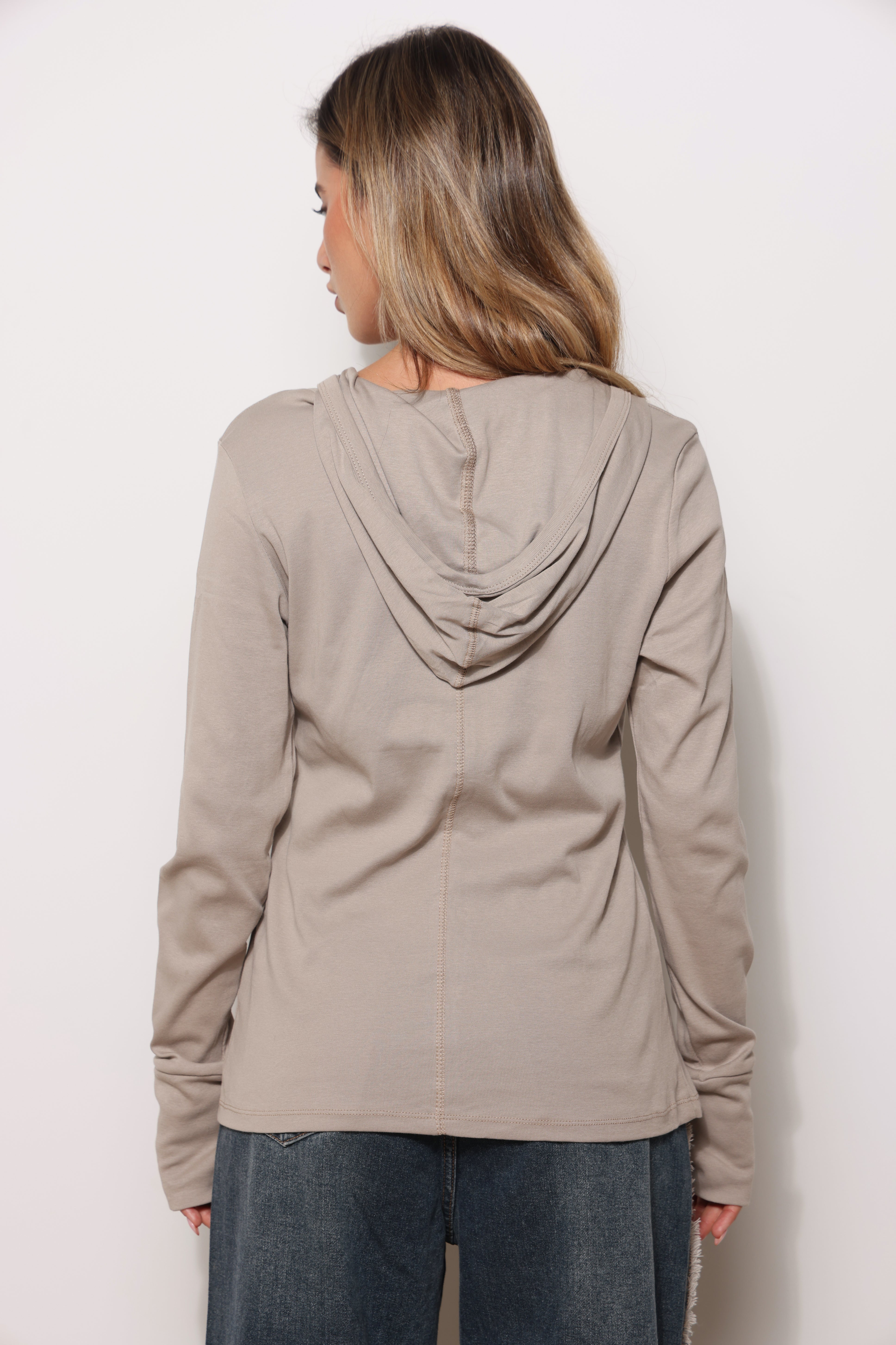 חולצה מכופתרת מבד פיינריב במגע רך עם כובע קפוצ'ון וכפפה.