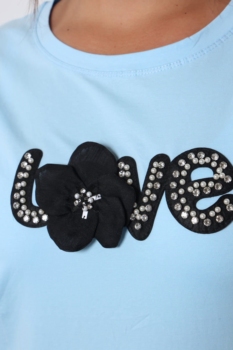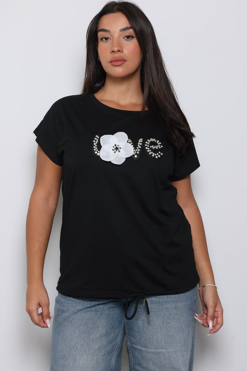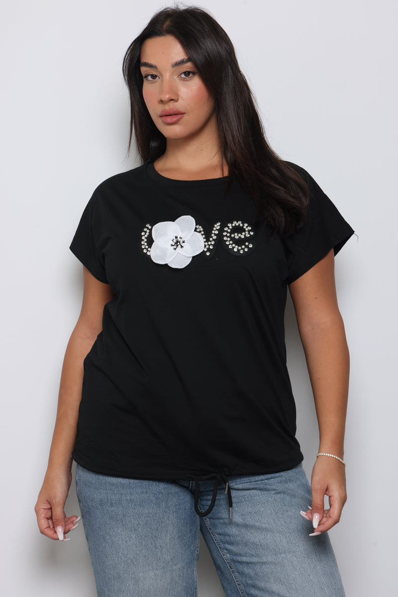 חולצת ניקי עם דפוס LOVE בשילוב פרח.
