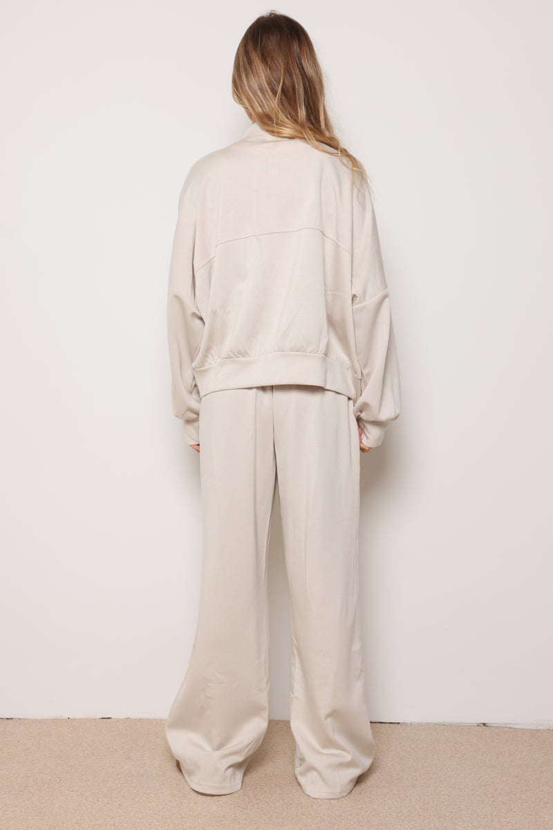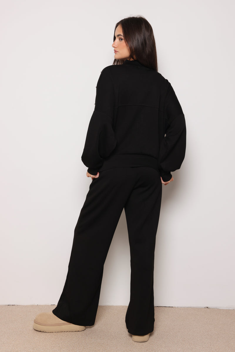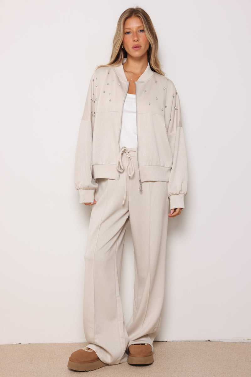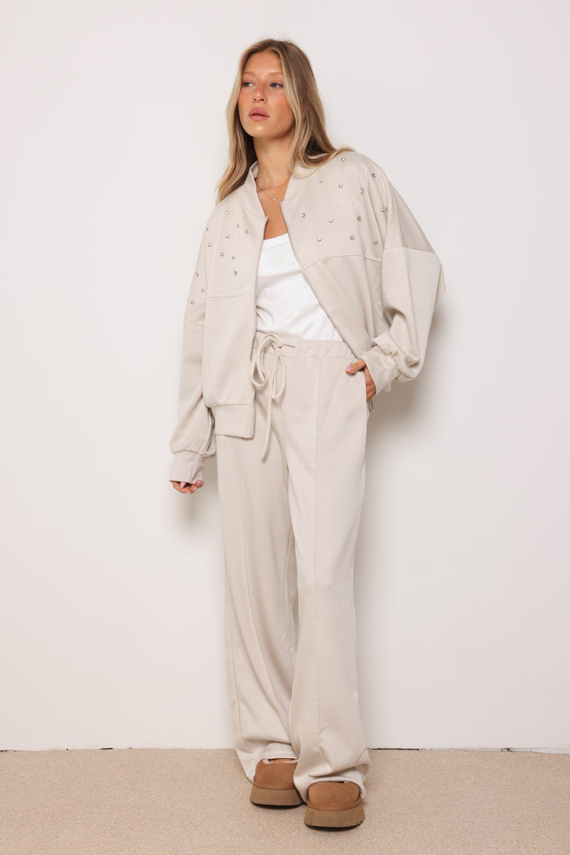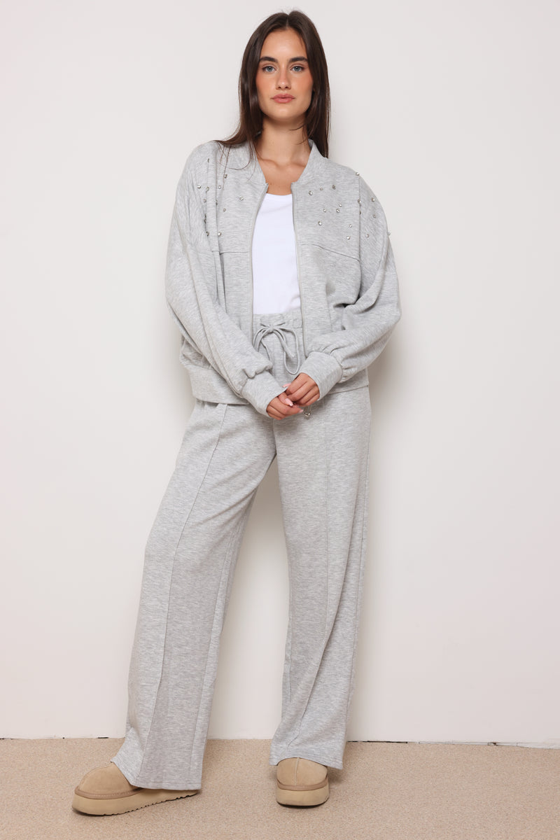 חליפה מבד ג'רסי לייקרה סופר נעים בשילוב אבנים בפרונט ורוכסן קדמי.