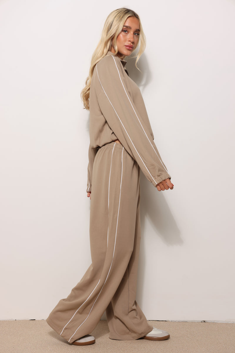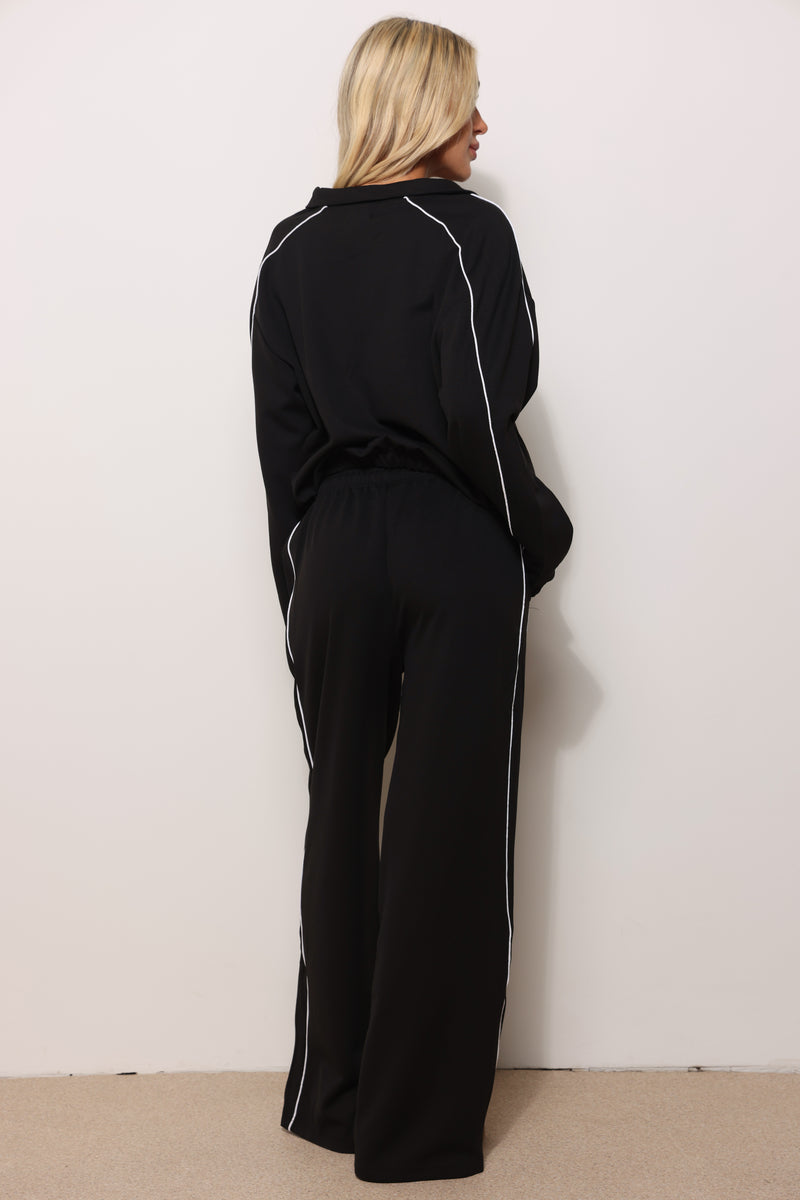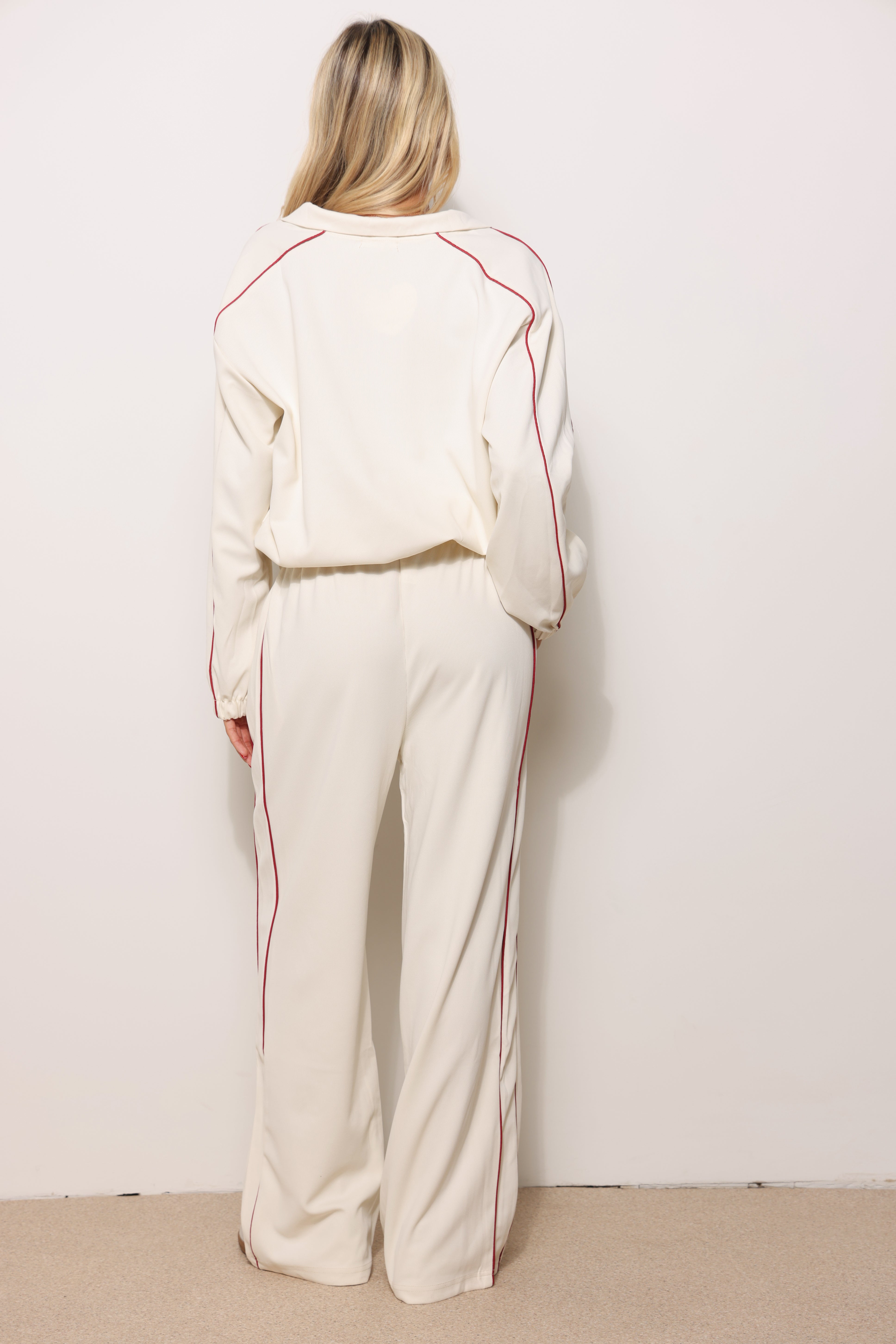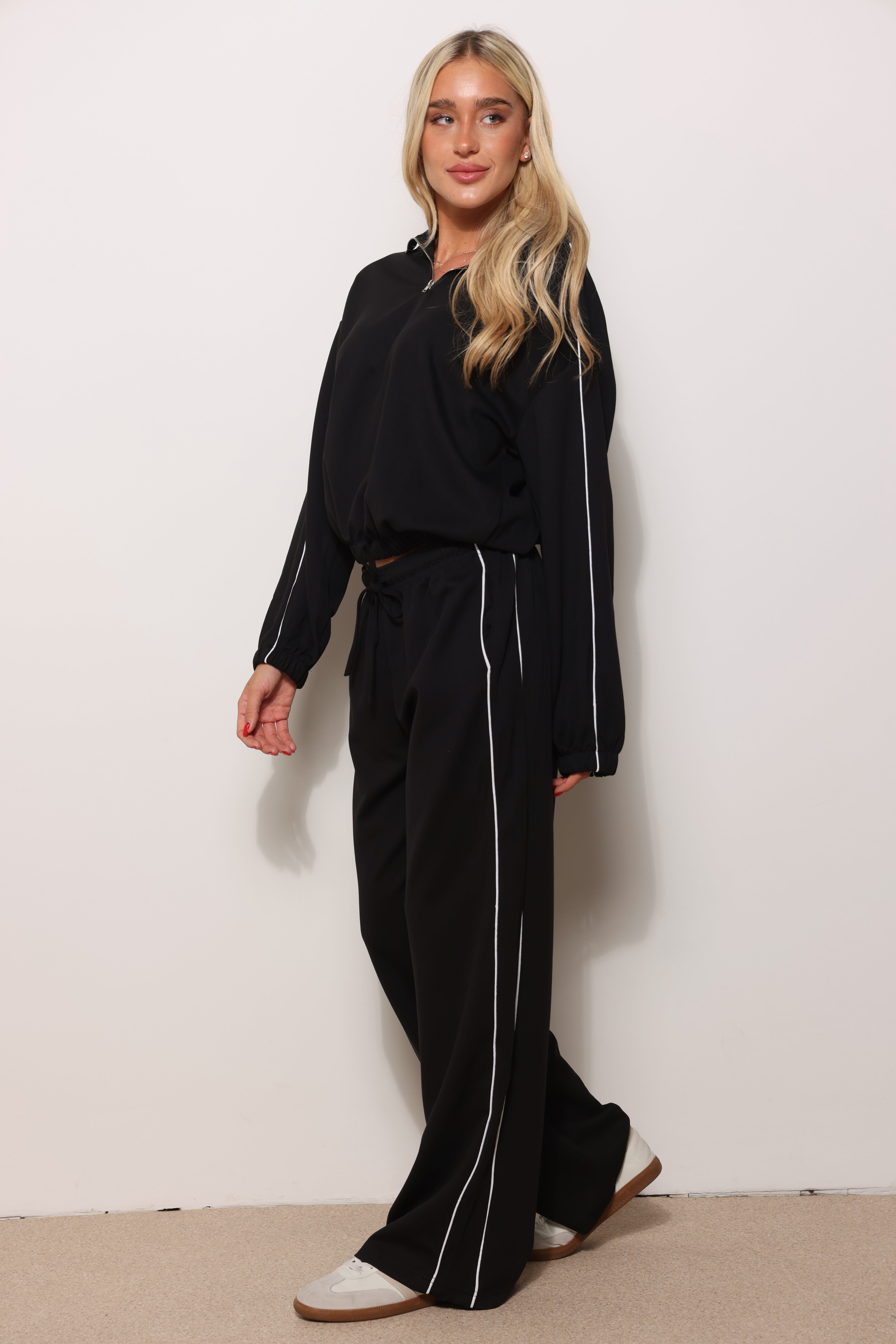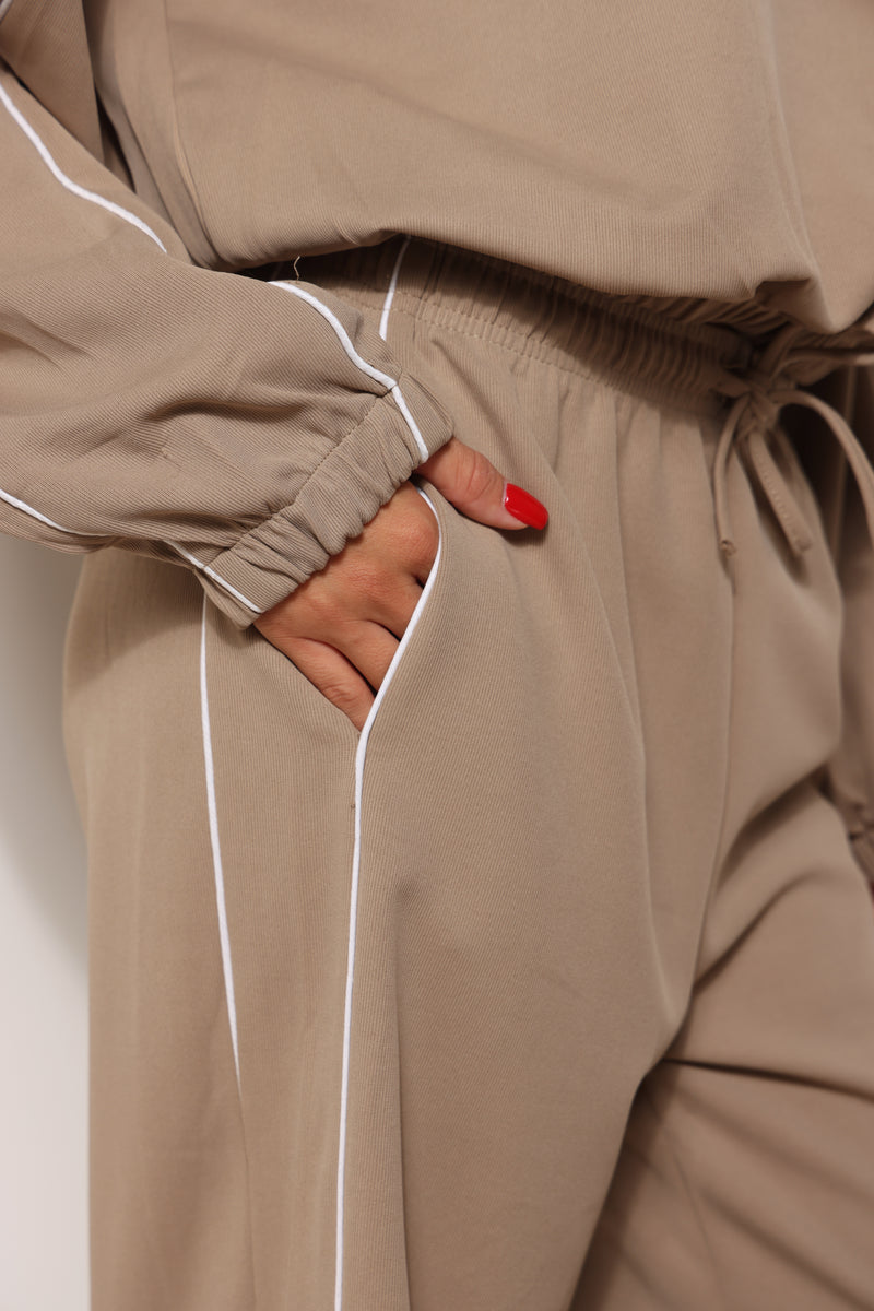 חליפה מבד ריב מודאל סופר איכותי בשילוב פס בצד ורוכסן קדמי.