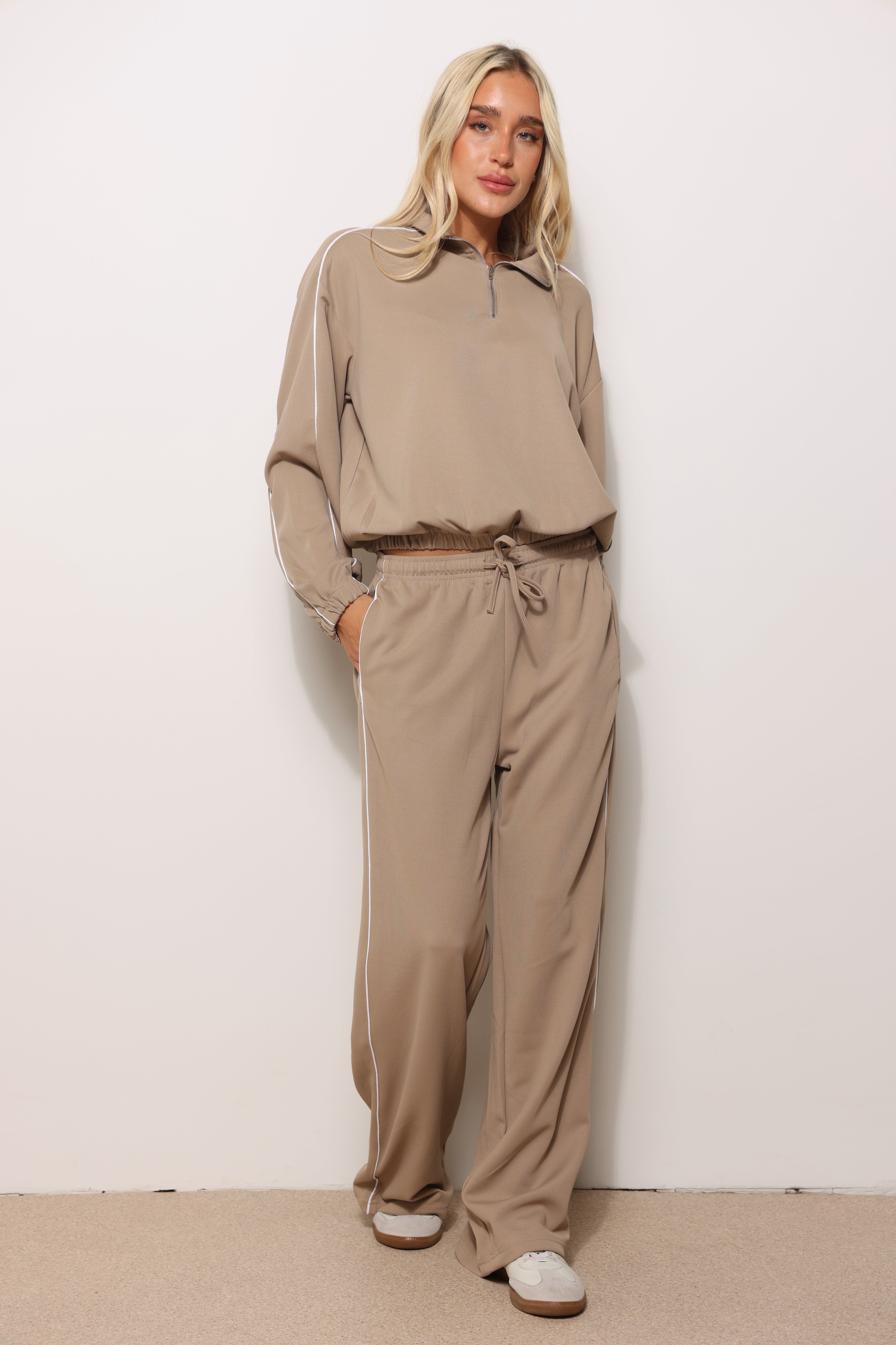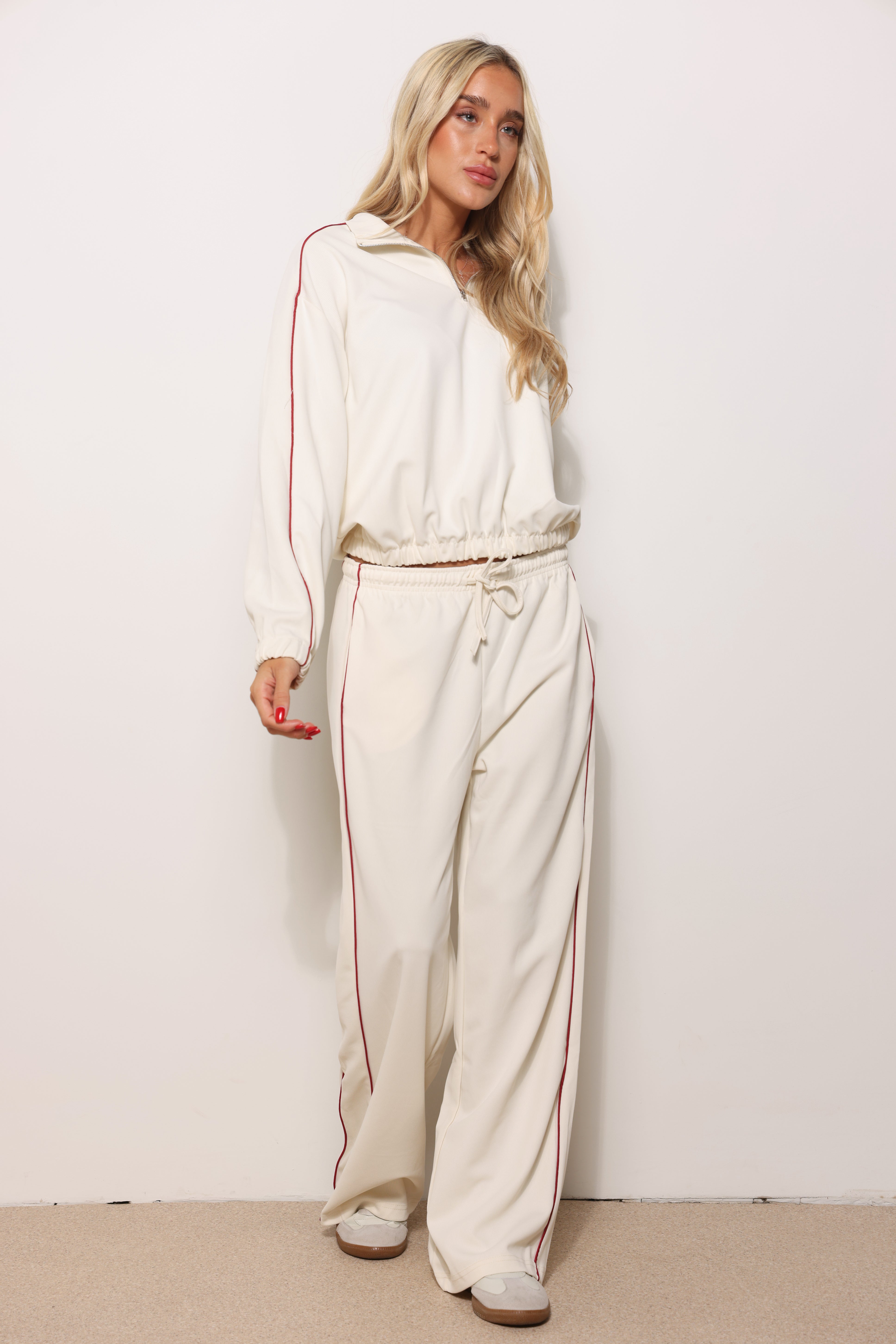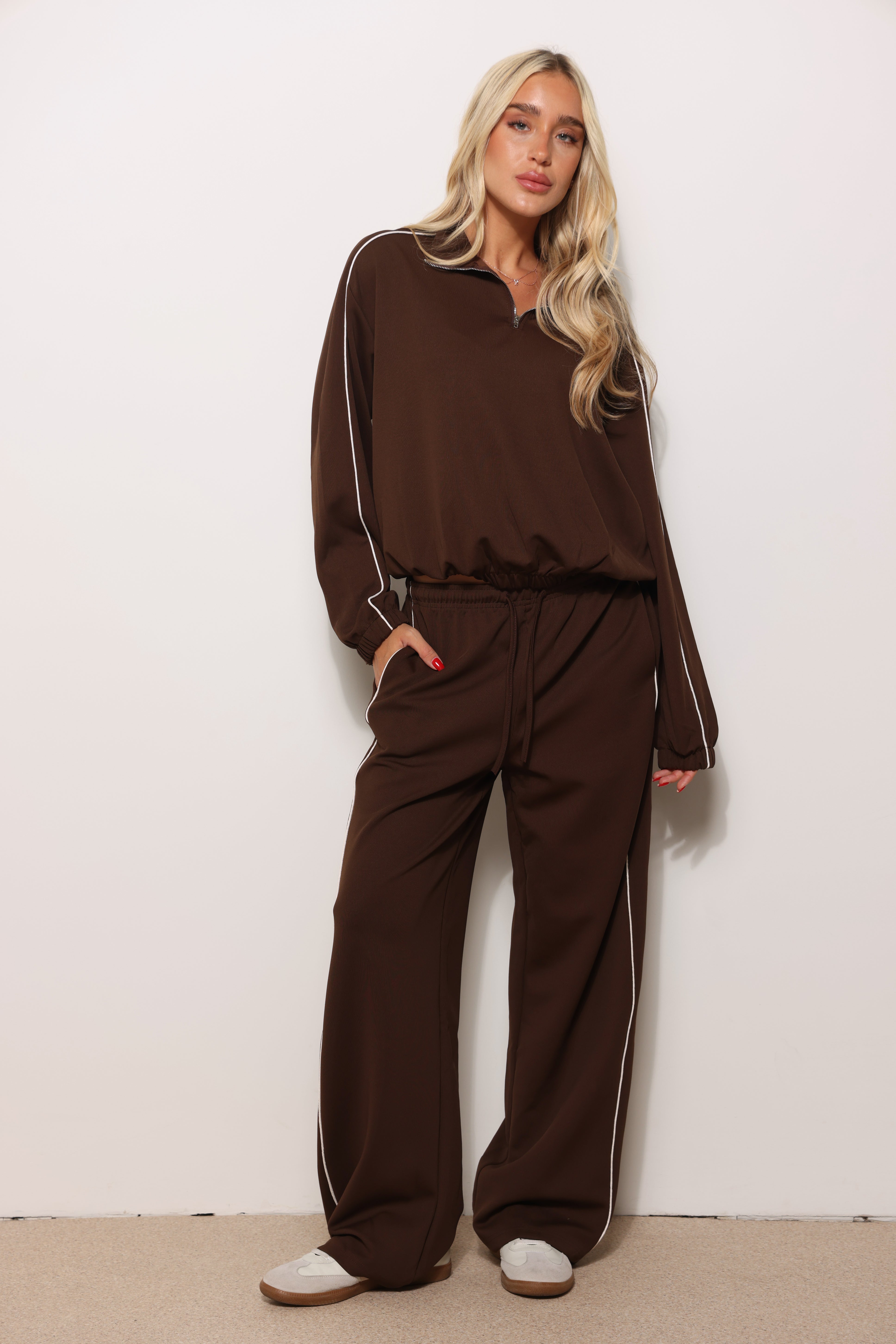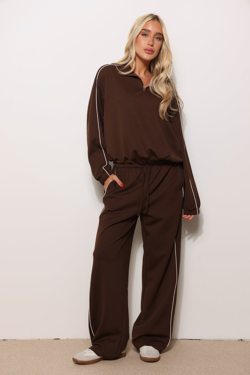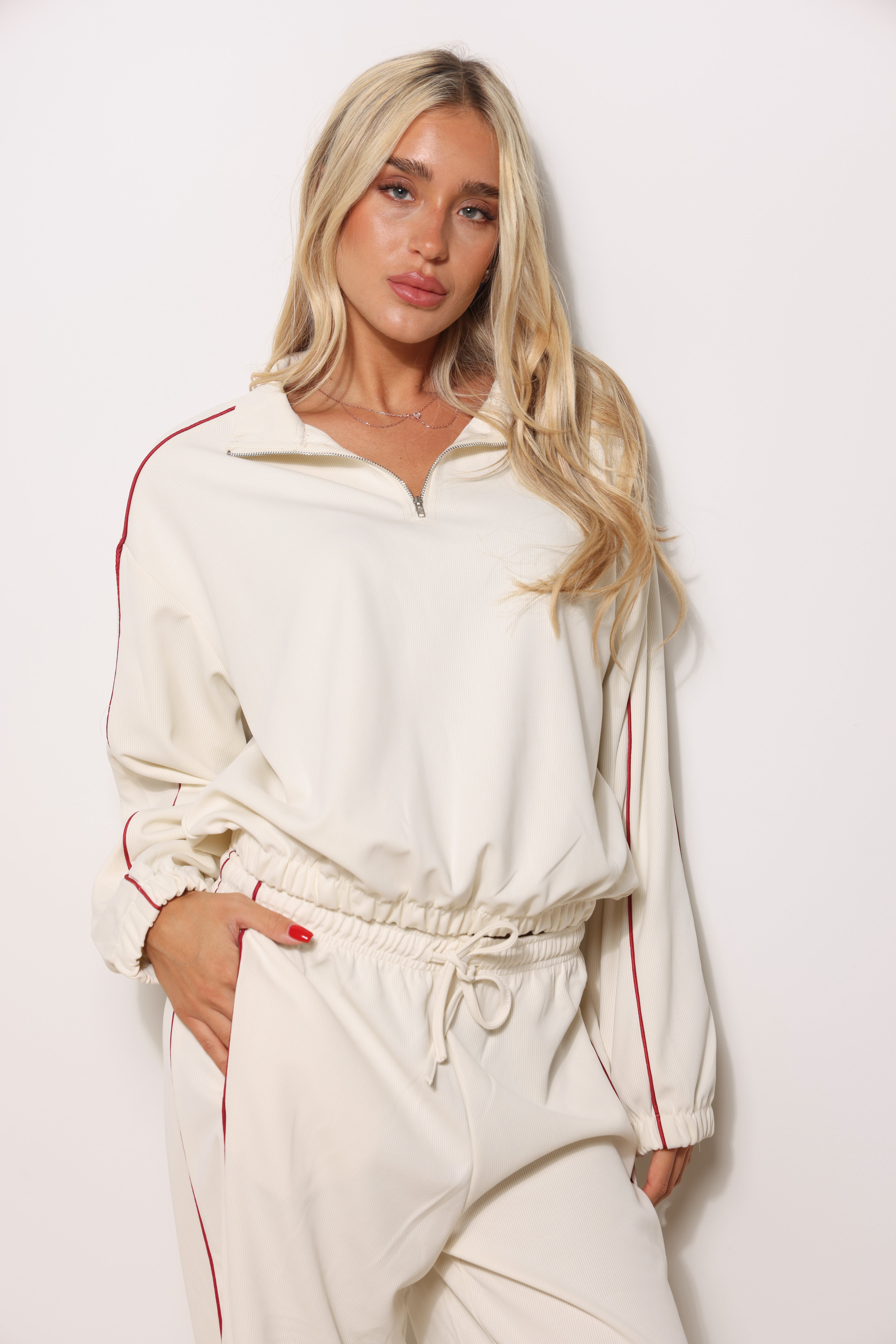 חליפה מבד ריב מודאל סופר איכותי בשילוב פס בצד ורוכסן קדמי.