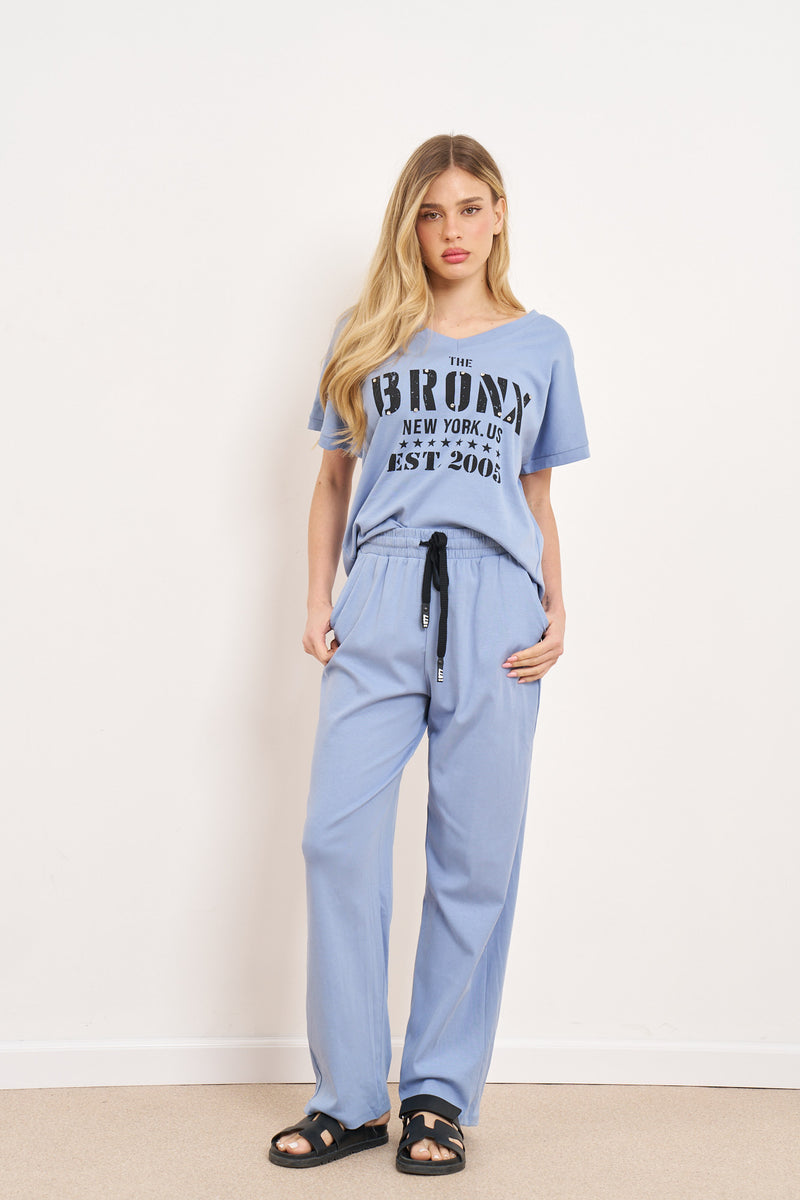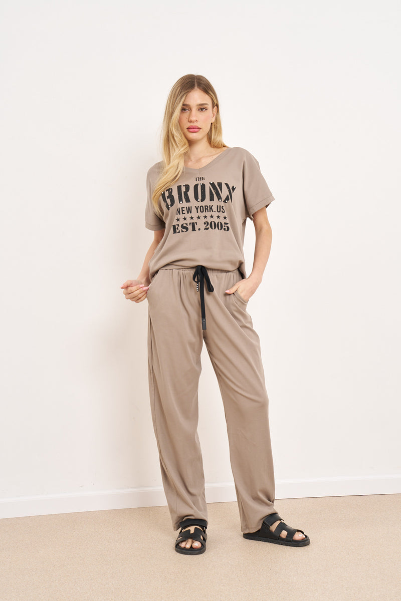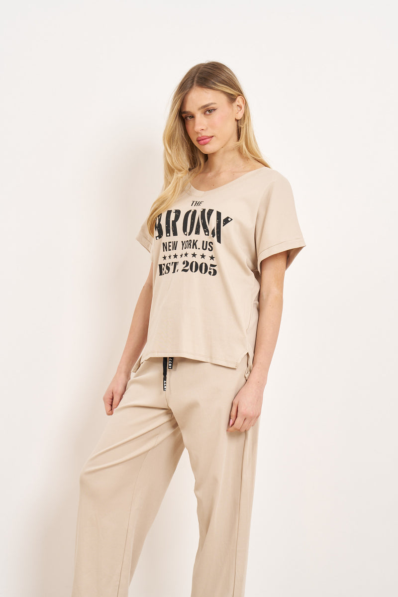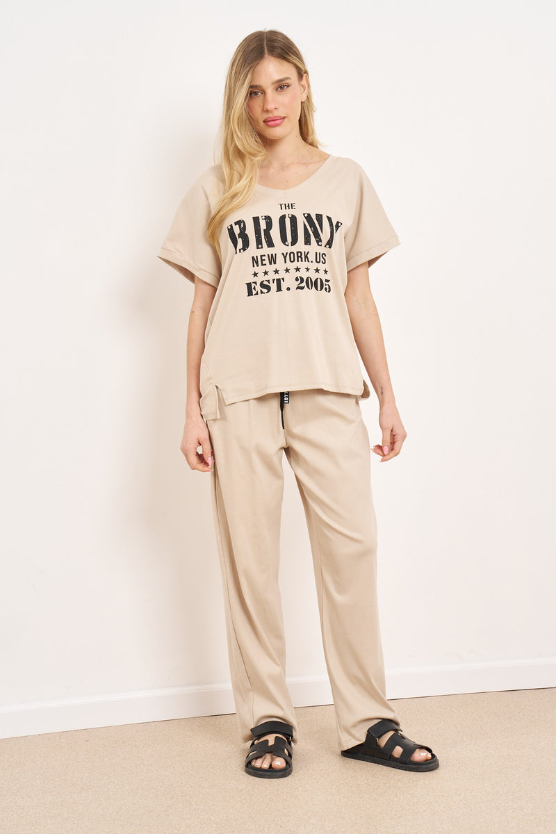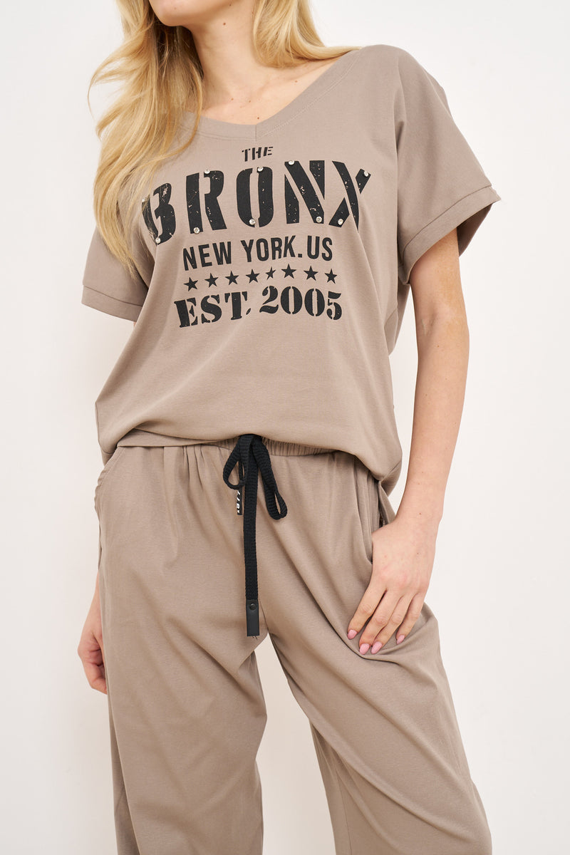 חליפה מבד כותנה פיינריב עם דפוס בפרונט.