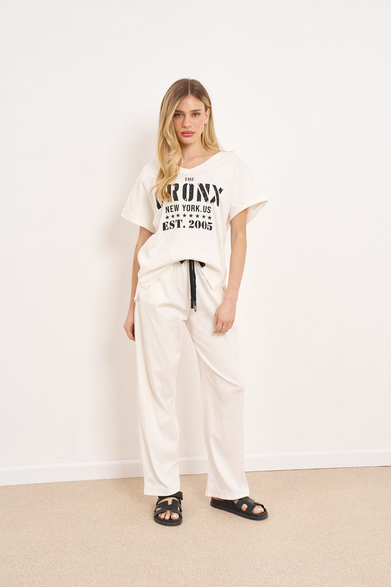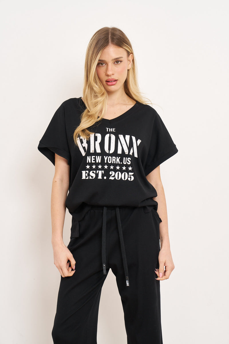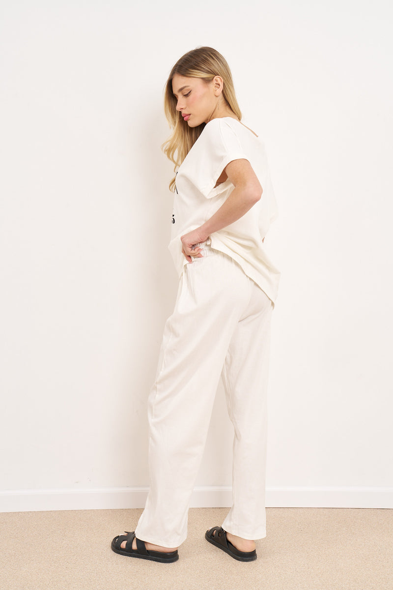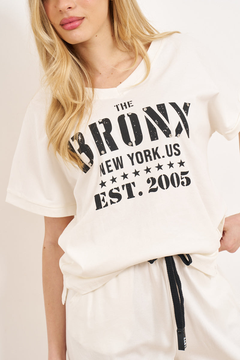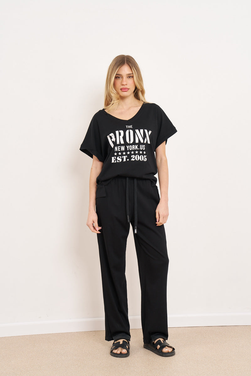 חליפה מבד כותנה פיינריב עם דפוס בפרונט.