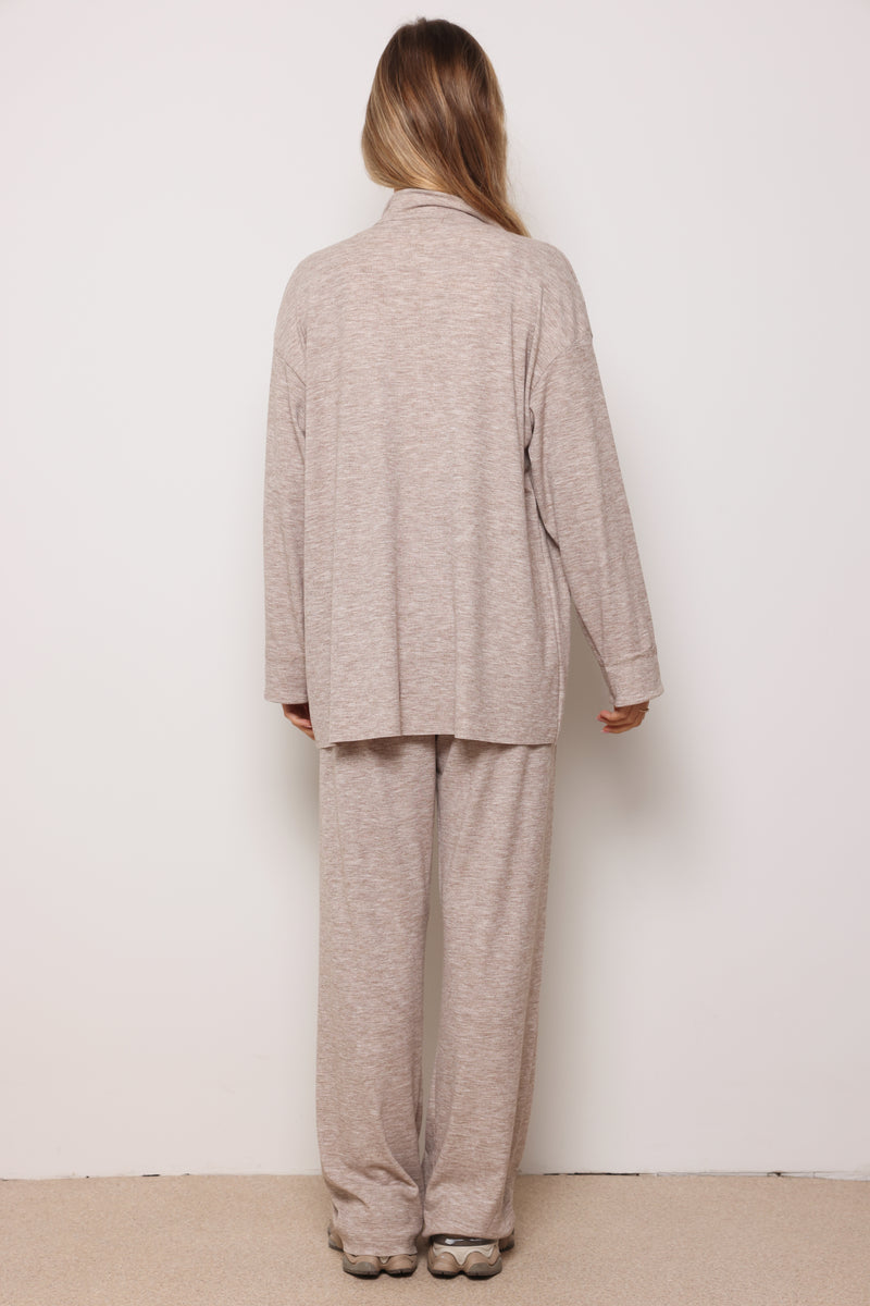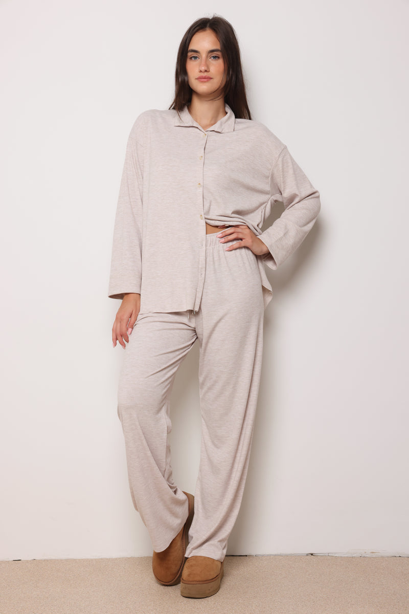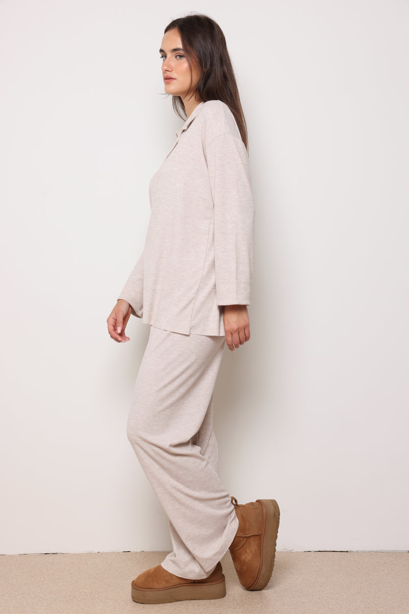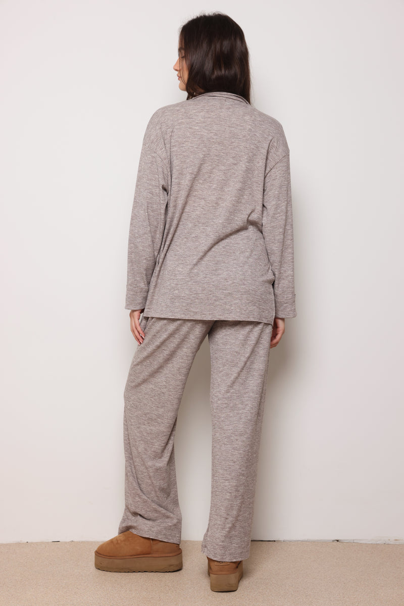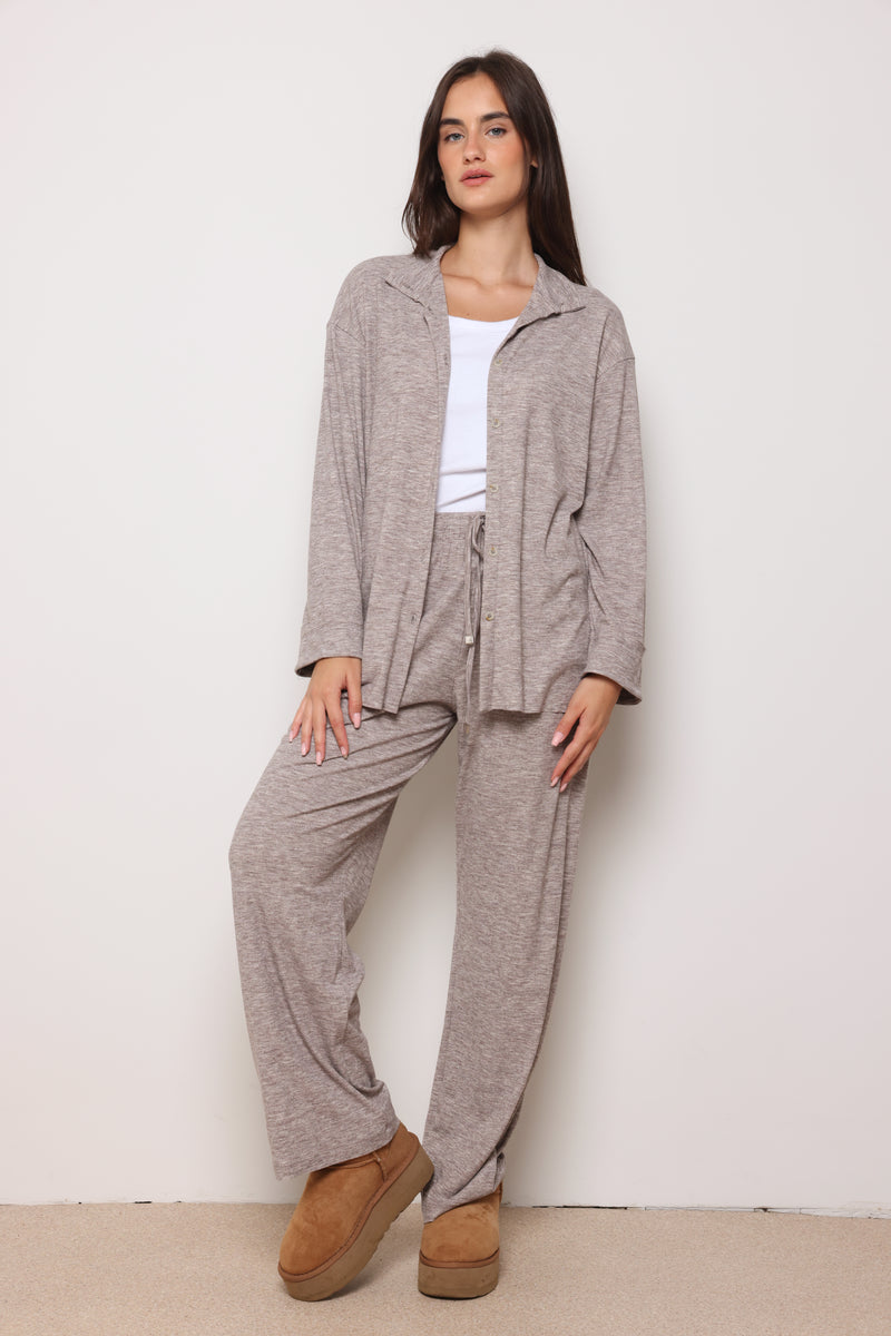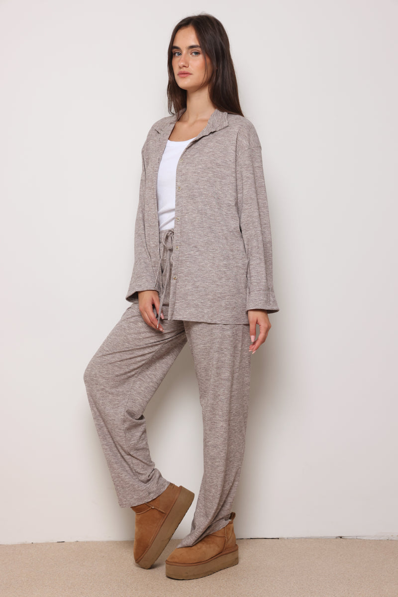 חליפת פנאי מכופתרת מבד ריב מלאנז' סופר קליל ונוח.