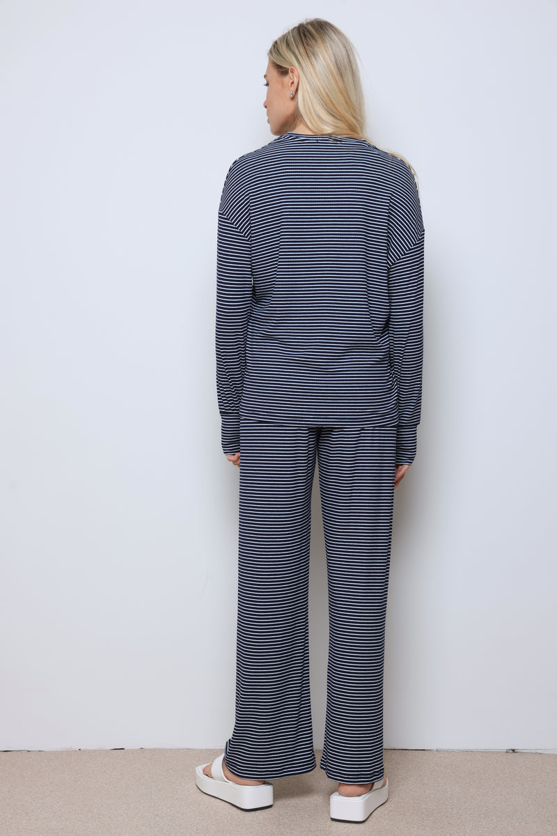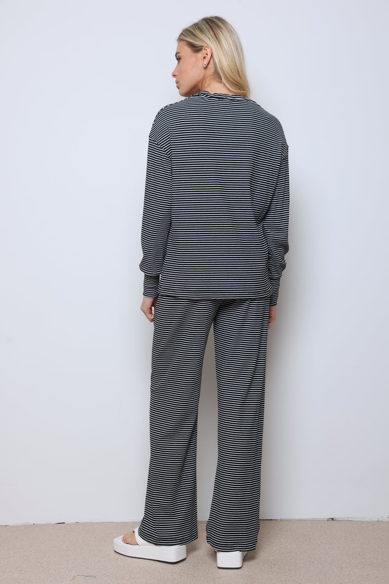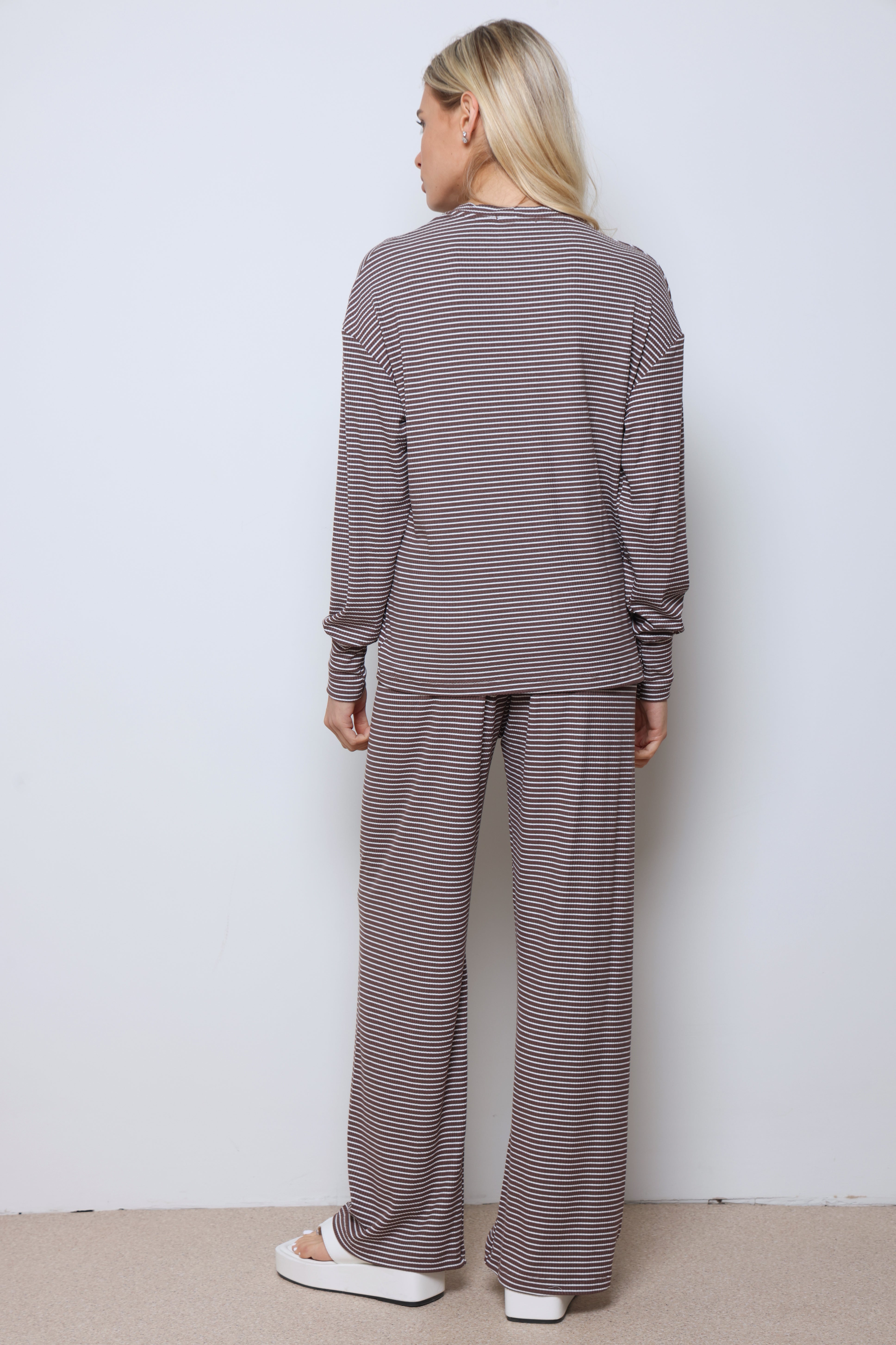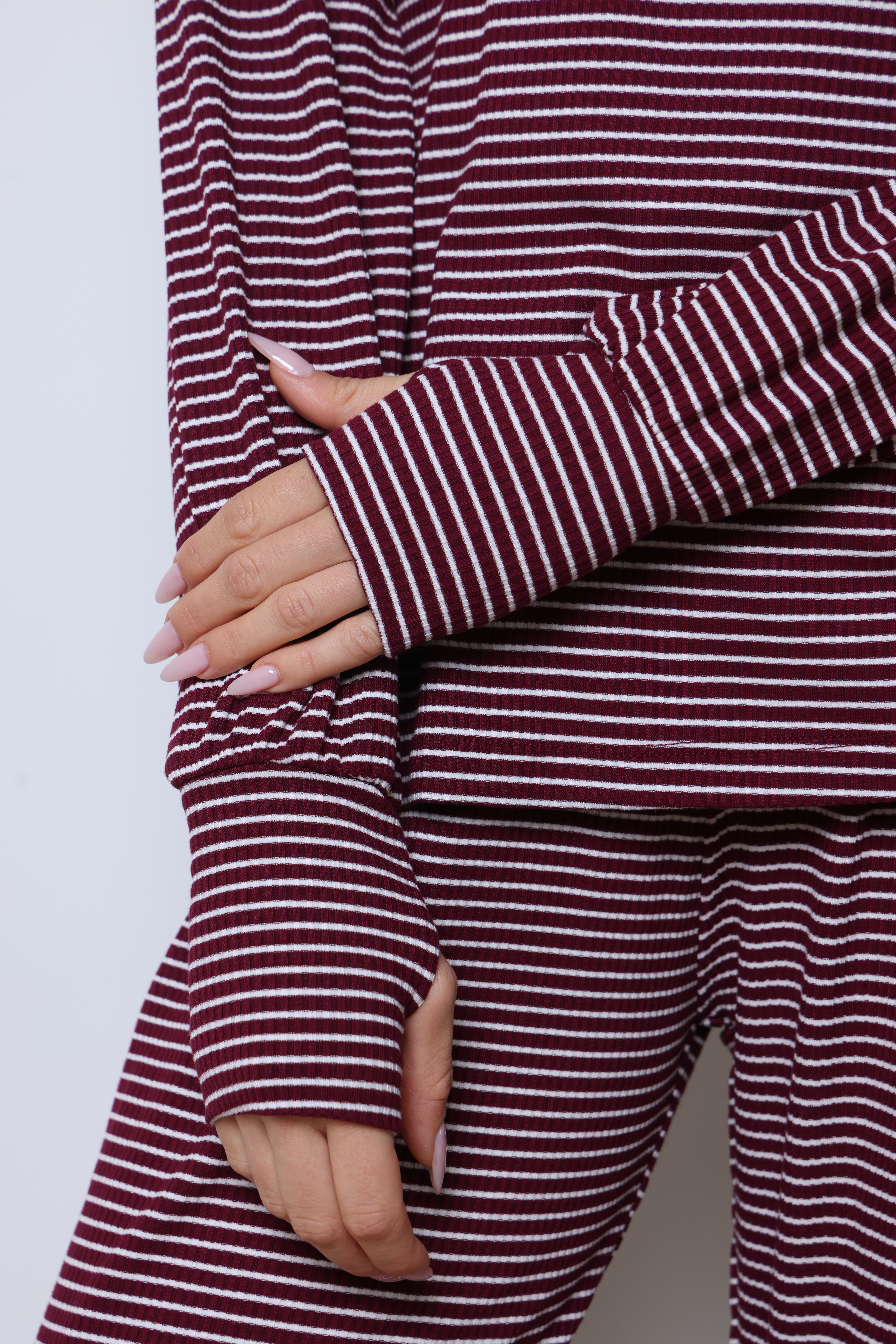 חליפה מבד ריב פסים קלילה עם טוויסט של פתח לאגודל בשרוול.