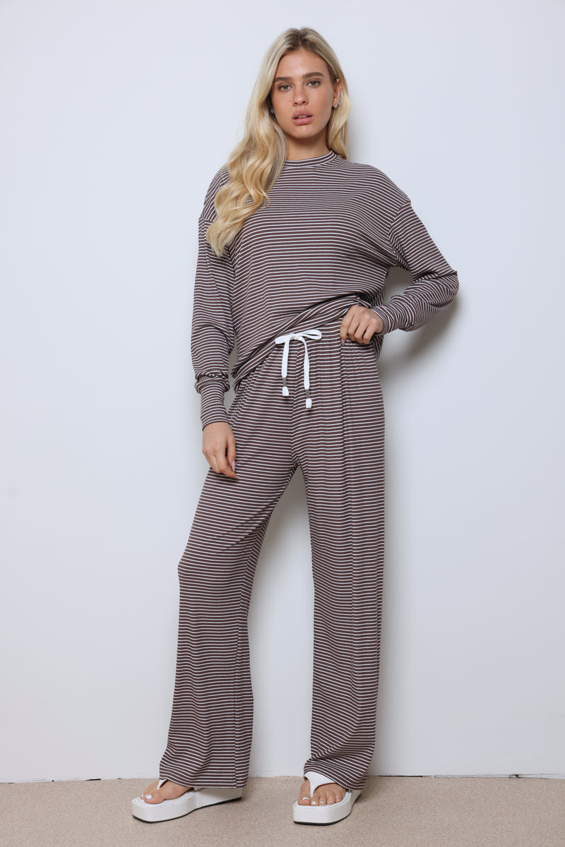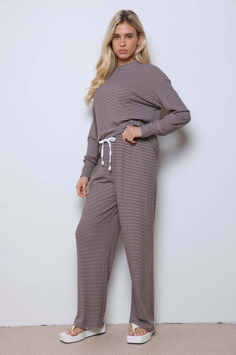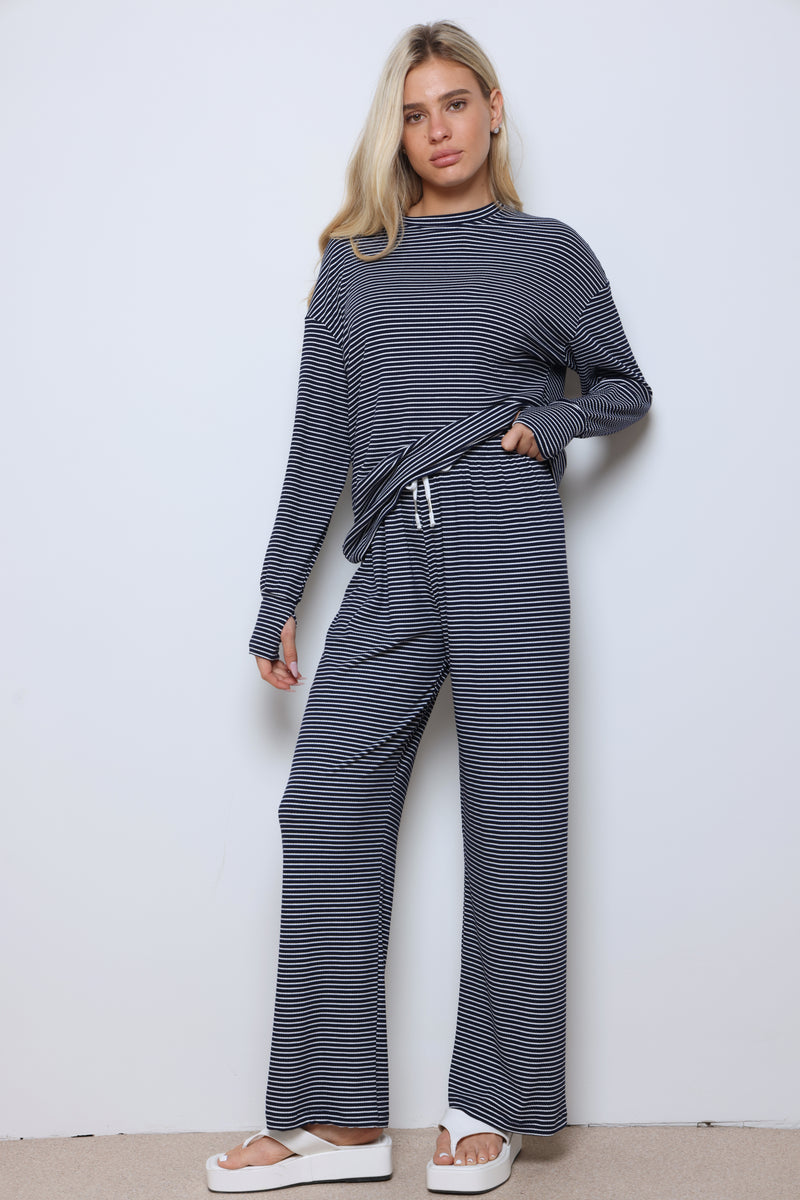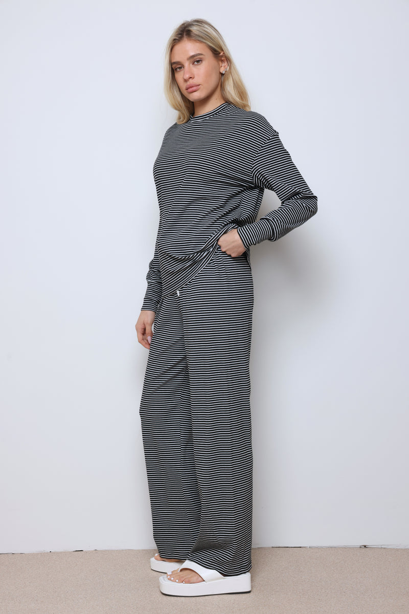 חליפה מבד ריב פסים קלילה עם טוויסט של פתח לאגודל בשרוול.