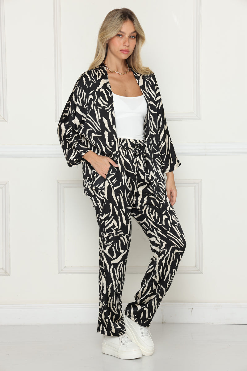 חליפת עליונית חגיגית מבד סאטן בדפוס .