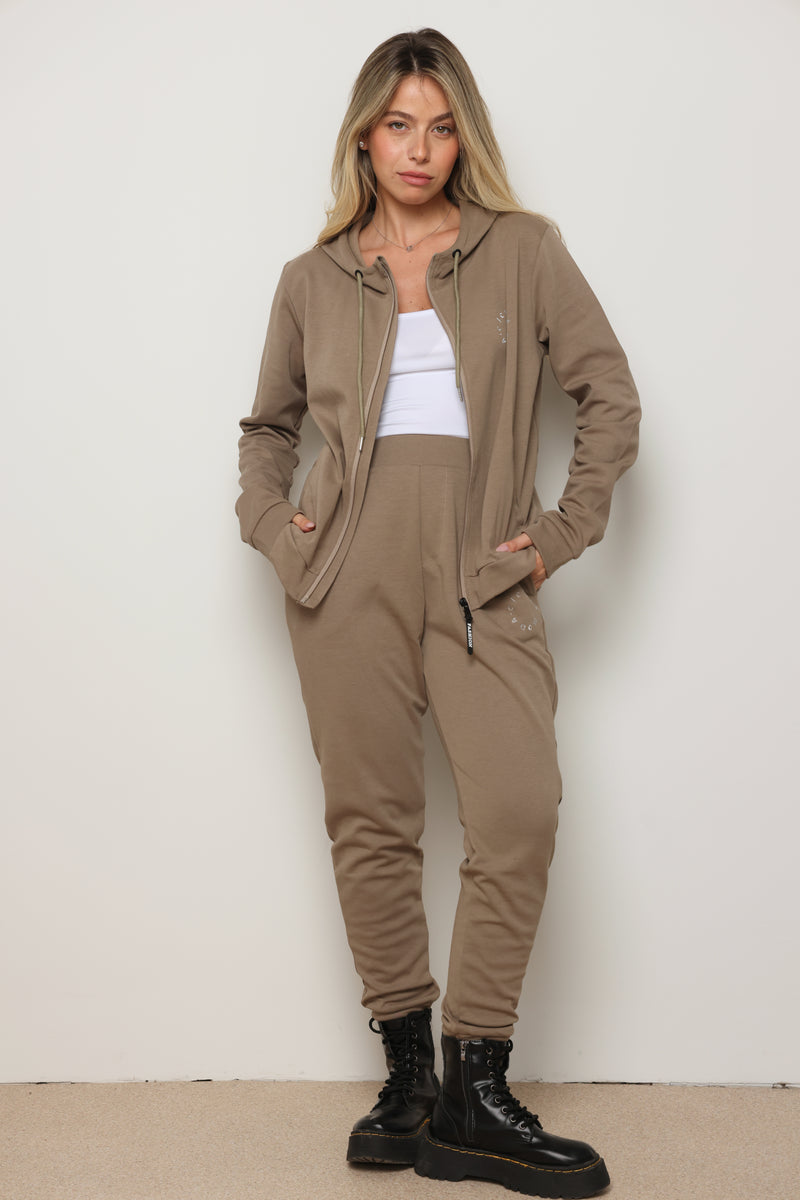 חליפת ג'רסי רוכסן וכובע קפוצ'ון בשלושה צבעים מדוייקים.