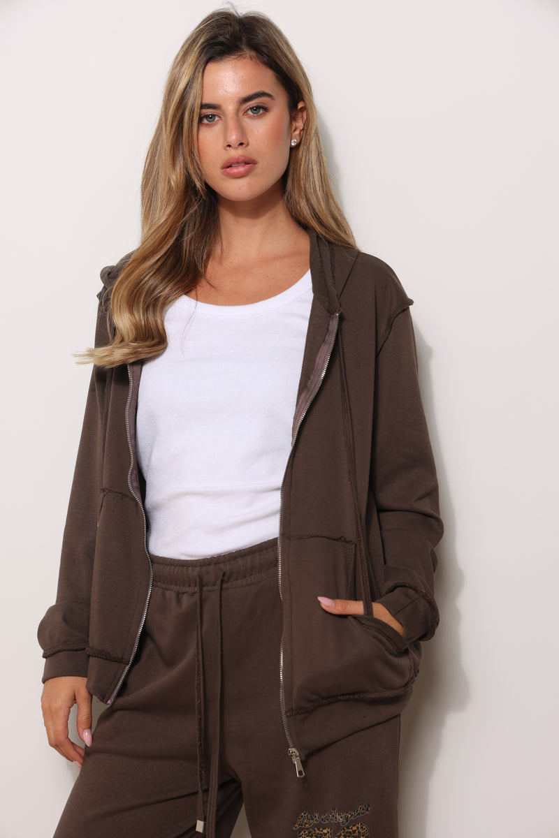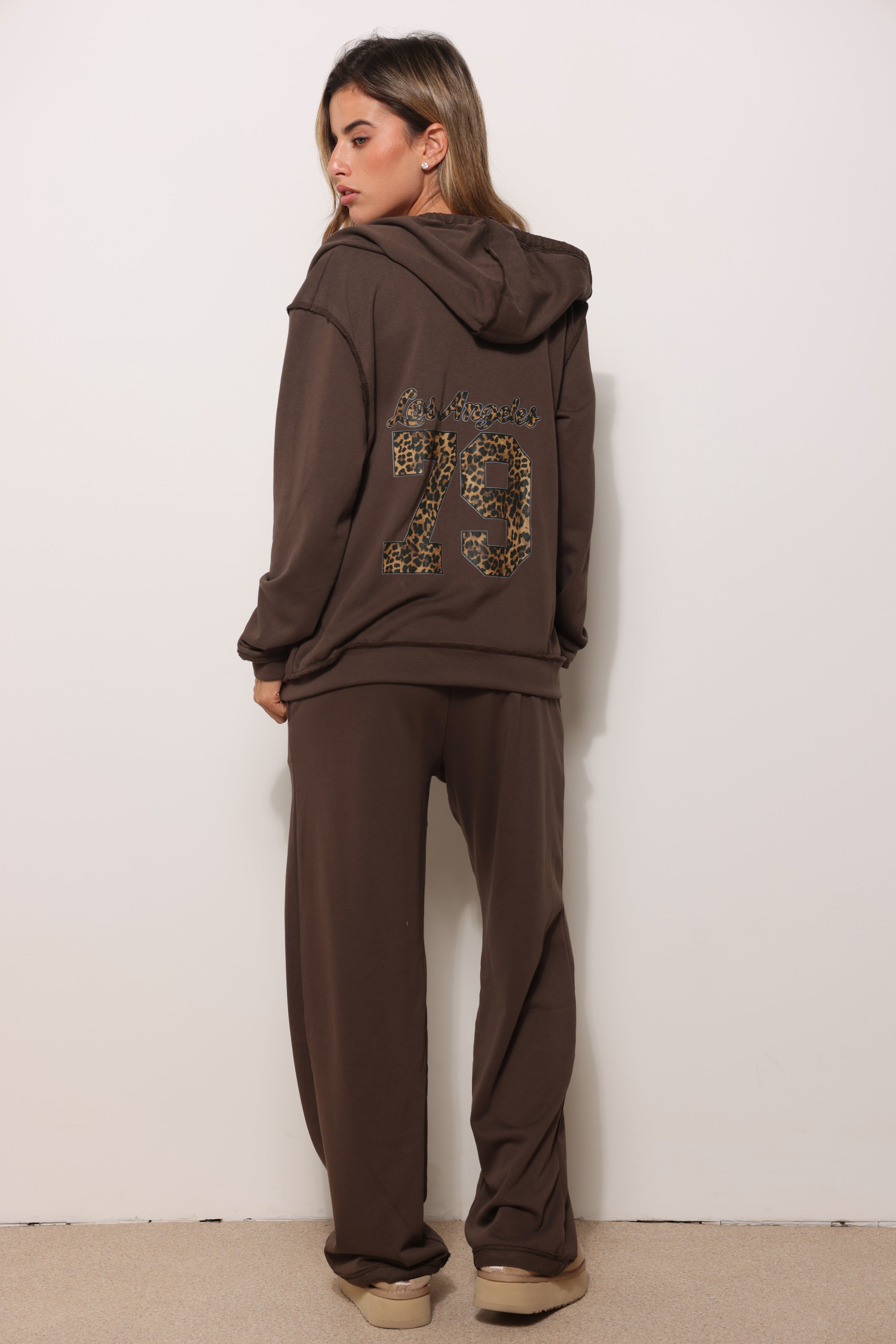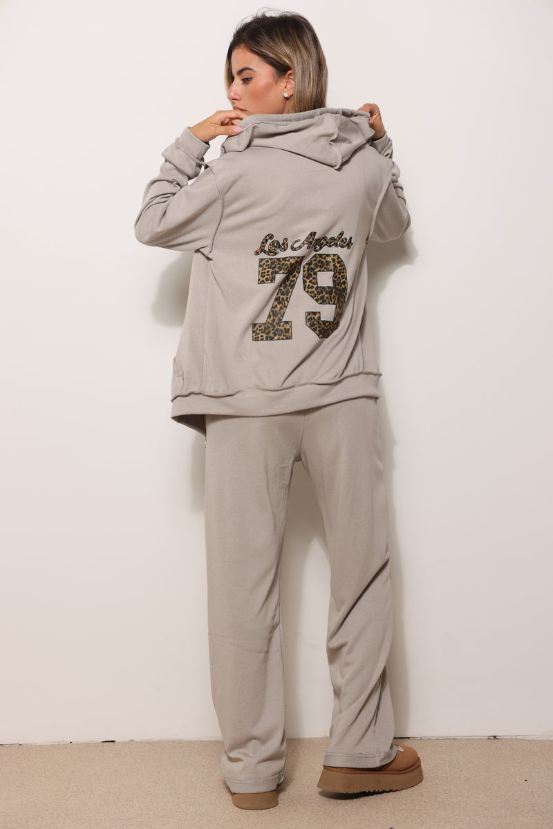 סט קזואל נעים בגזרה מדויקת מבד פרנצ'טרי המורכב מג'קט עם רוכסן וכובע קפוצ'ון ומכנסיים בסיומת ,החליפה עם דפוס סטייל !