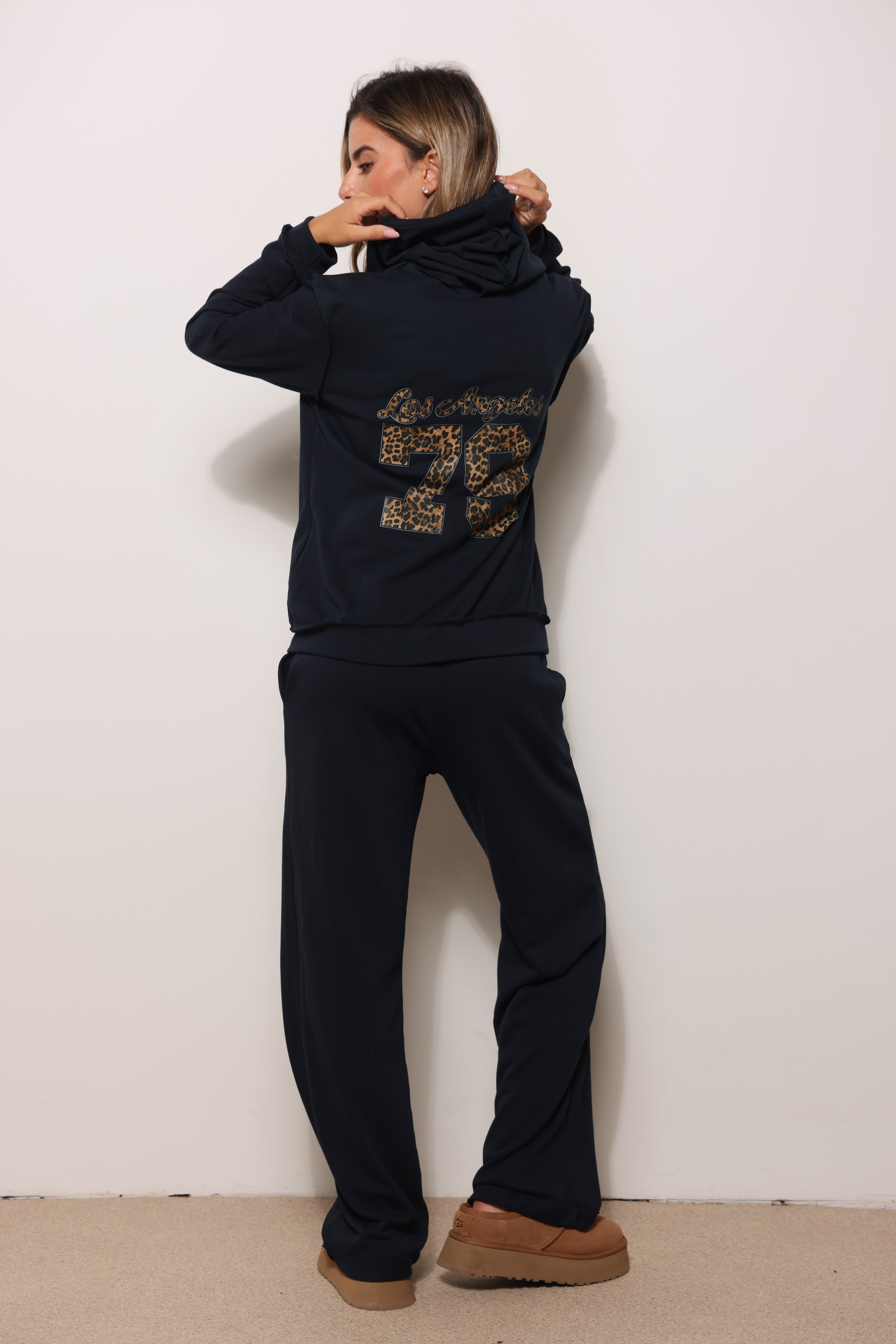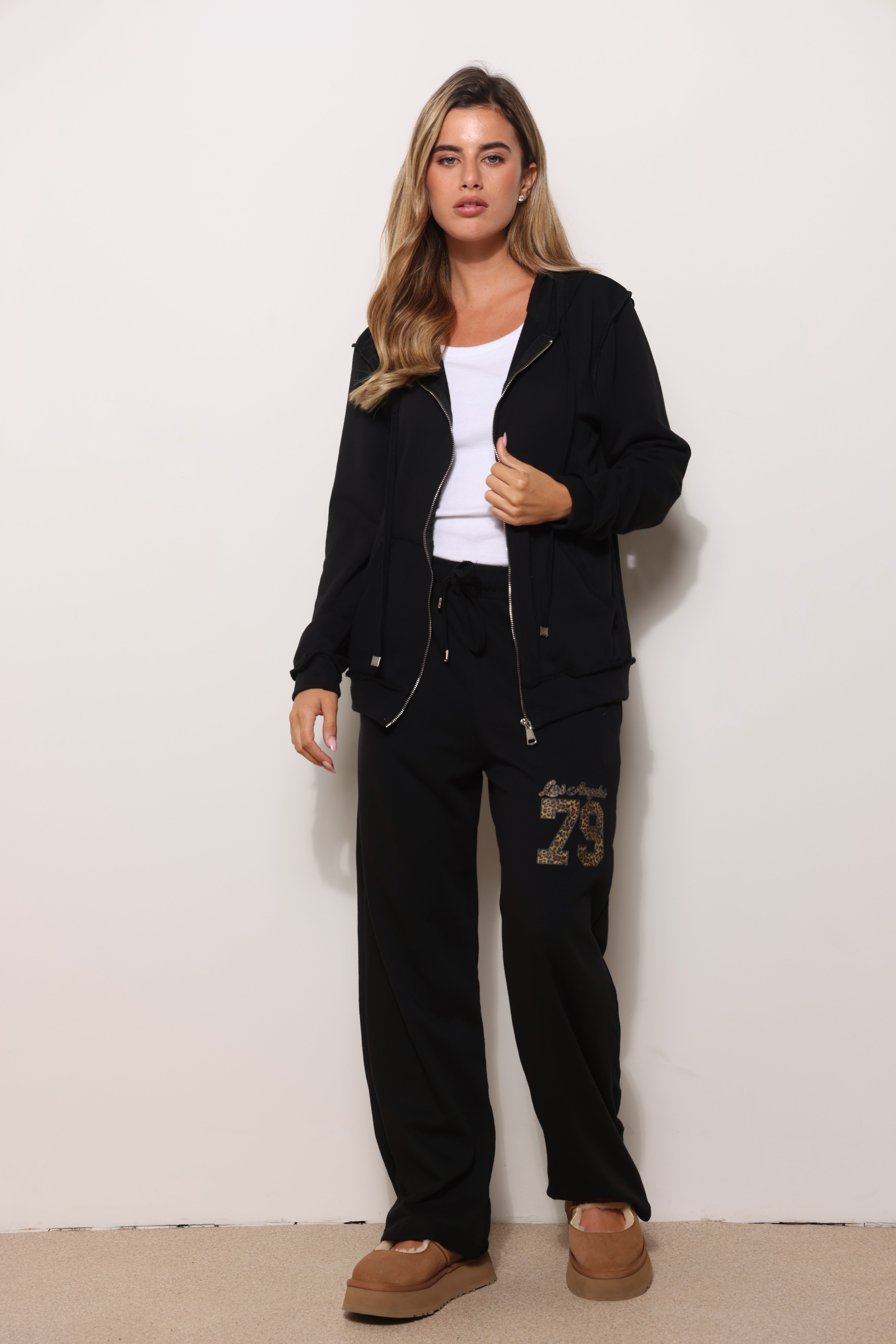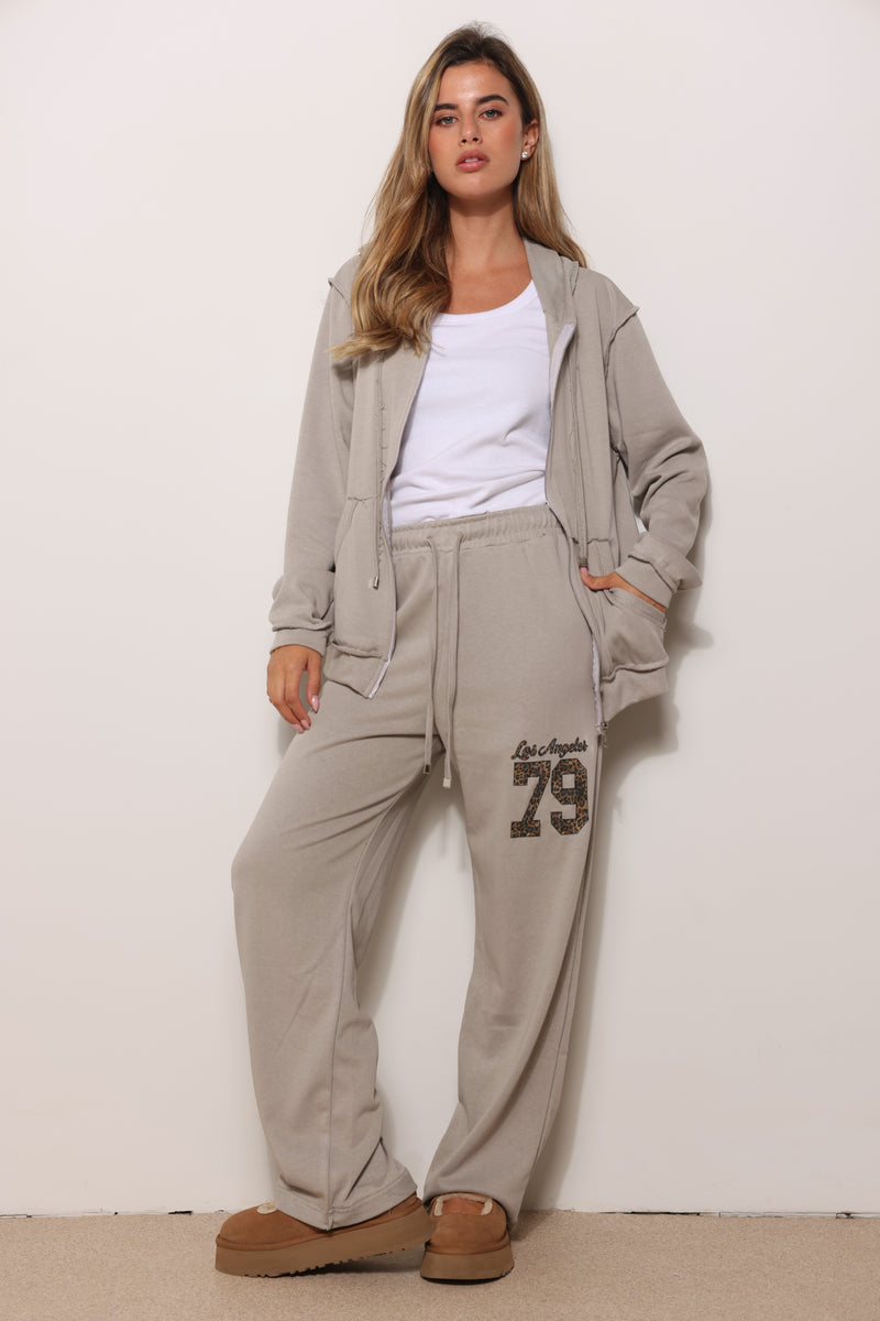 סט קזואל נעים בגזרה מדויקת מבד פרנצ'טרי המורכב מג'קט עם רוכסן וכובע קפוצ'ון ומכנסיים בסיומת ,החליפה עם דפוס סטייל !