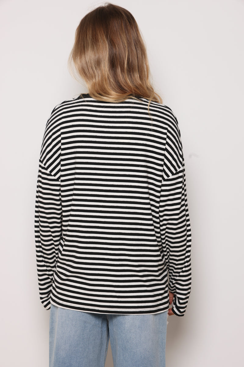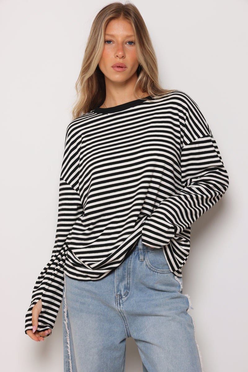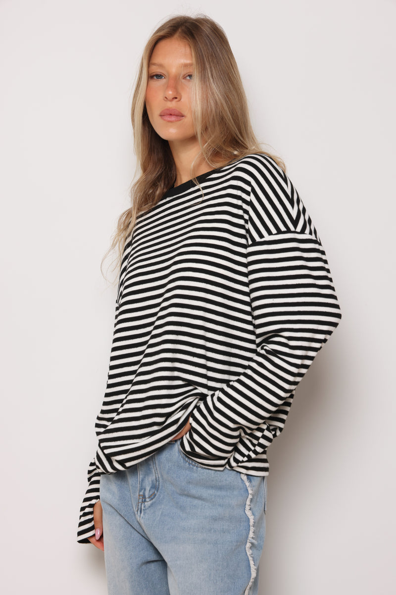 טוניקה מבד ריב בפרינט פסים עם צווארון עגול בסיומת כפפה.