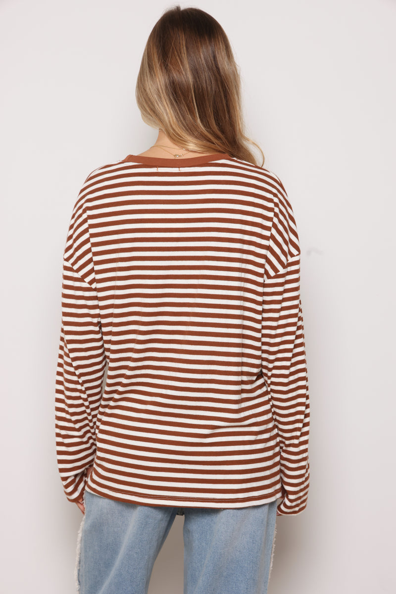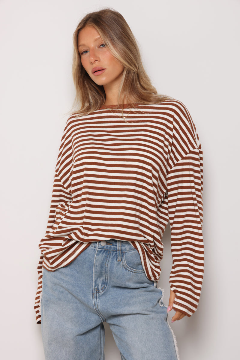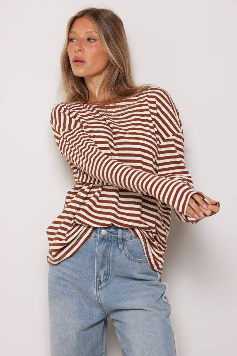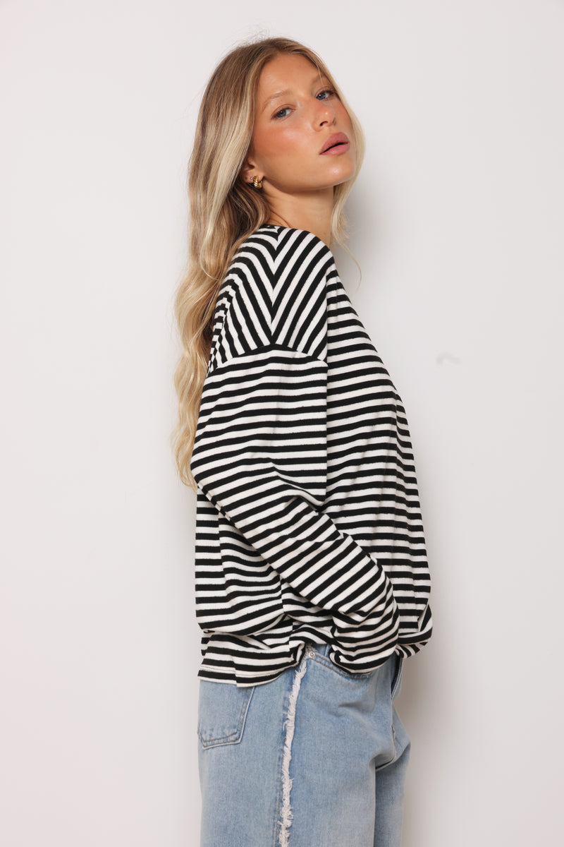 טוניקה מבד ריב בפרינט פסים עם צווארון עגול בסיומת כפפה.