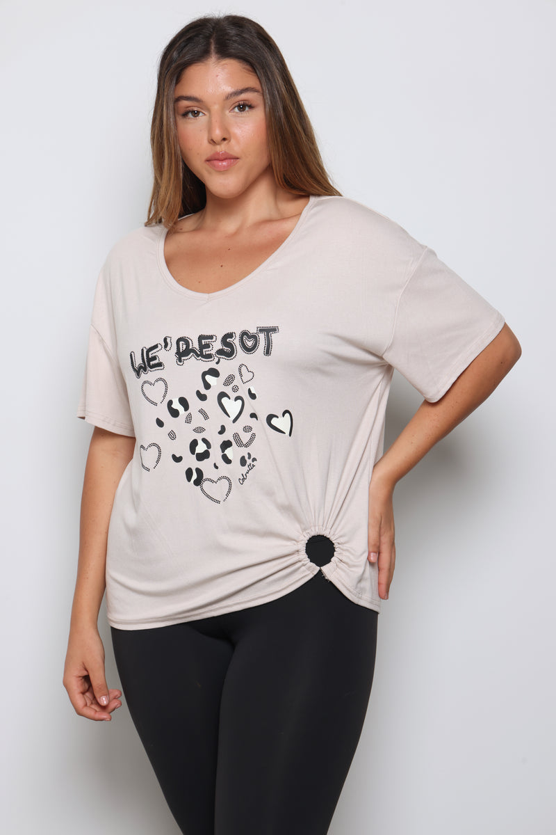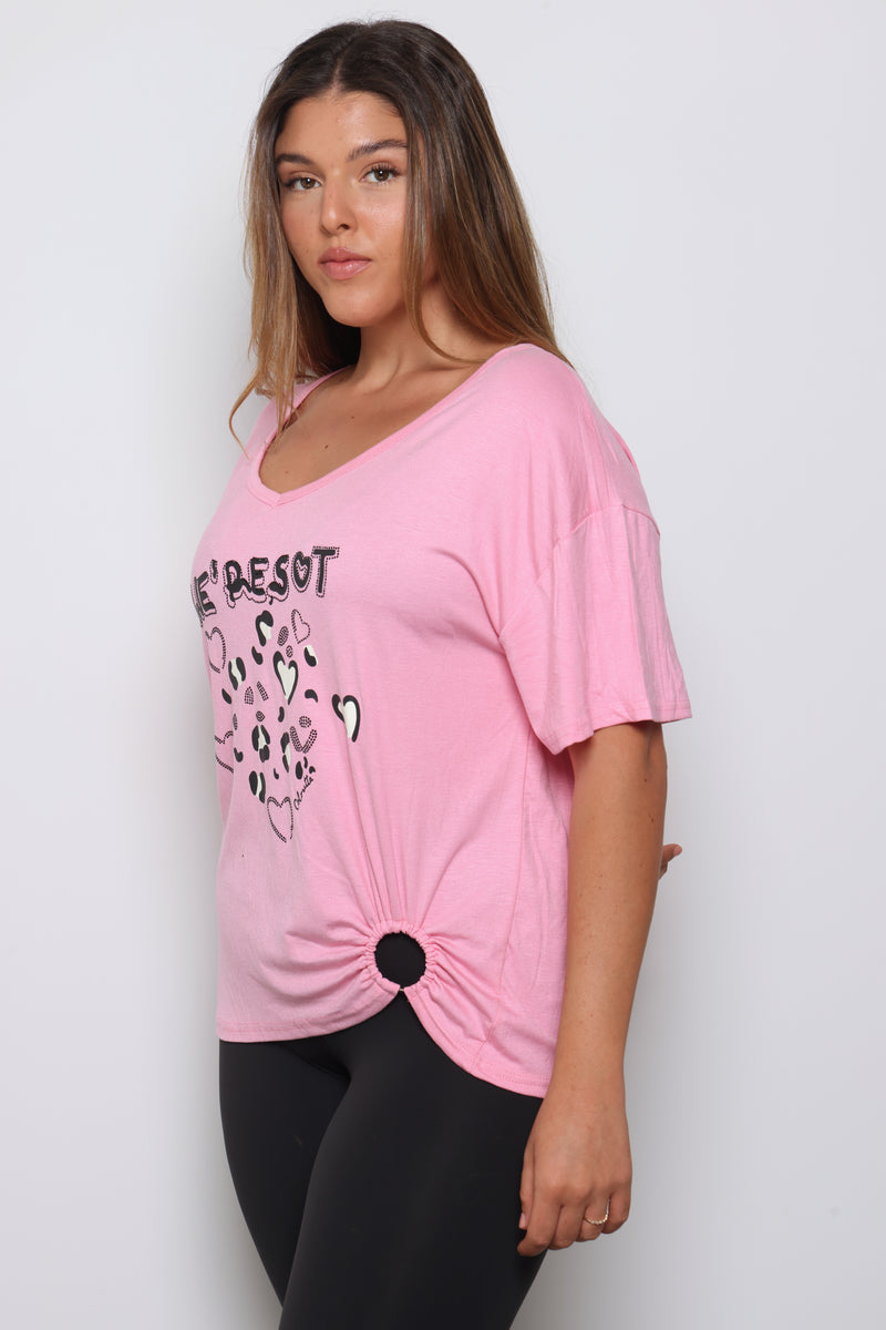 טוניקה מבד ויסקוזה עם הדפס קדמי ולולאה בסיומת.