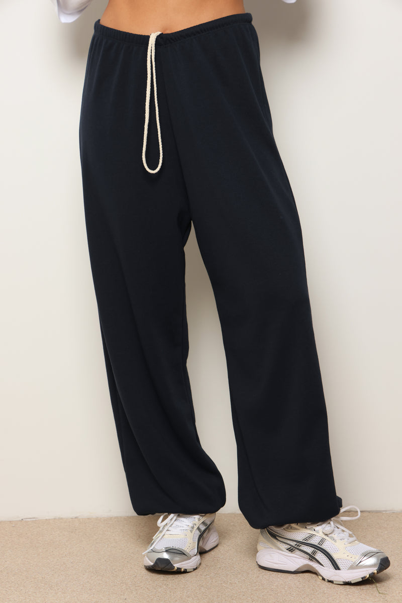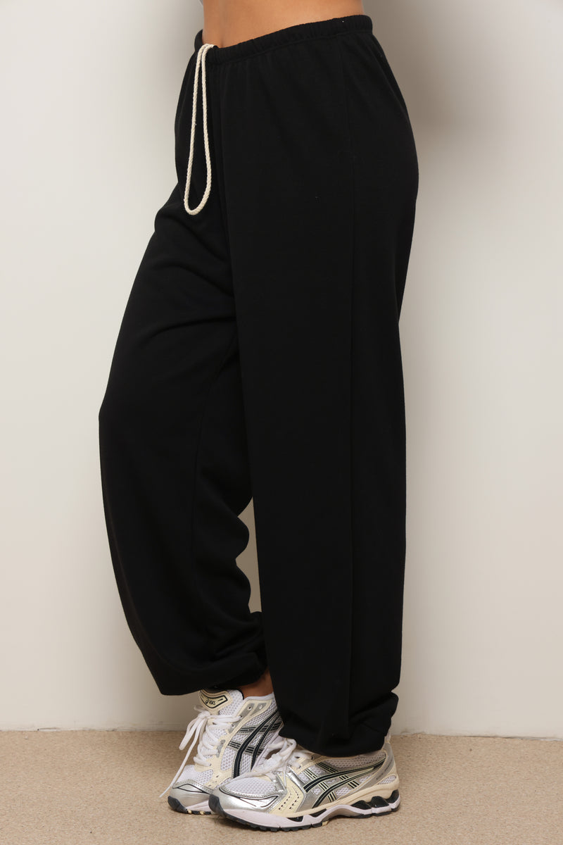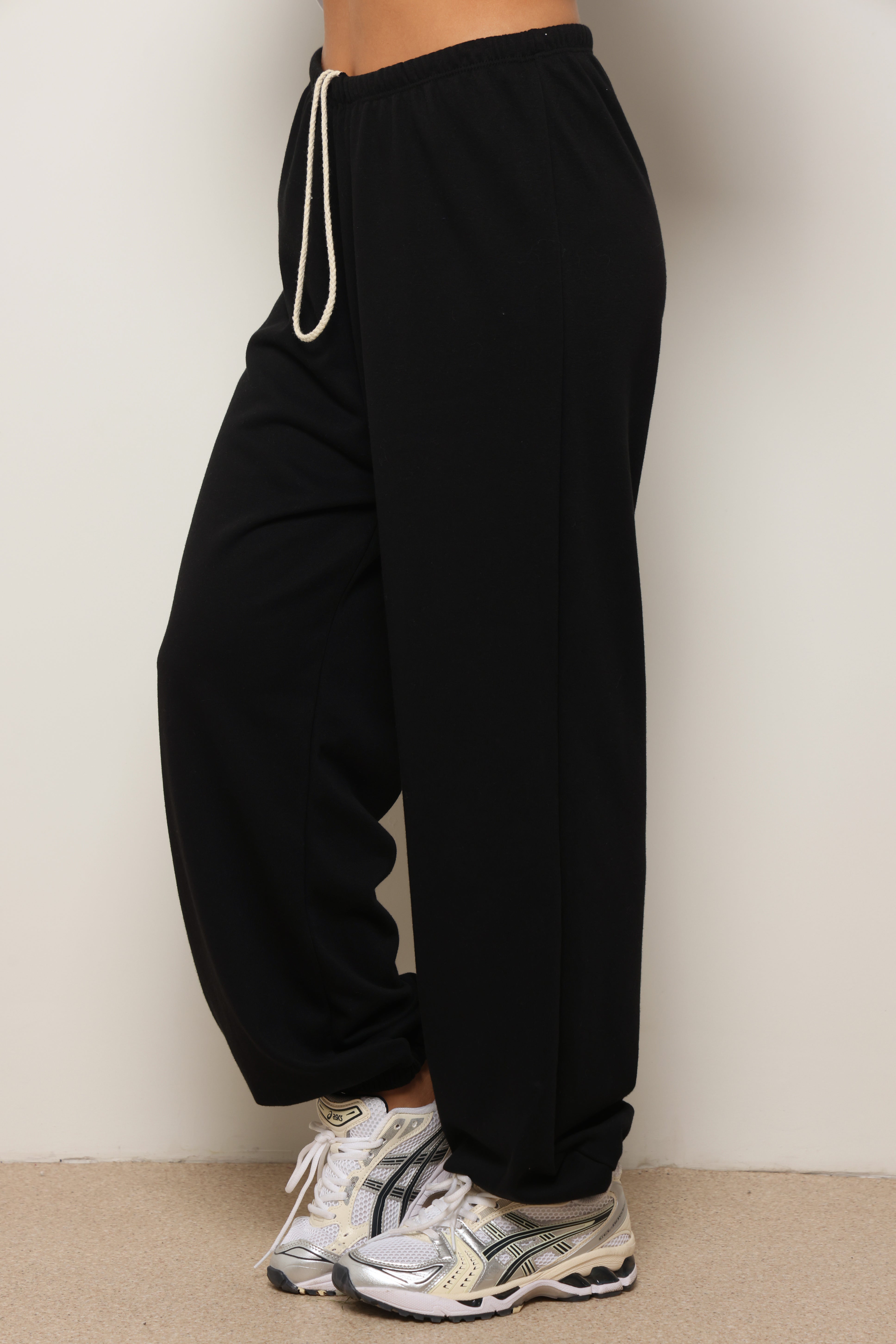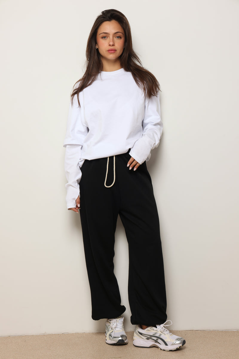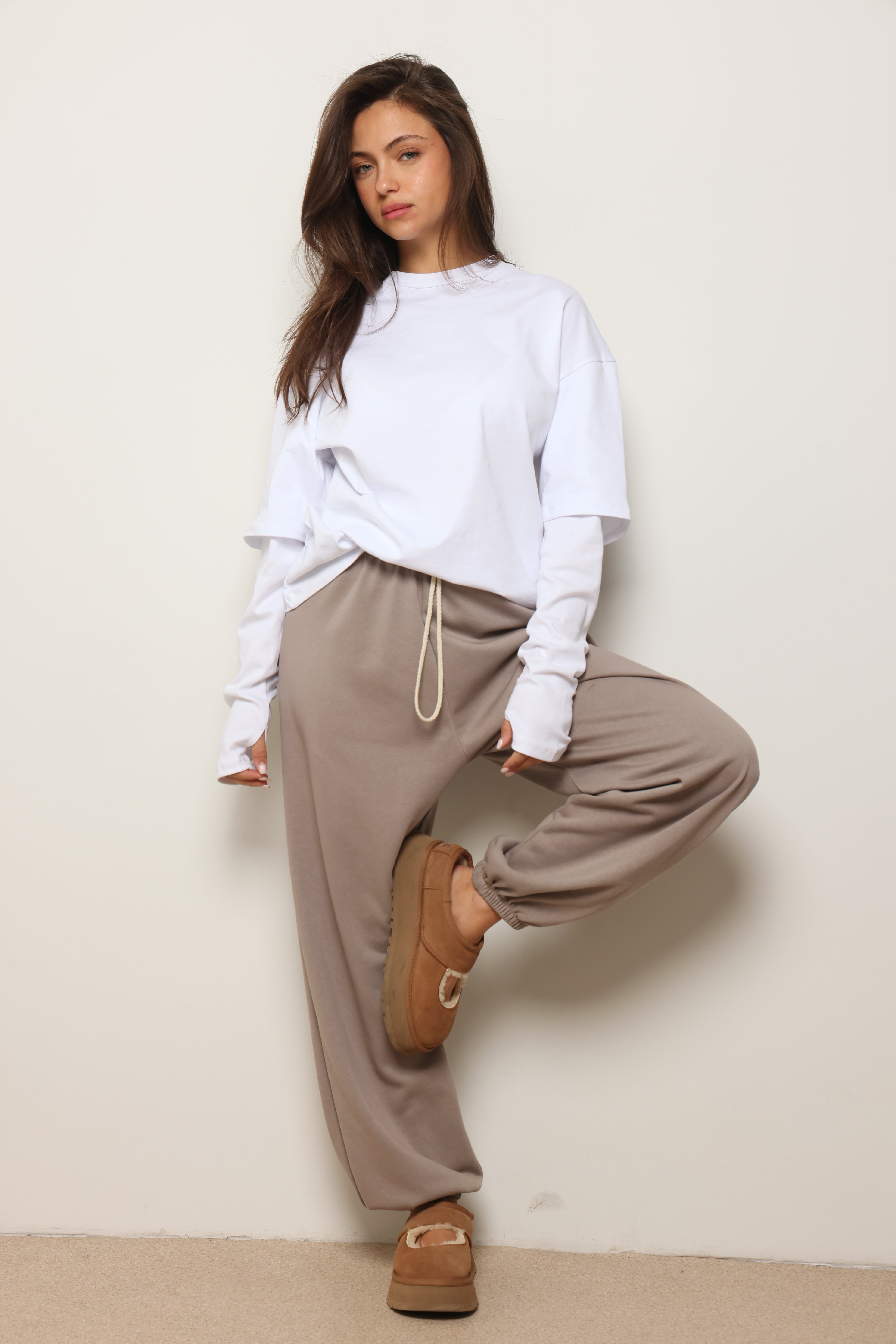 מכנסי קזואל מבד פרנצ'טרי כותנה עם שרוך וגומי בסיומת.