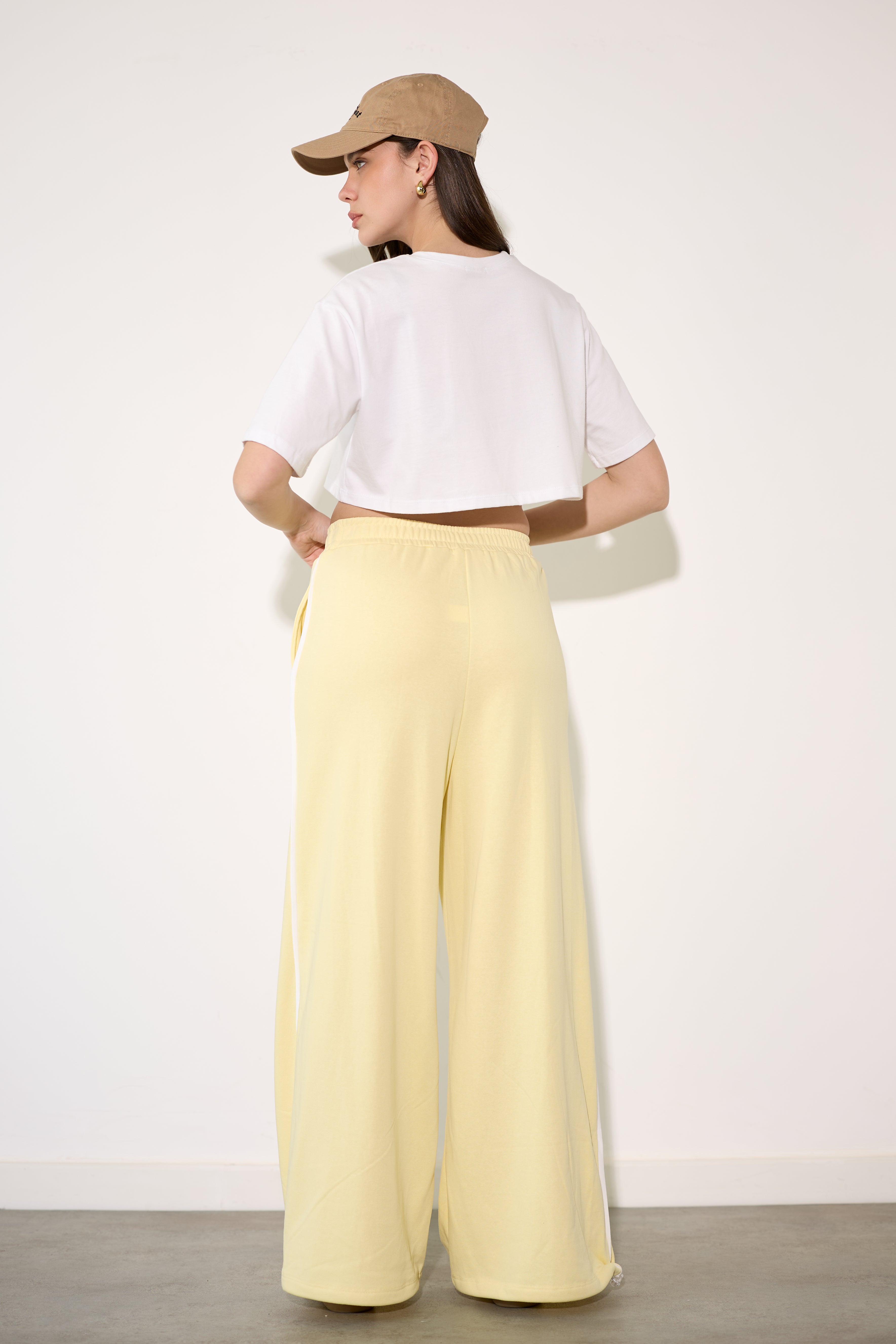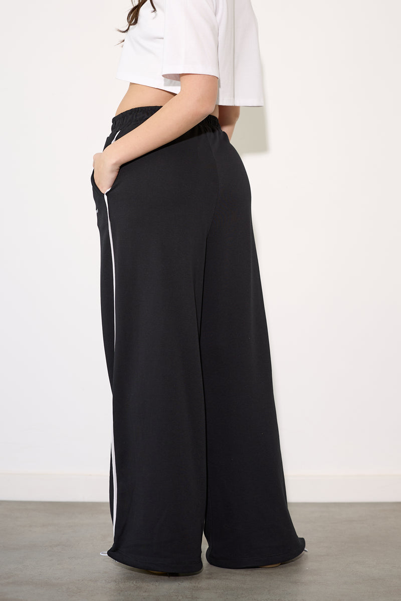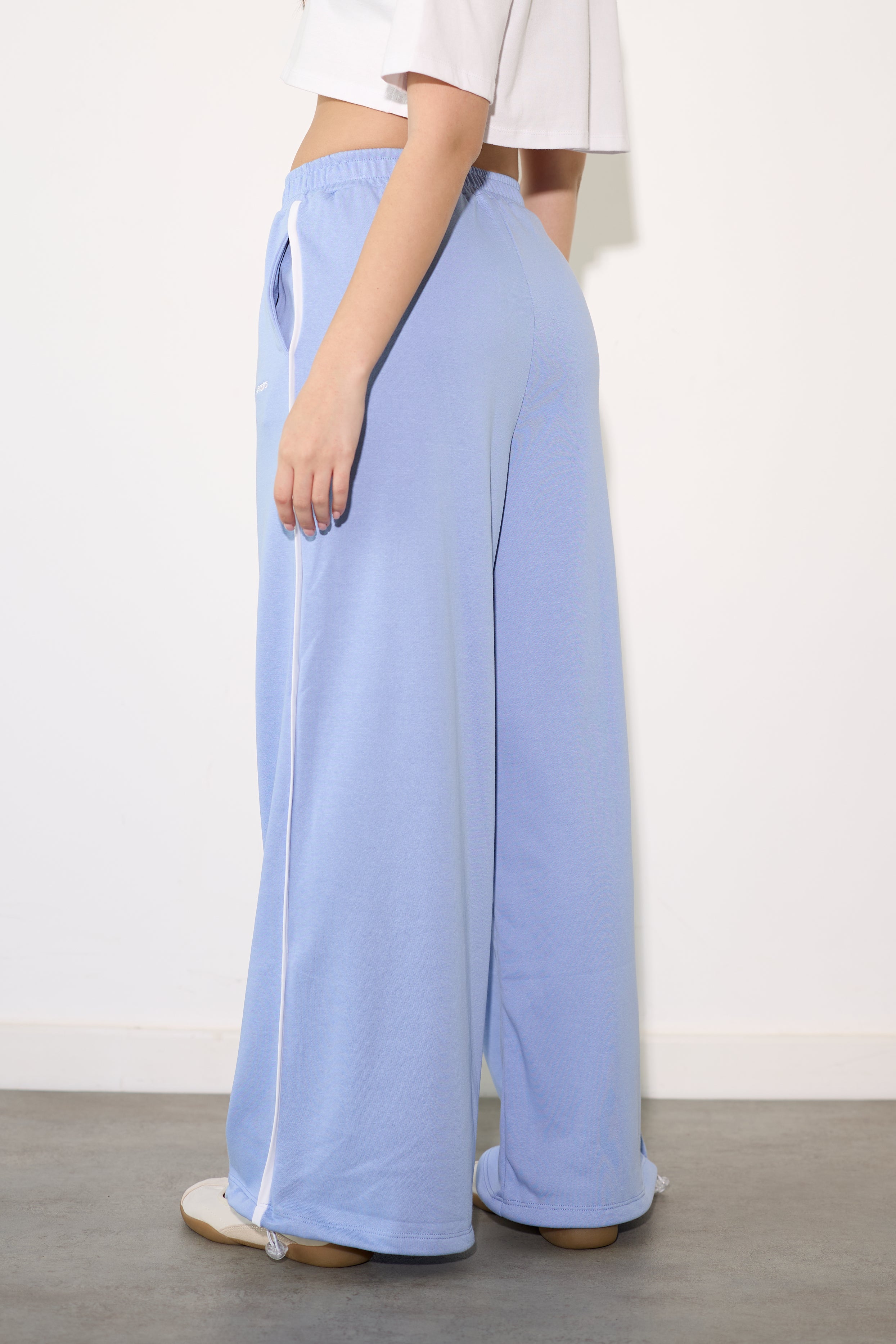 מכנסיים מבד פרנצ'טרי מכנסיים מבד פרנצ'טרי בסיומת מתרחבת שנסגרת עם אבזם.
