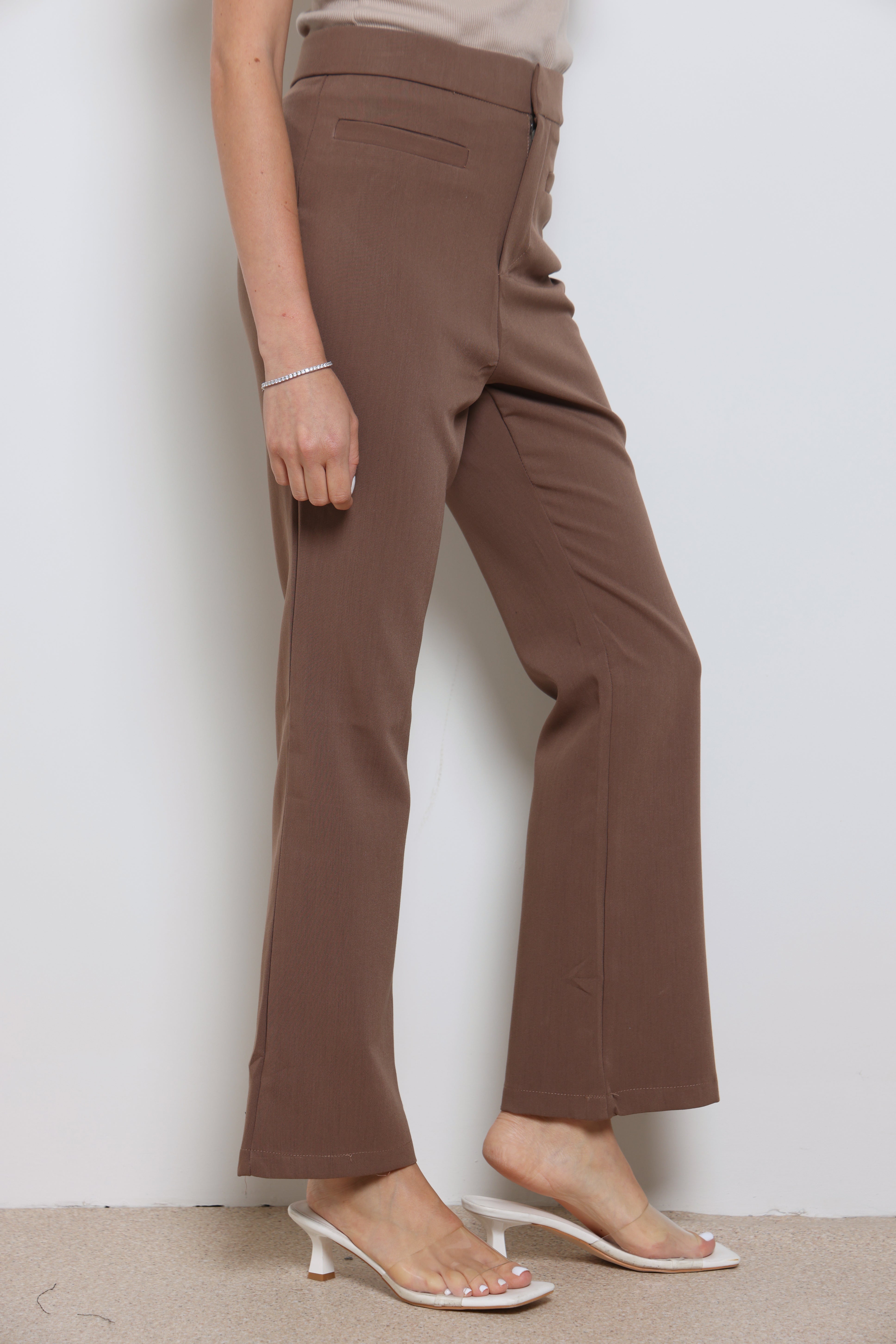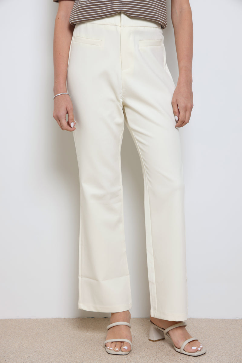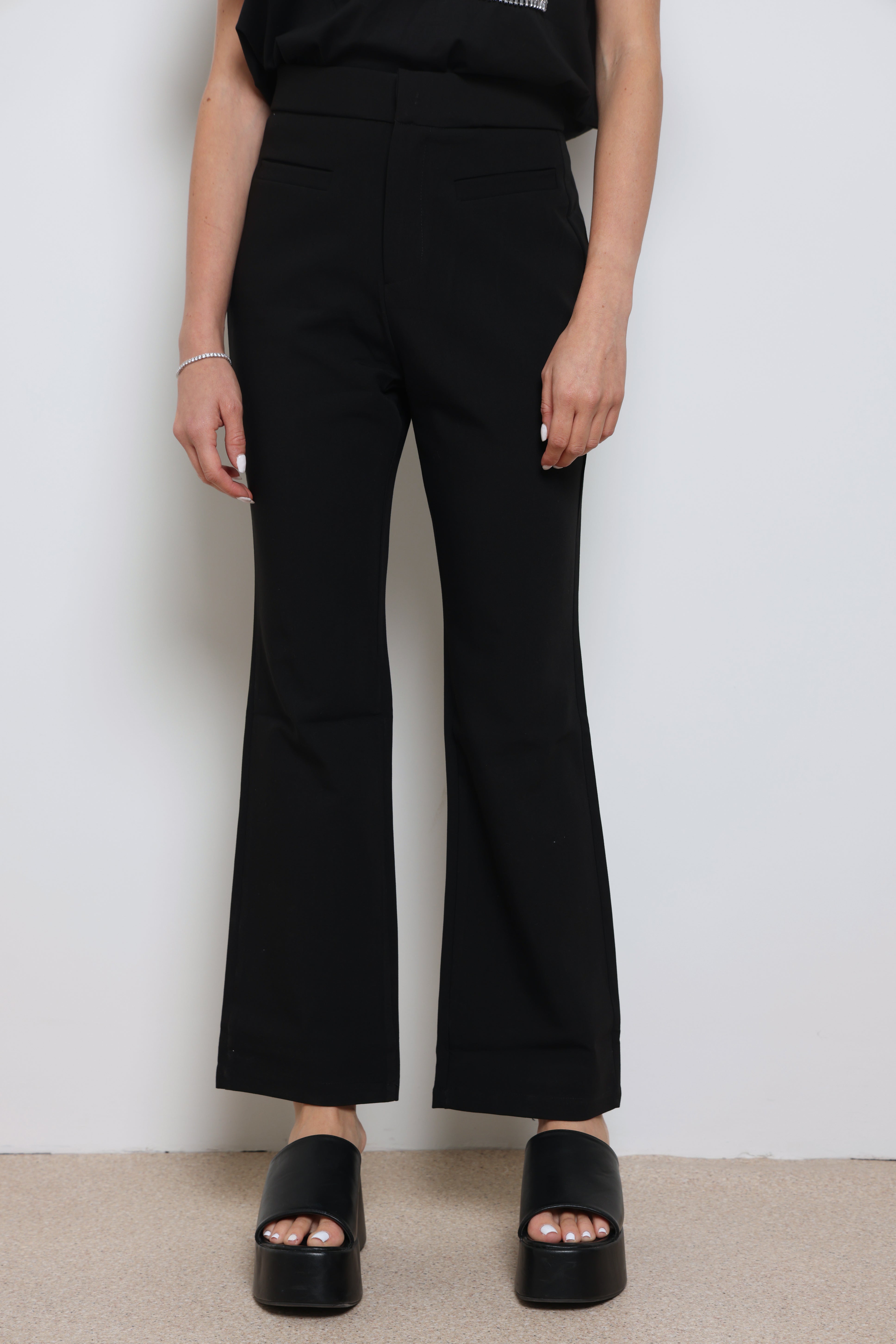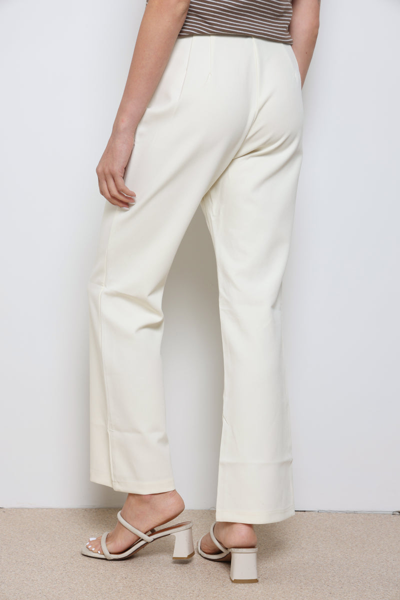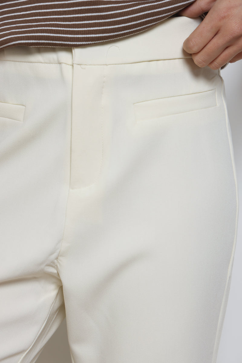 מכנסיים מבד דריל כותנה מחטב בגזרה מתרחבת עם רוכסן לרכיסה ודמוי כיסים.