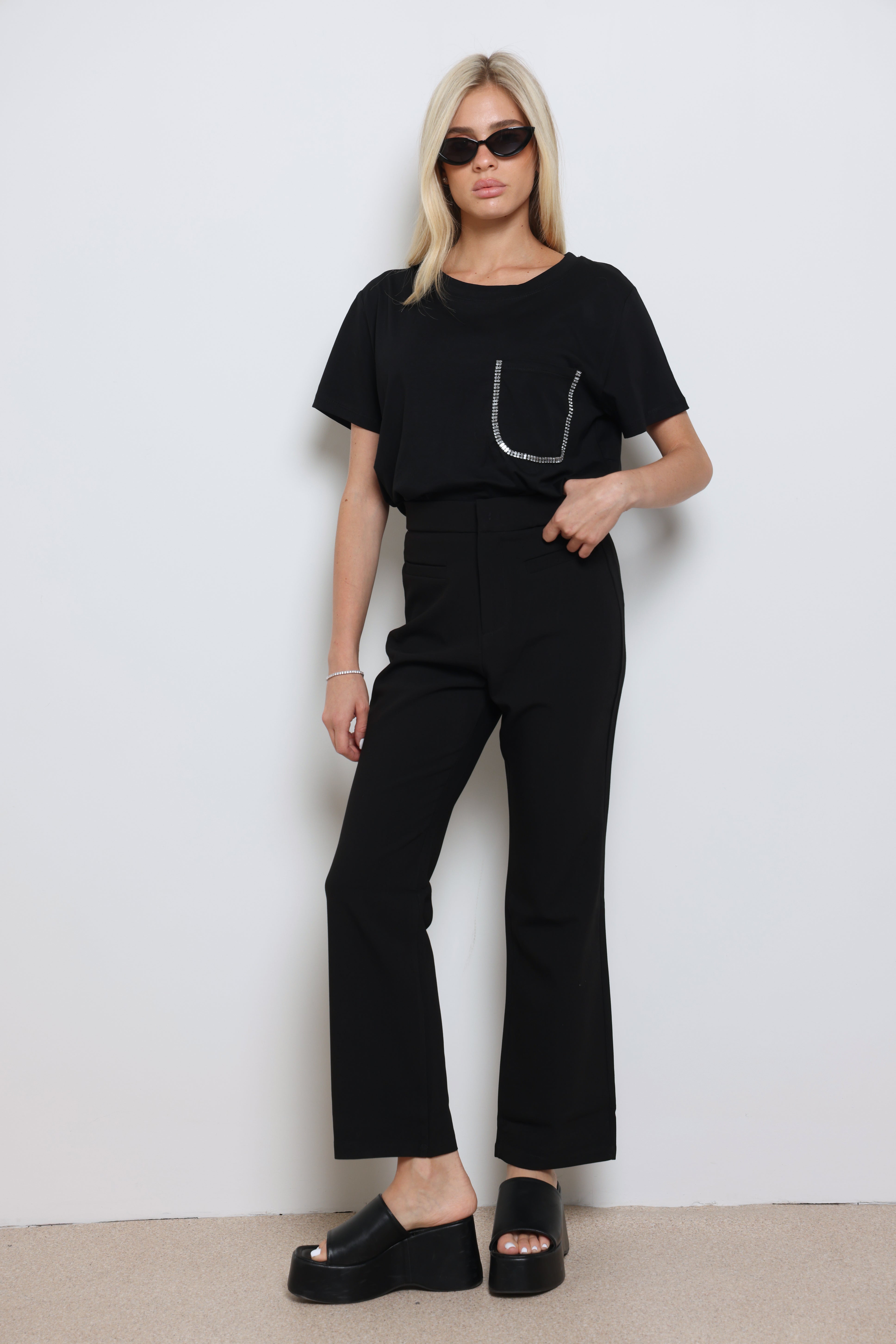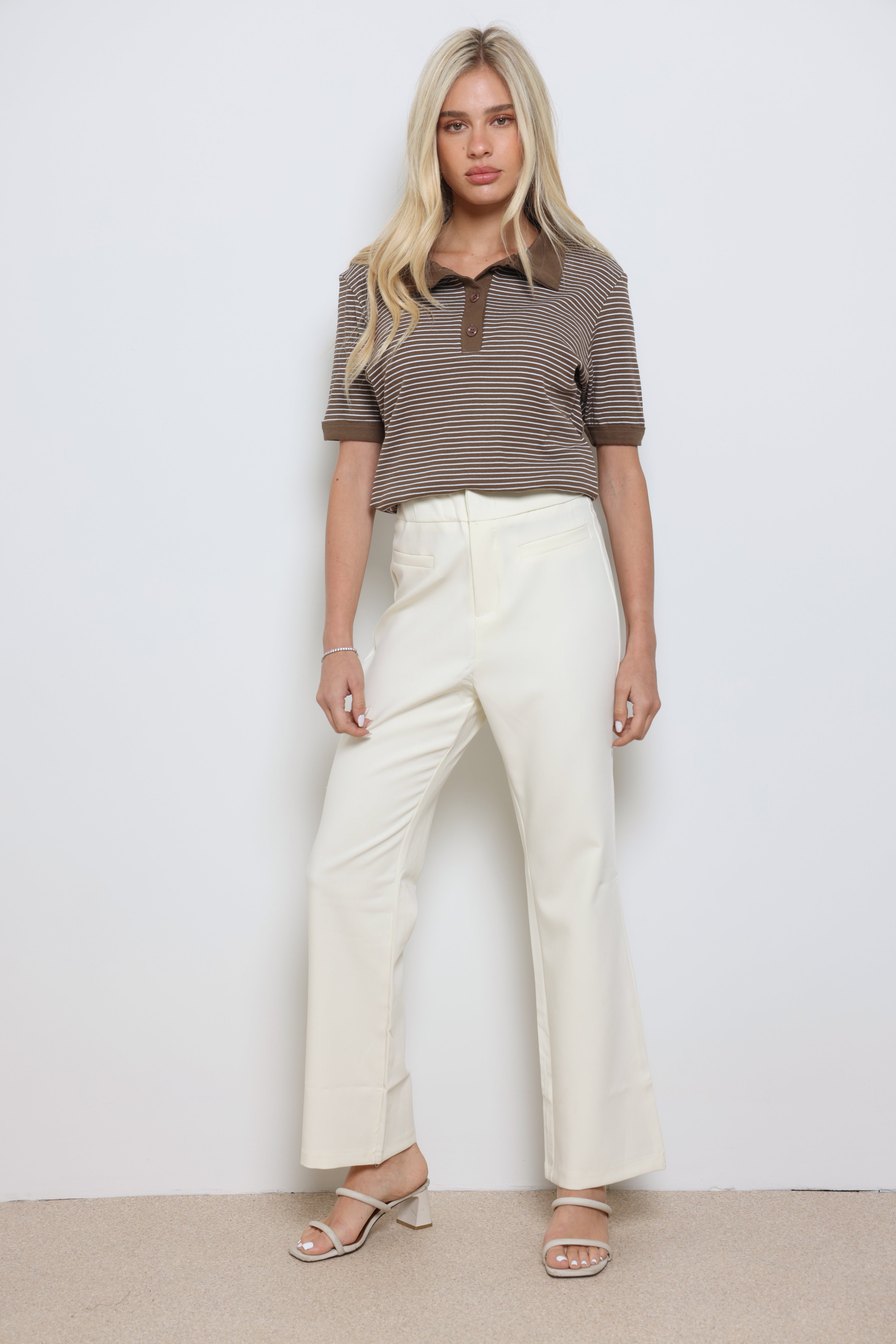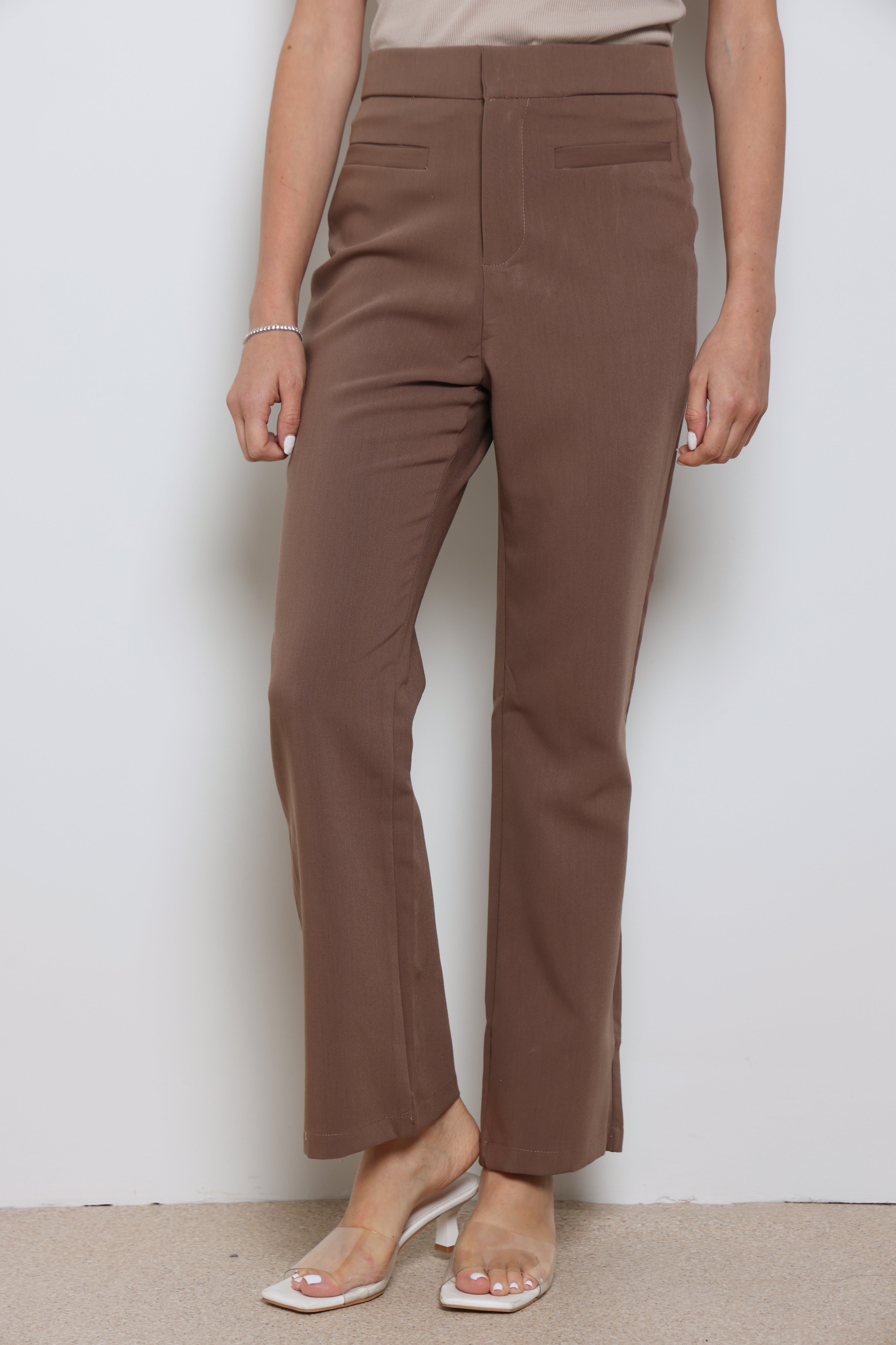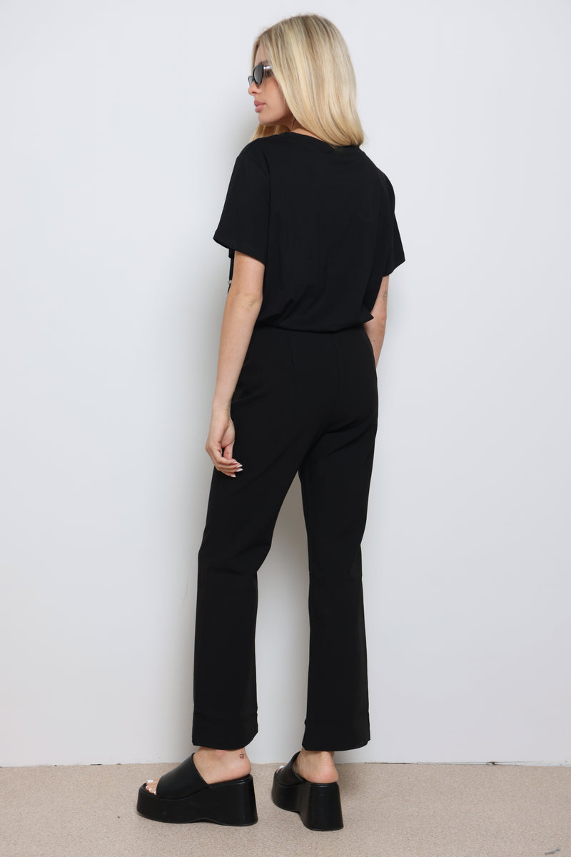 מכנסיים מבד דריל כותנה מחטב בגזרה מתרחבת עם רוכסן לרכיסה ודמוי כיסים.